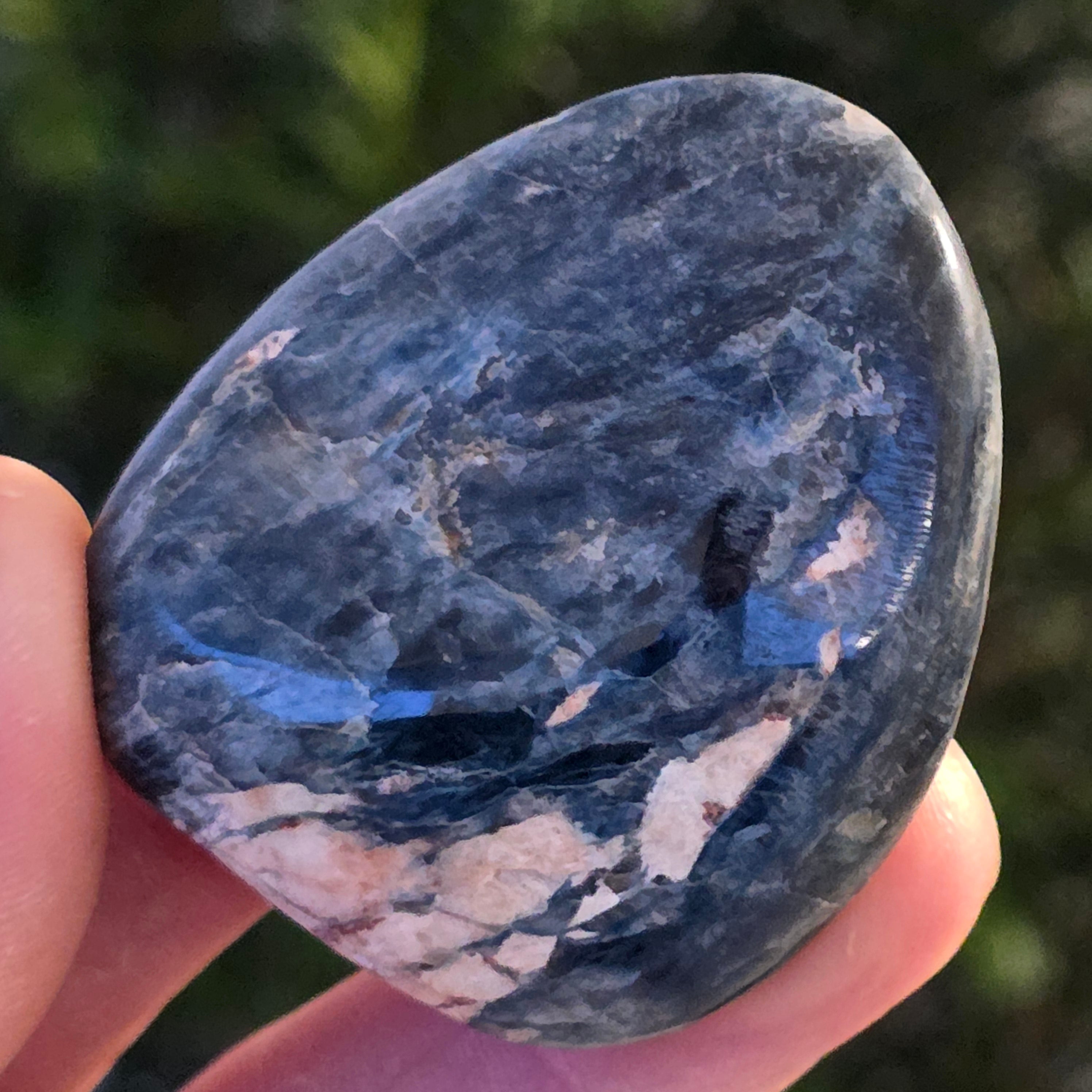 Description - Dark Blue Apatite Palmstone Madagascar | Model 7