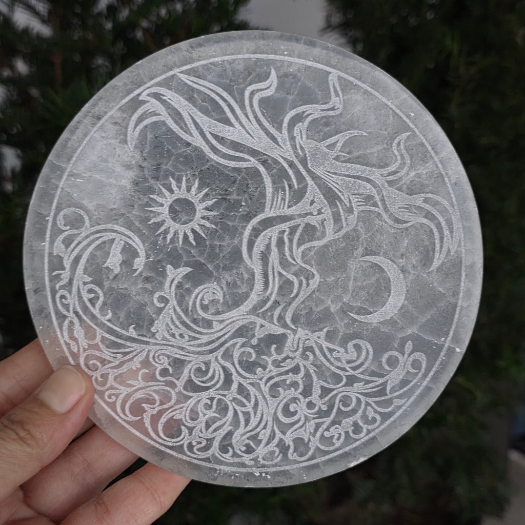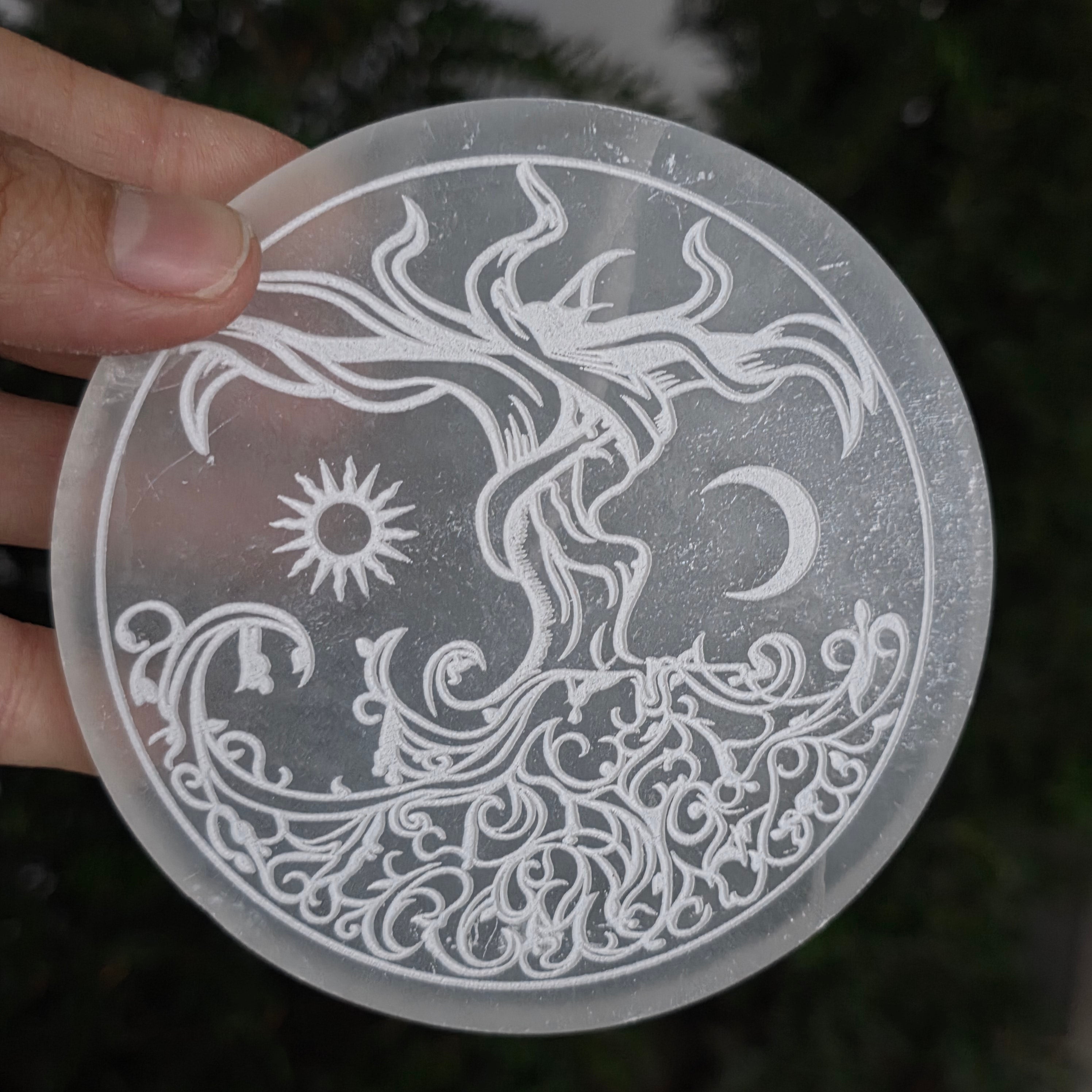 Selenite is often used as a support crystal in spiritual practices, helping to open and activate chakras 6 and 7, which are associated with intuition, clairvoyance and connection at the spiritual level.