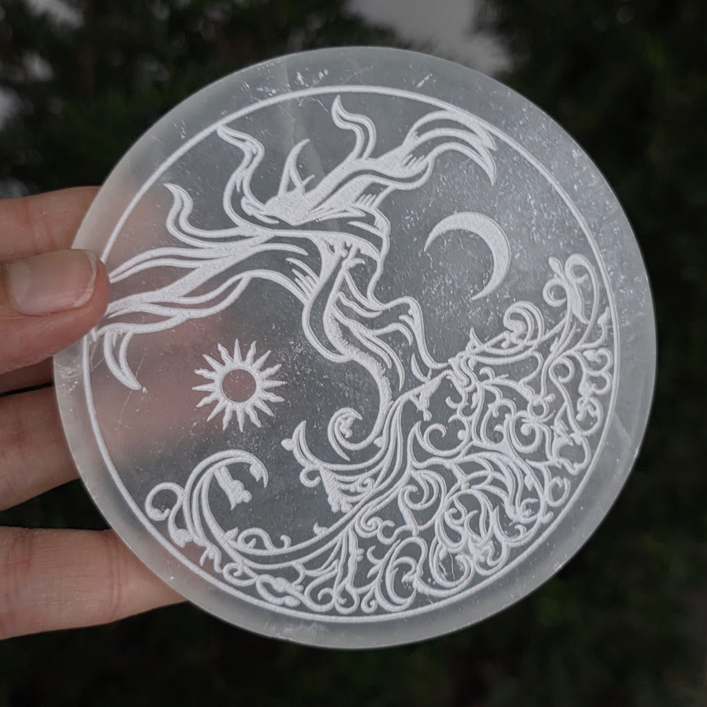 The selenite is named after the Greek goddess Selene, who was considered the goddess of the Moon, due to her translucent and luminescent appearance, similar to the moonlight.