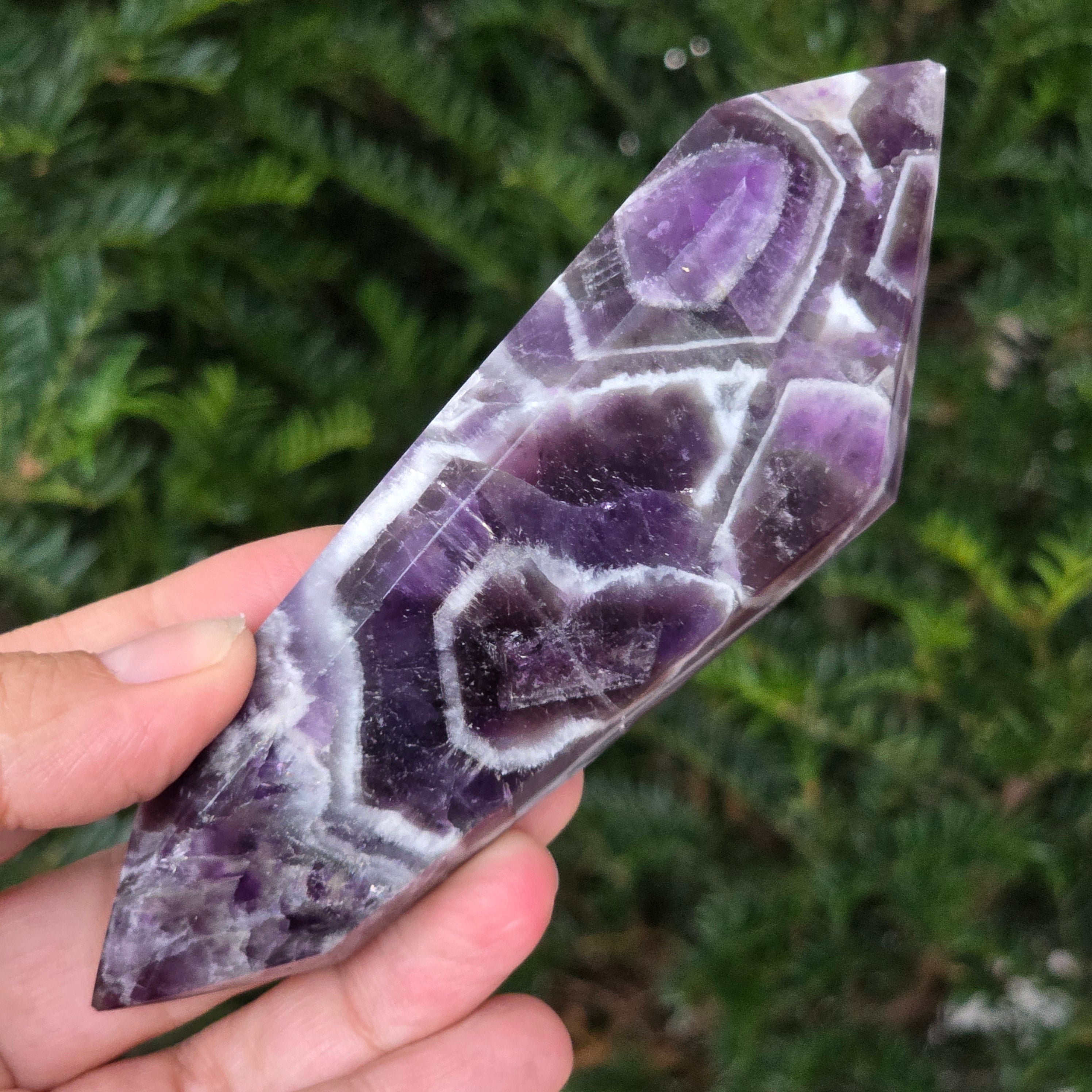 Alege un cristal dublu vârf de ametist chevron și lasă-l să devină un aliat al echilibrului, al purificării și al conectării cu înțelepciunea interioară.