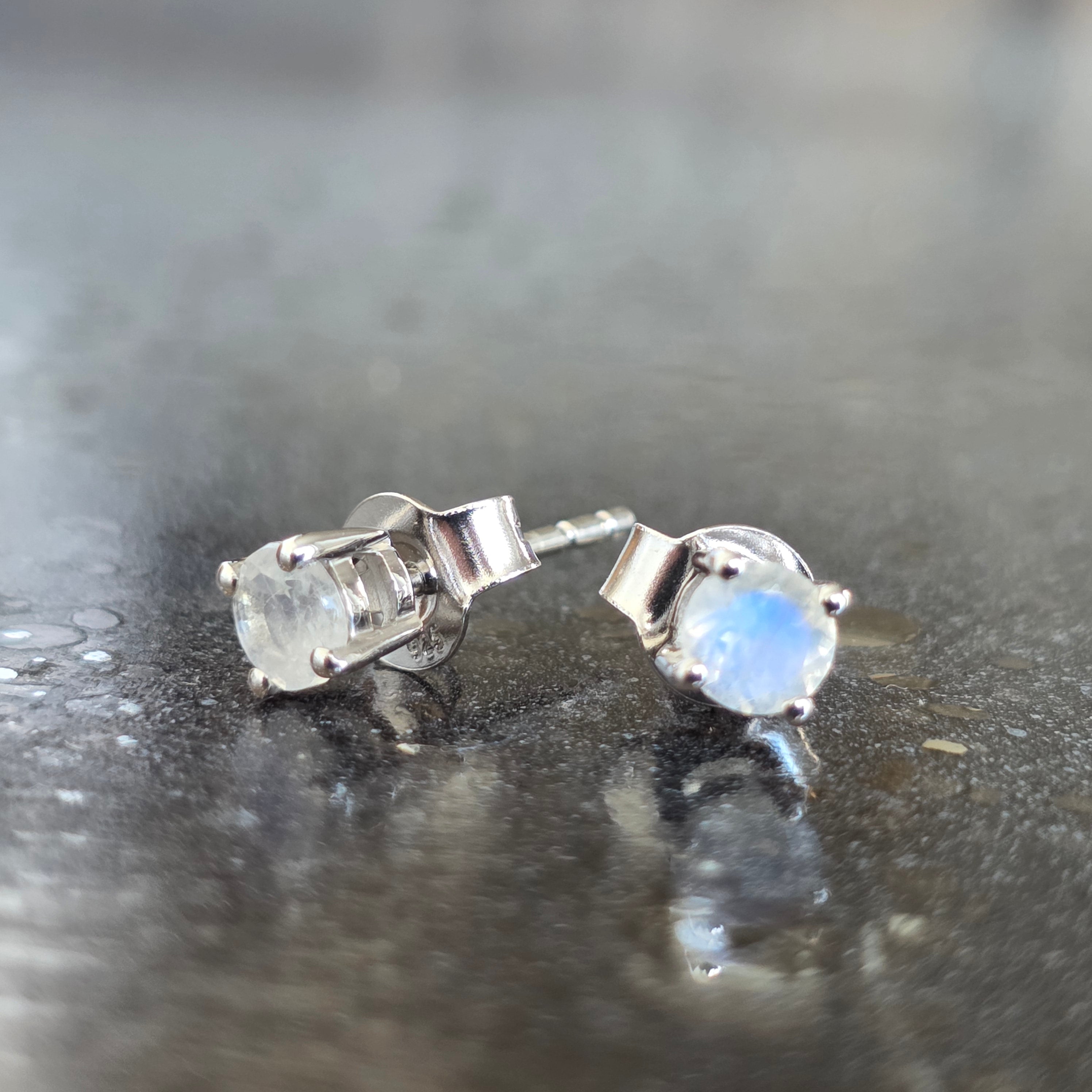 Description - Moonstone Silver Stud Earrings | Lunar Glow