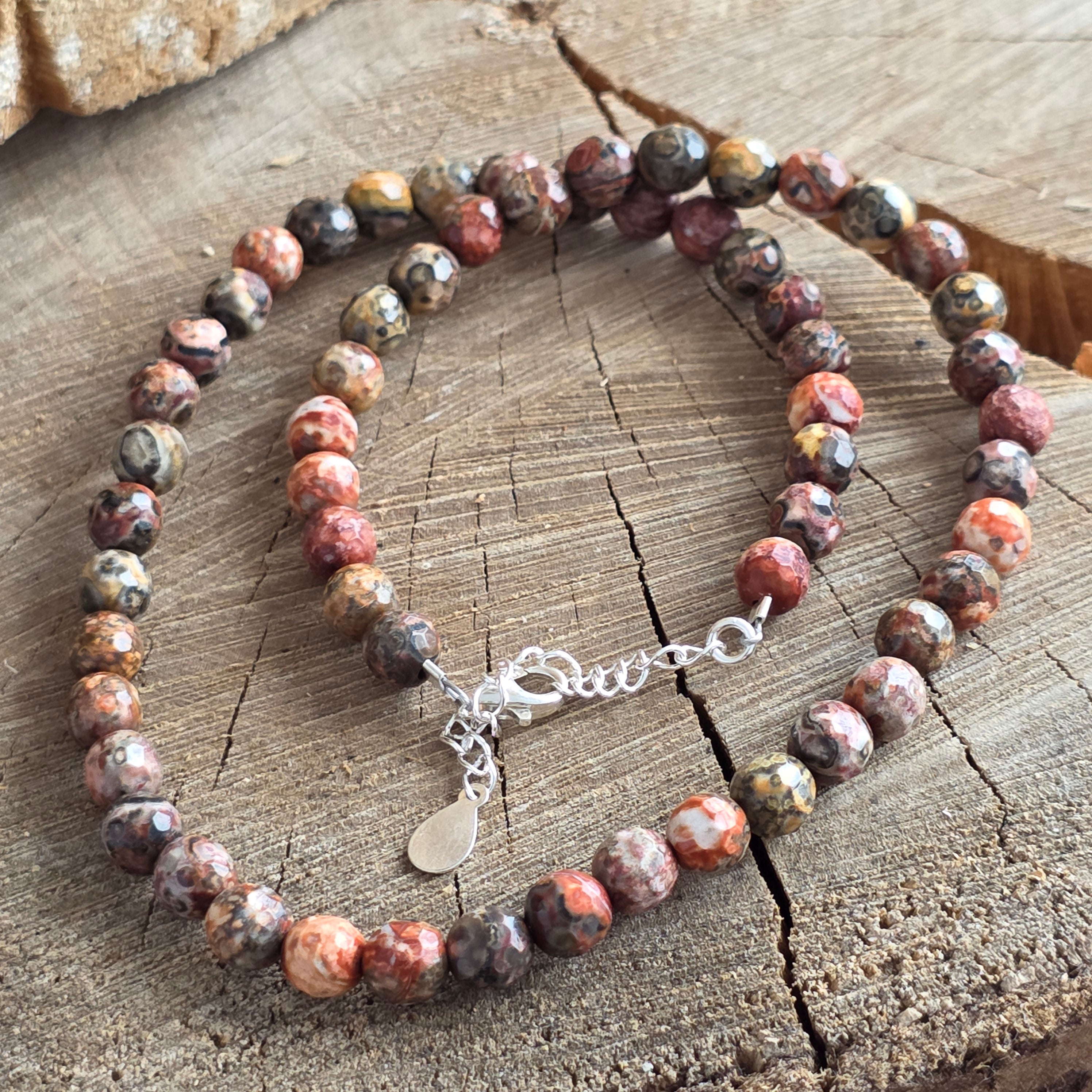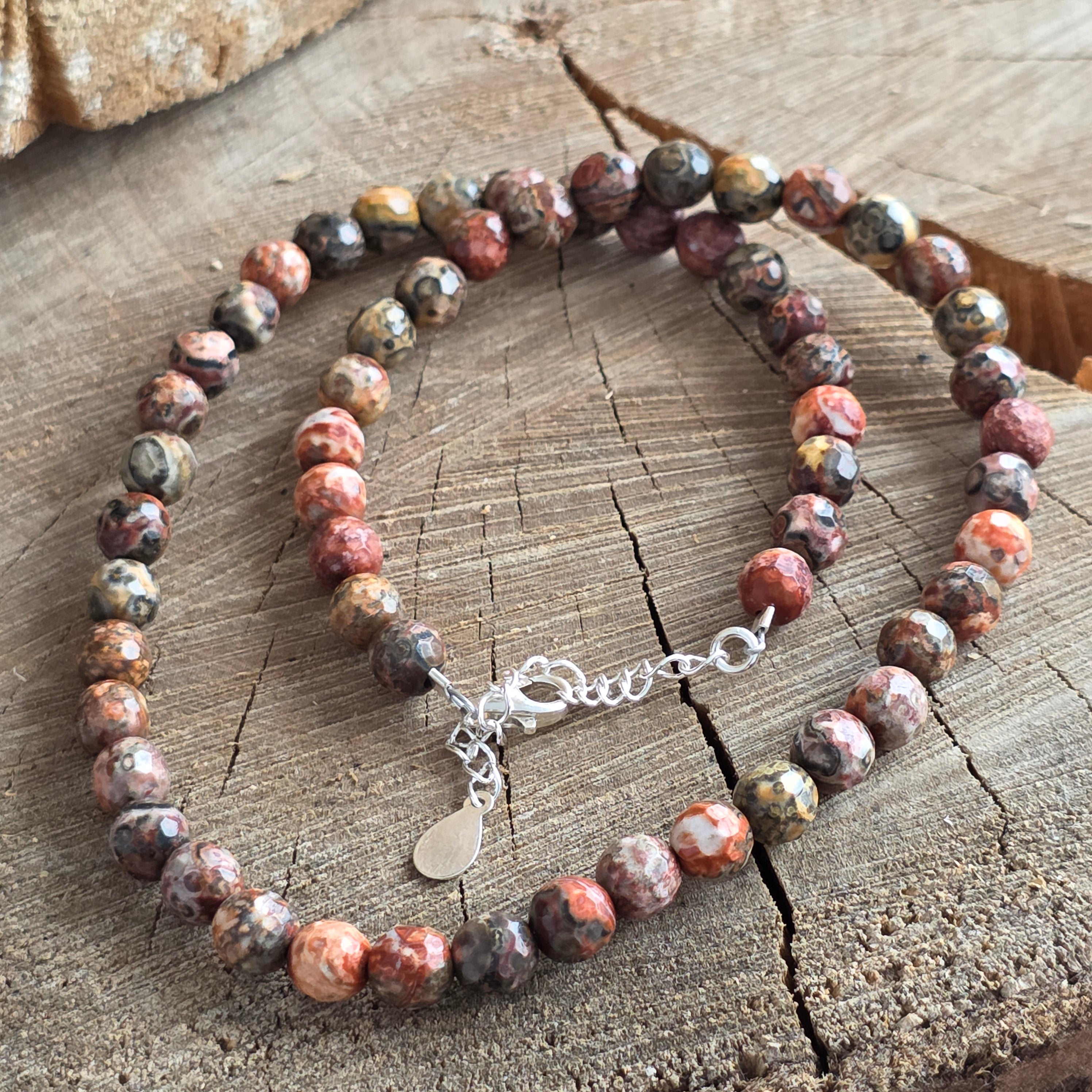 A necklace that exudes the gentle strength of the earth and the discreet nobility of wild nature. 6mm faceted natural leopard jasper it captivates with the combination of earthy colors and organic shapes that seem painted by time. Its fine facets subtly reflect the light, giving the gem a warm and authentic elegance, perfect for those who love natural beauty.