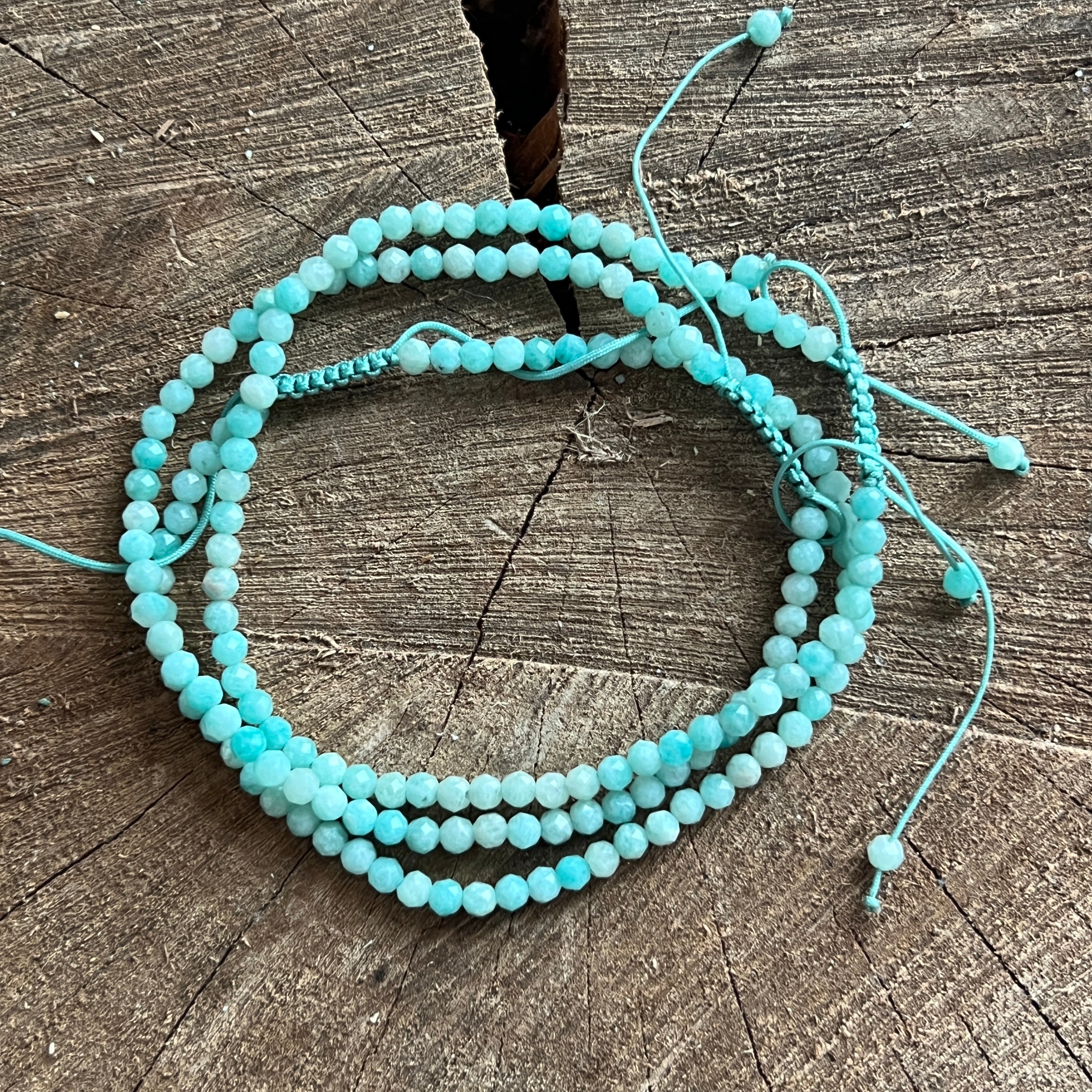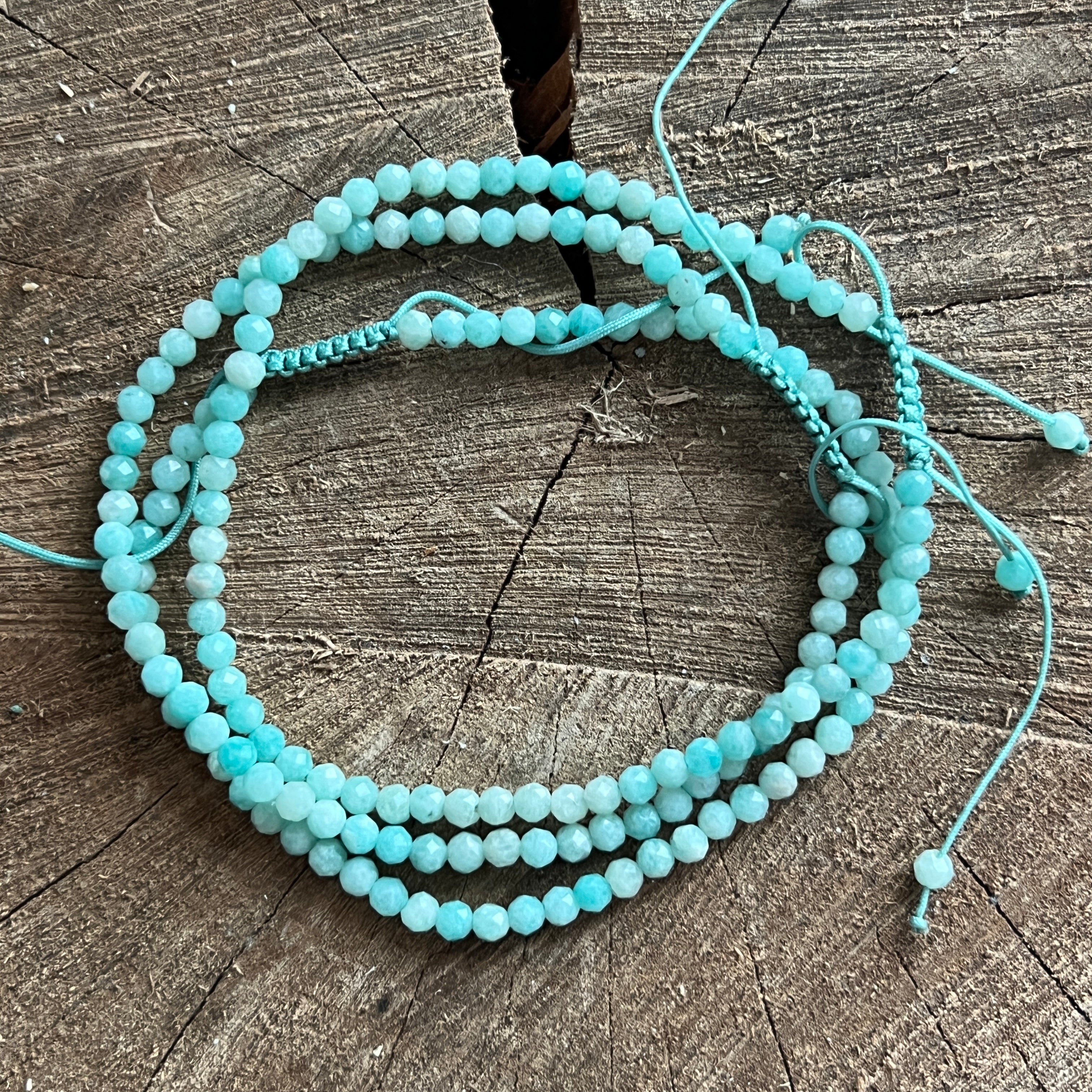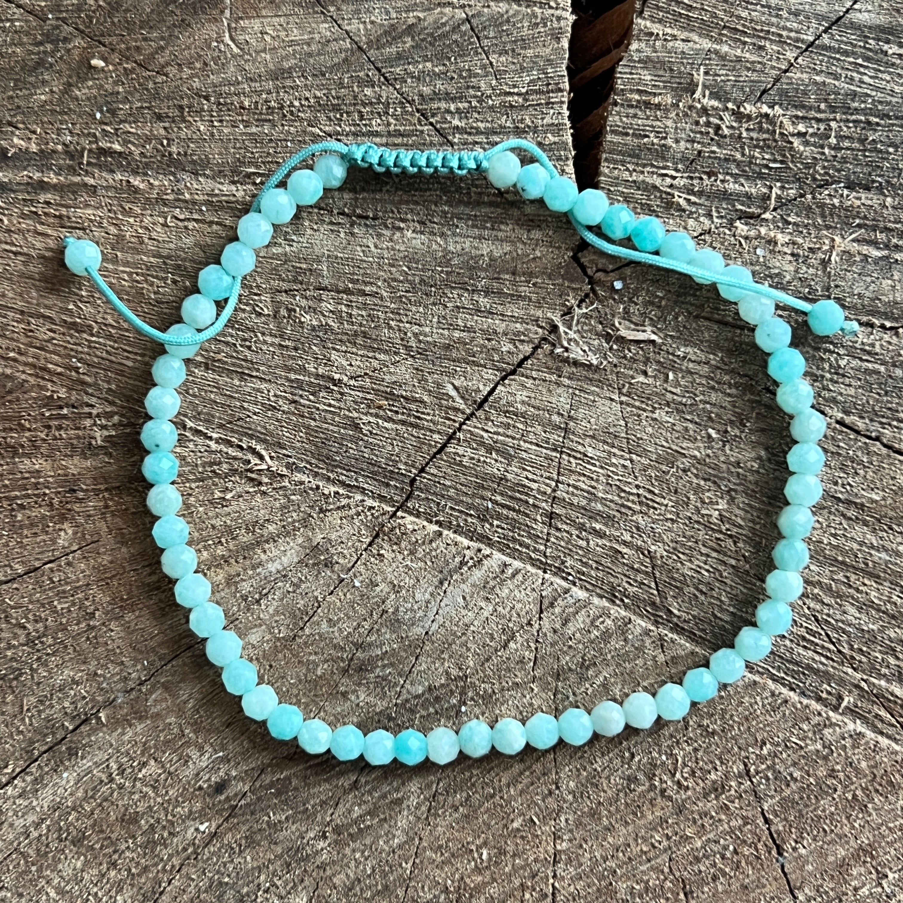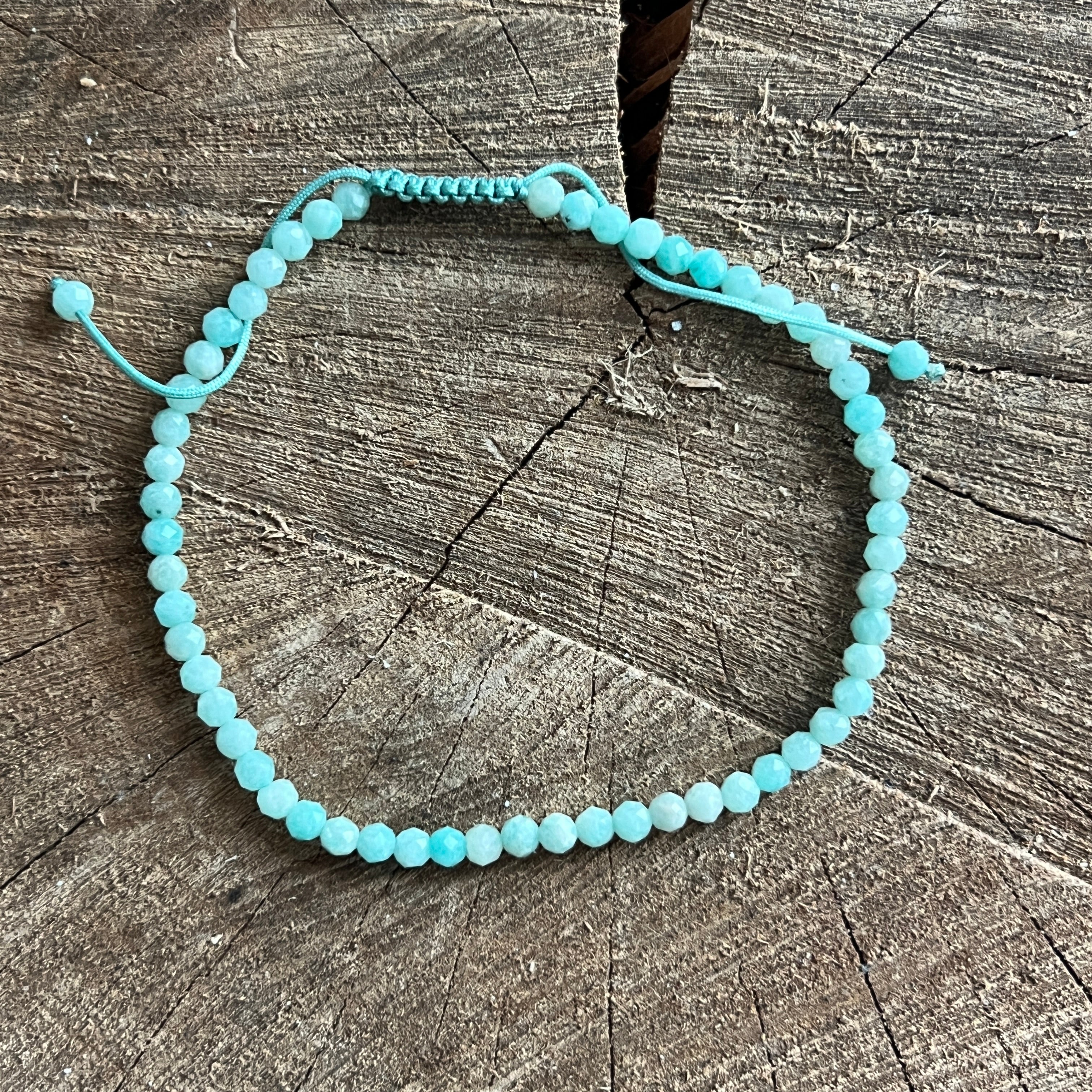 Faceted Amazonite Bracelet 3 mm Adjustable Cord