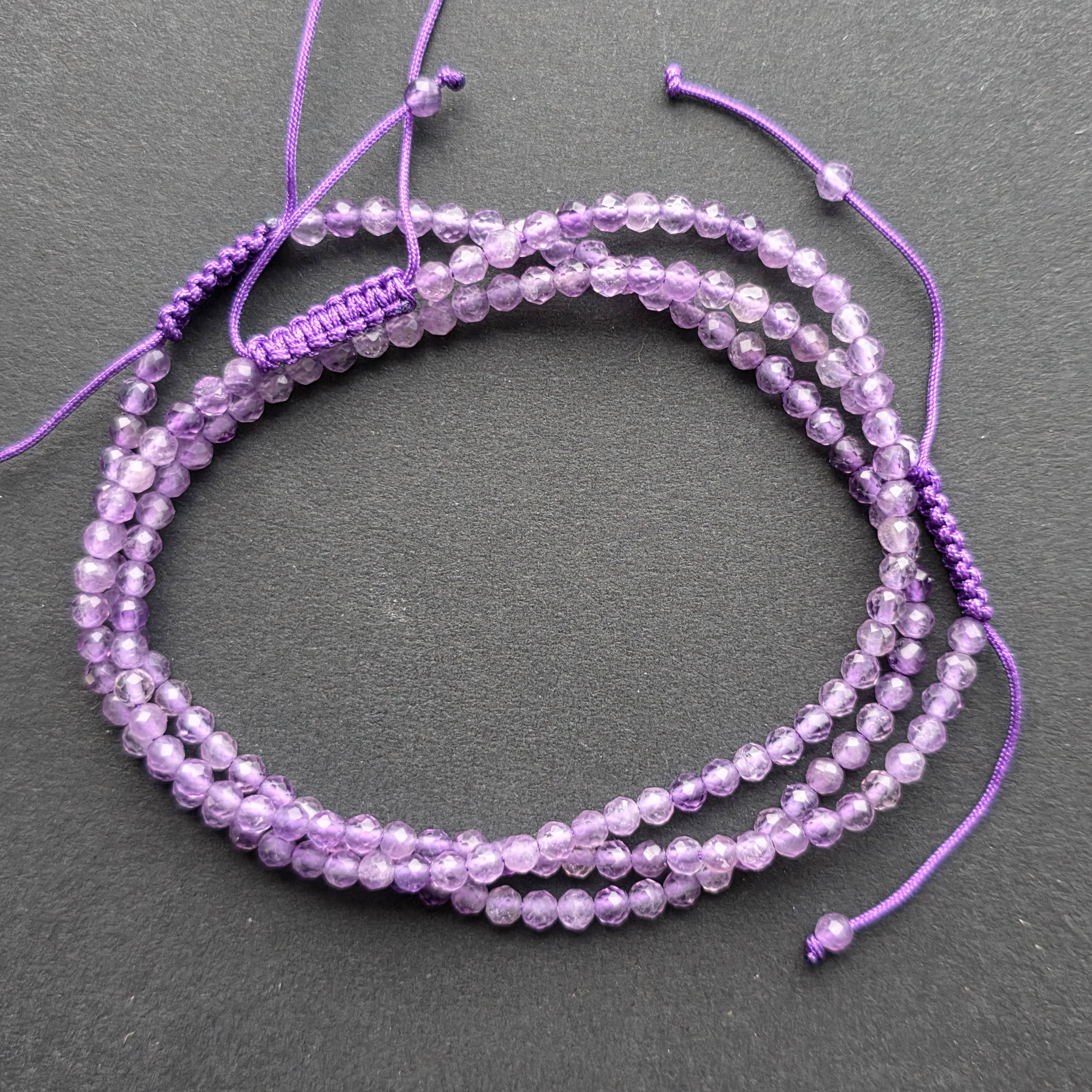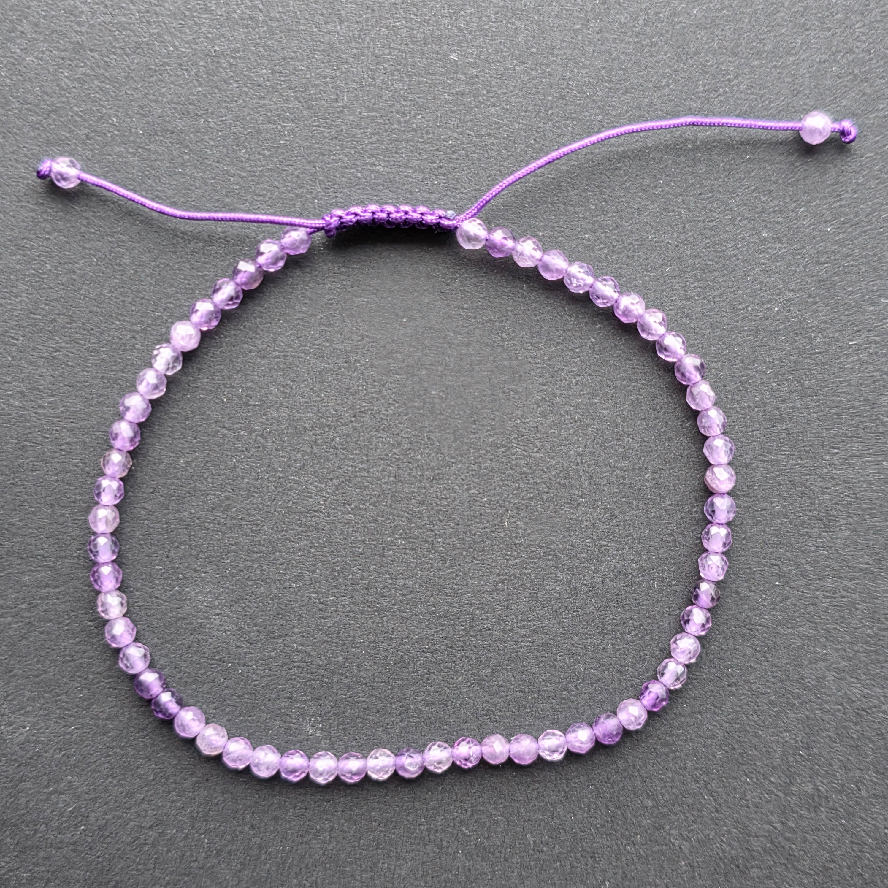 Faceted Amethyst Bracelet 3 mm Adjustable Cord