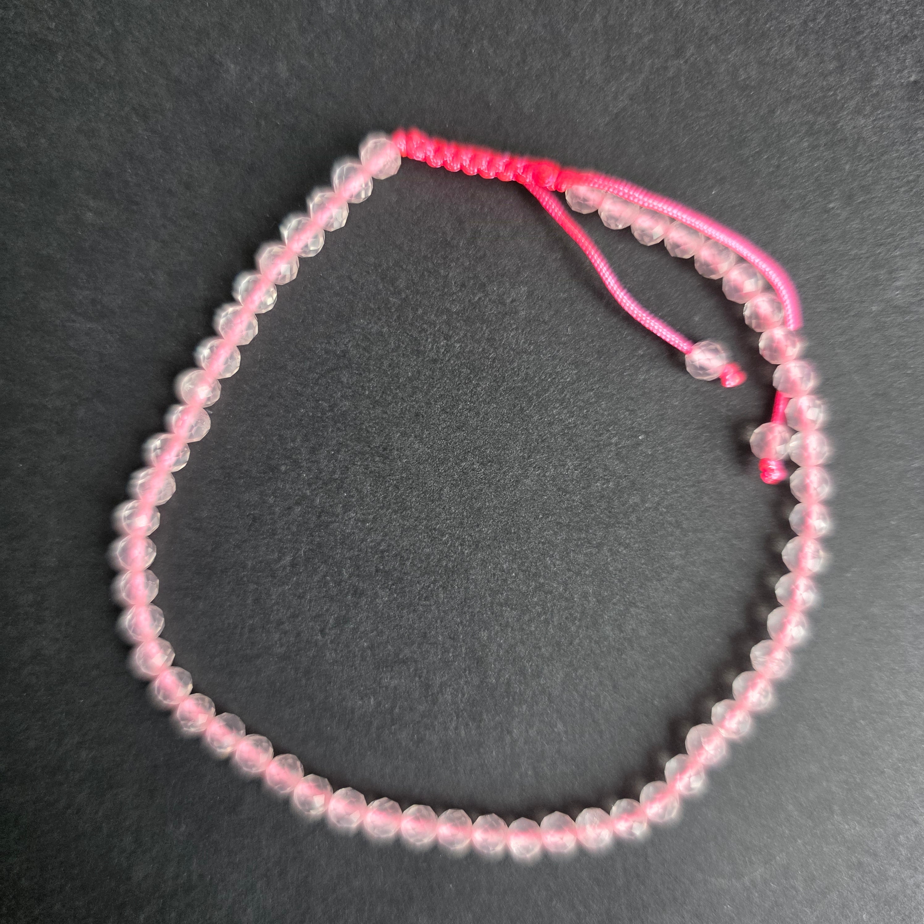 Description - Faceted Pink Quartz Bracelet 3-4 mm | Adjustable Model