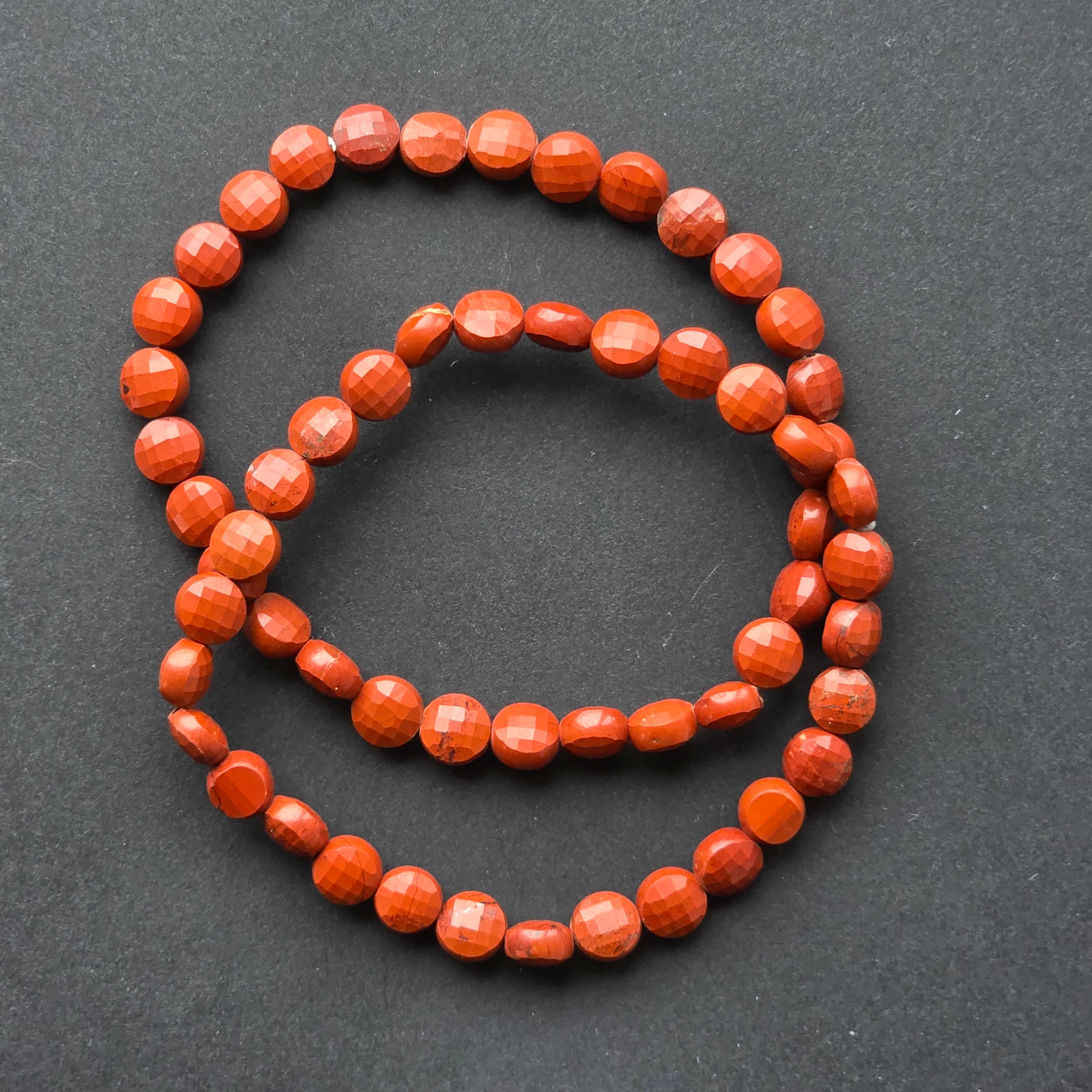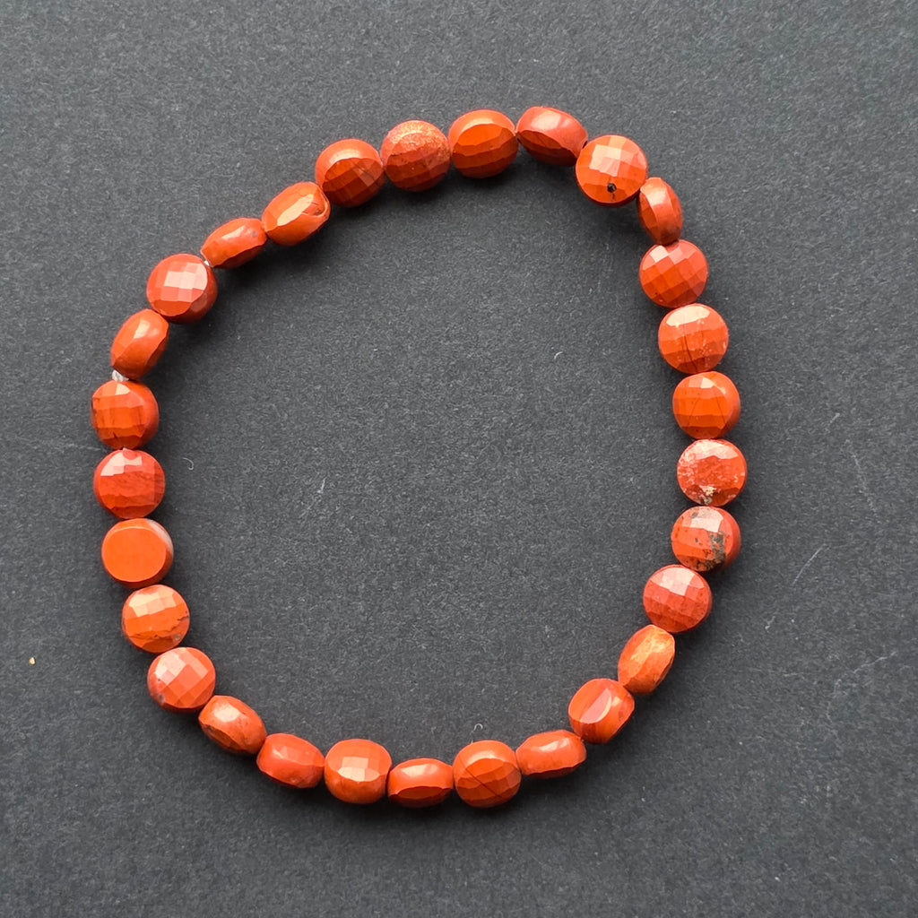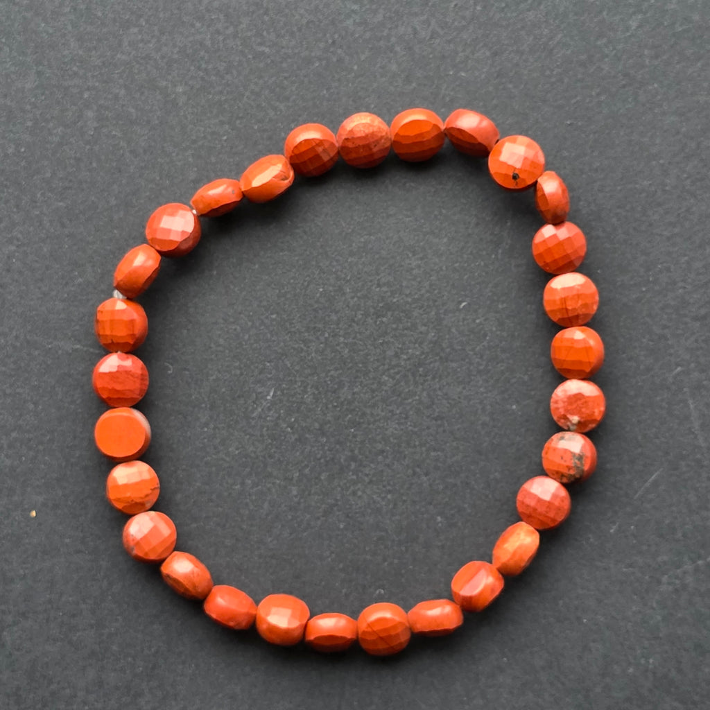 Faceted Red Jasper Bracelet, Round Discs 6x4 mm