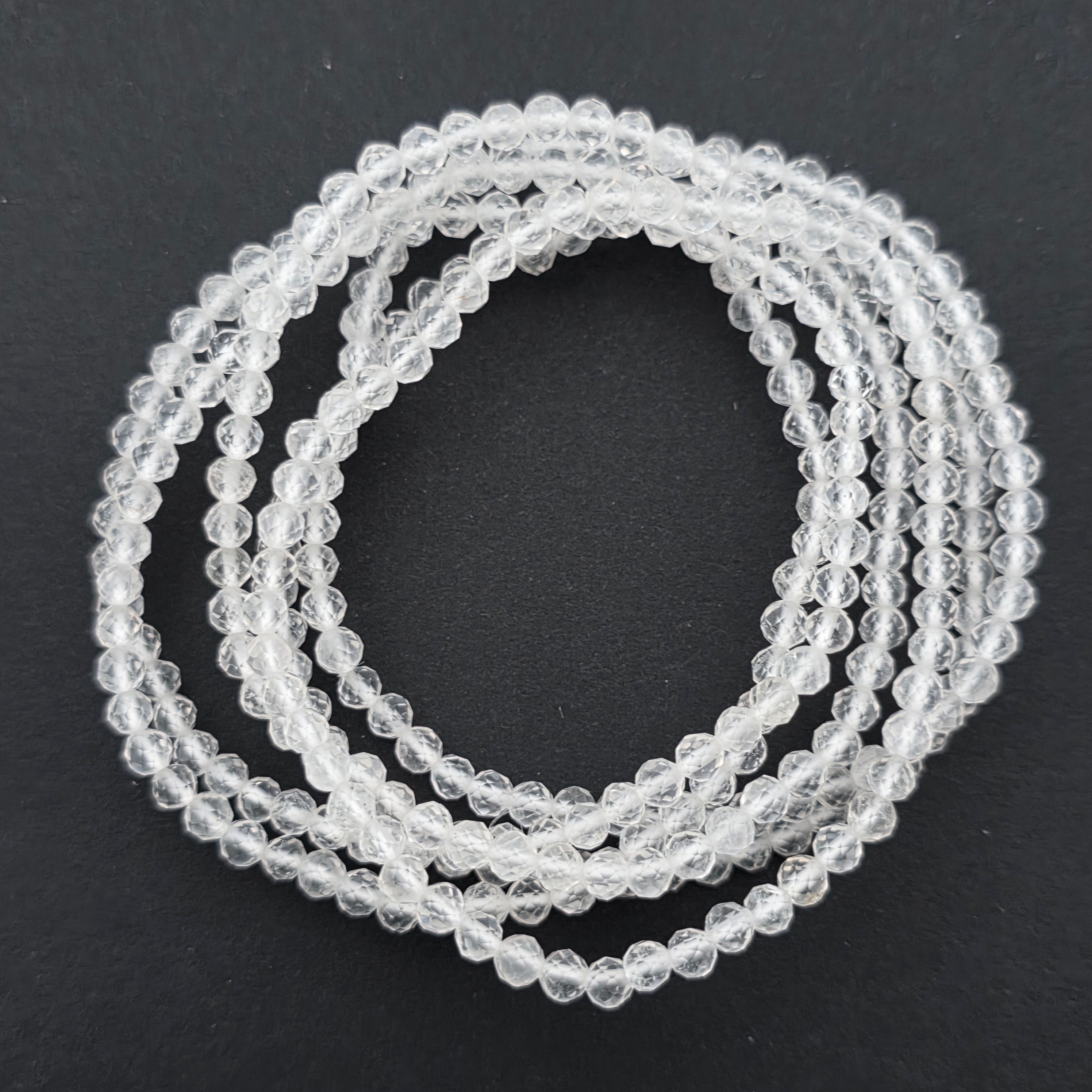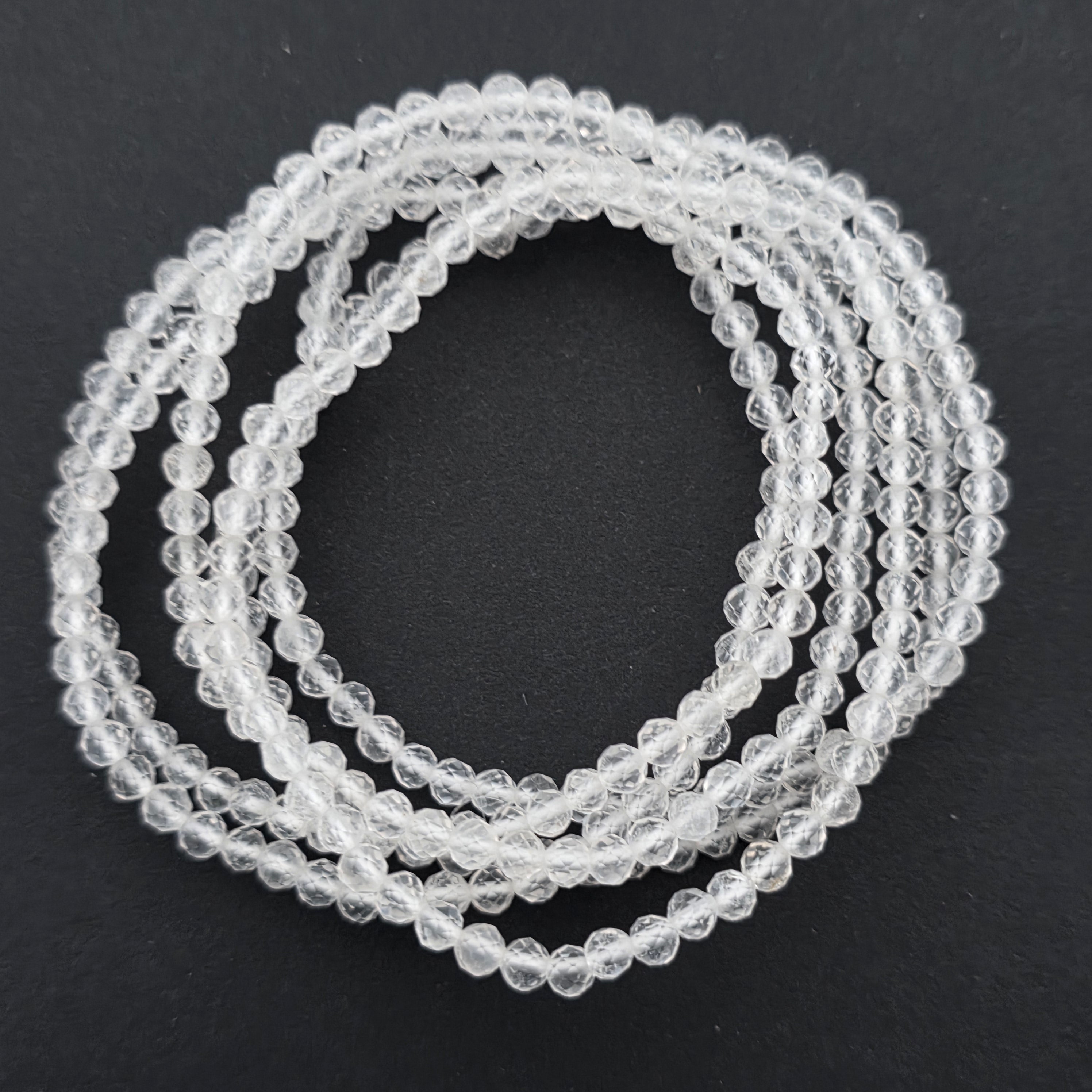 Description - Faceted rock quartz/colorless crystal bracelet 3-4 mm