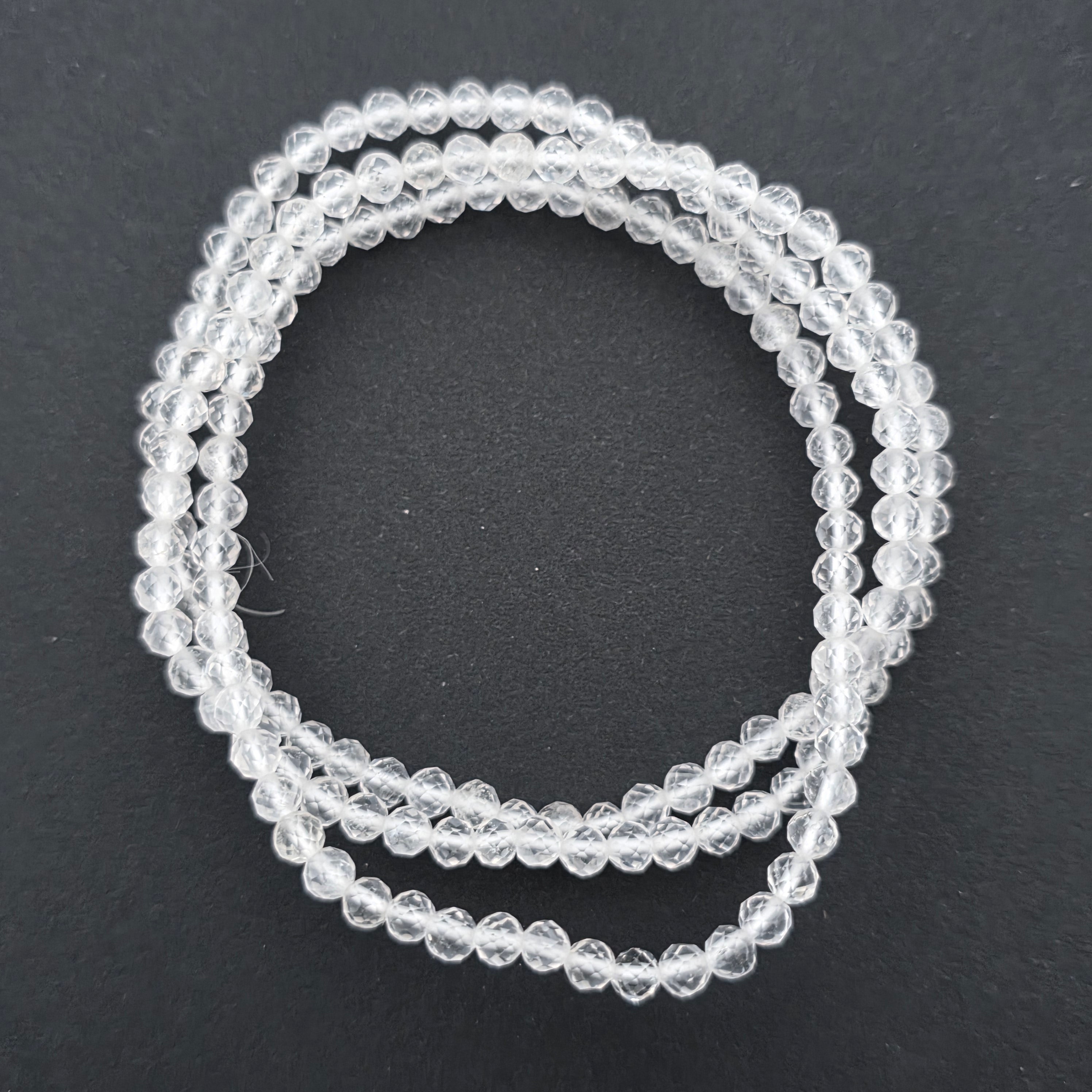 Faceted rock quartz/colorless crystal bracelet 3-4 mm