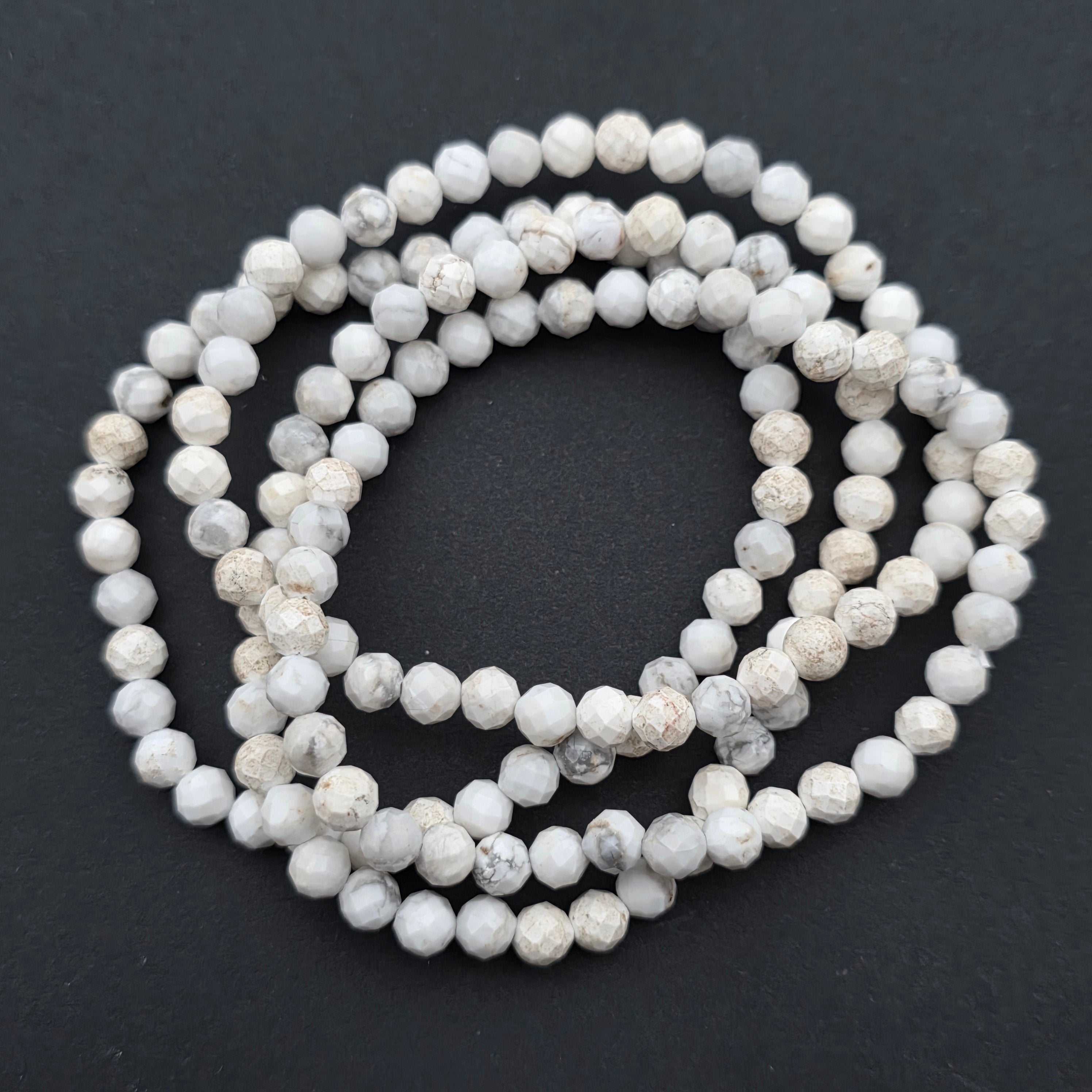 Description - Faceted White Howlite Bracelet 5 mm