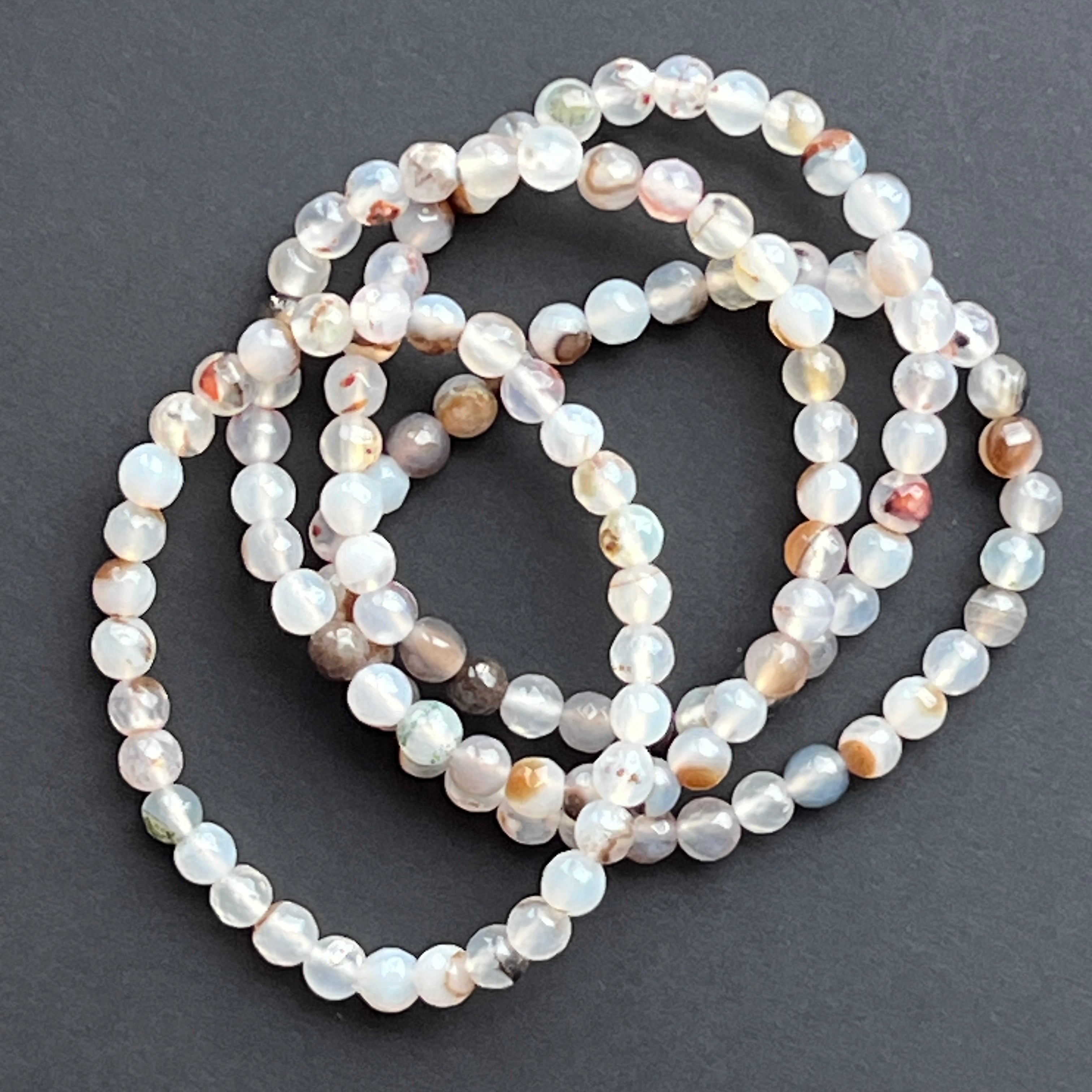 This bracelet made of Botswana Agat, made up of 6 mm spherical beads, impresses with the discreet elegance of its natural stripes. The gentle colors - gray, brown, white and sometimes subtle pink shades - create a fascinating visual game, highlighted by the facets that reflect the light with delicacy.