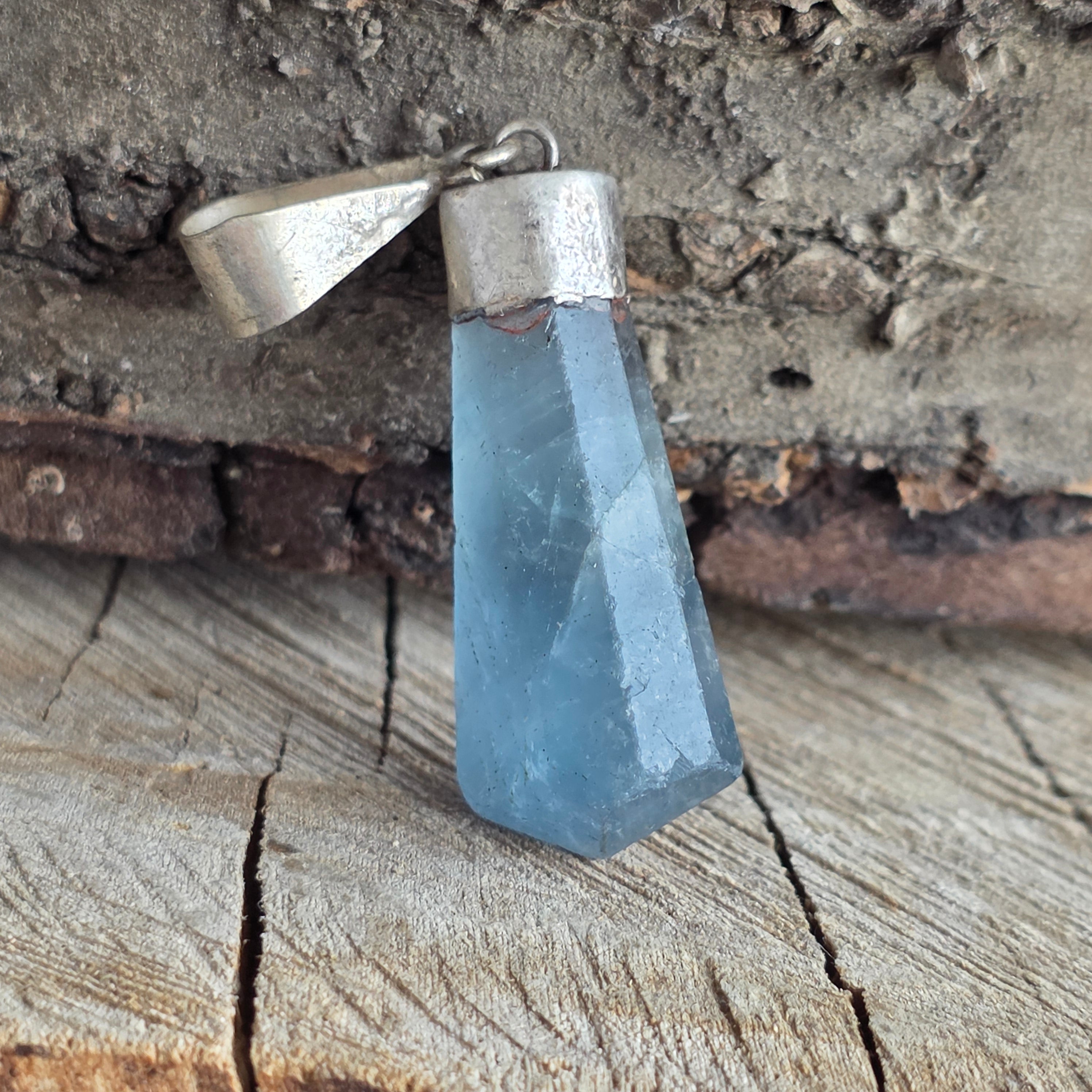 This silver pendant with fluorite impresses with its transparency and varied shades, from green to purple. Its simple design highlights the natural beauty of the stone.