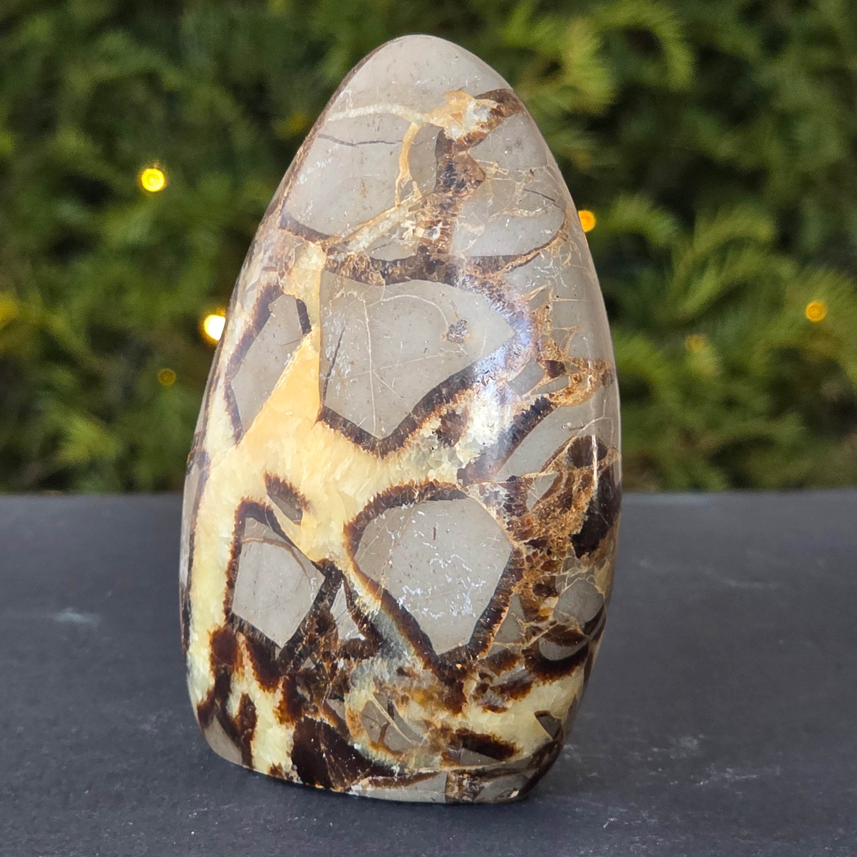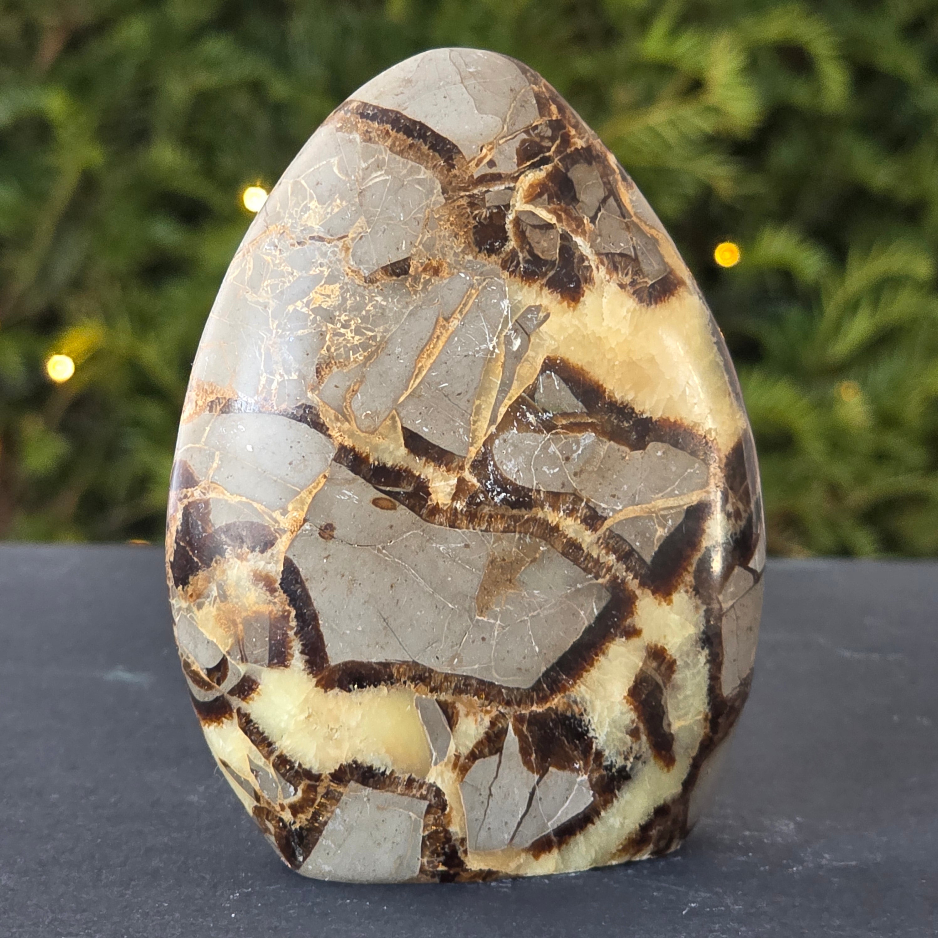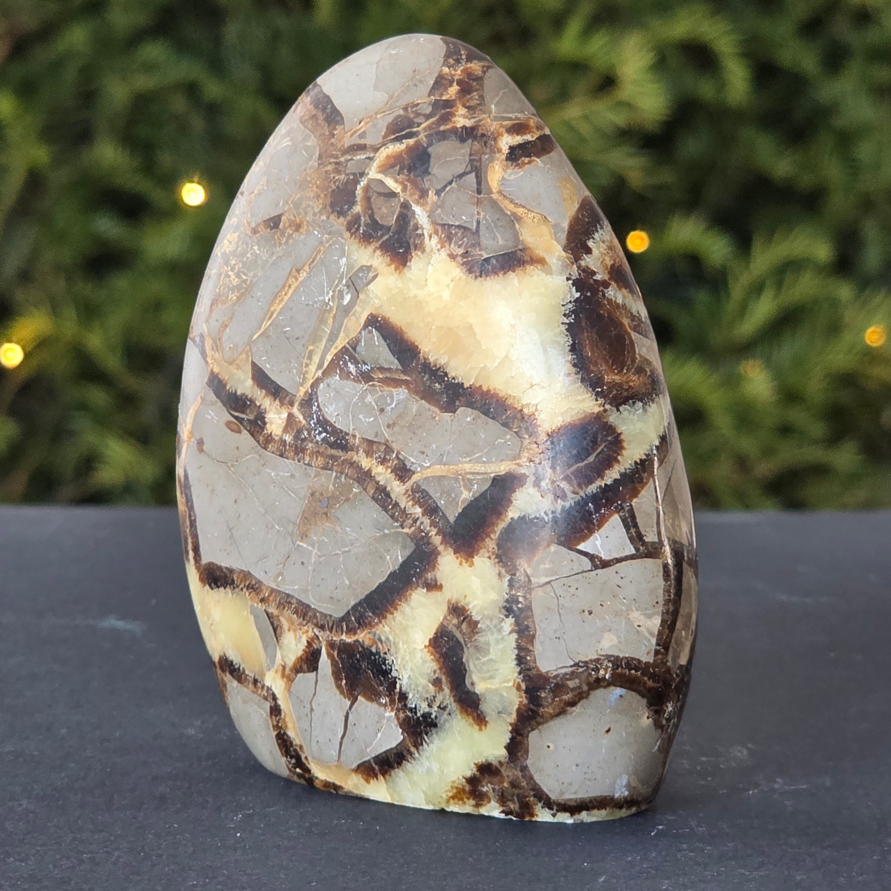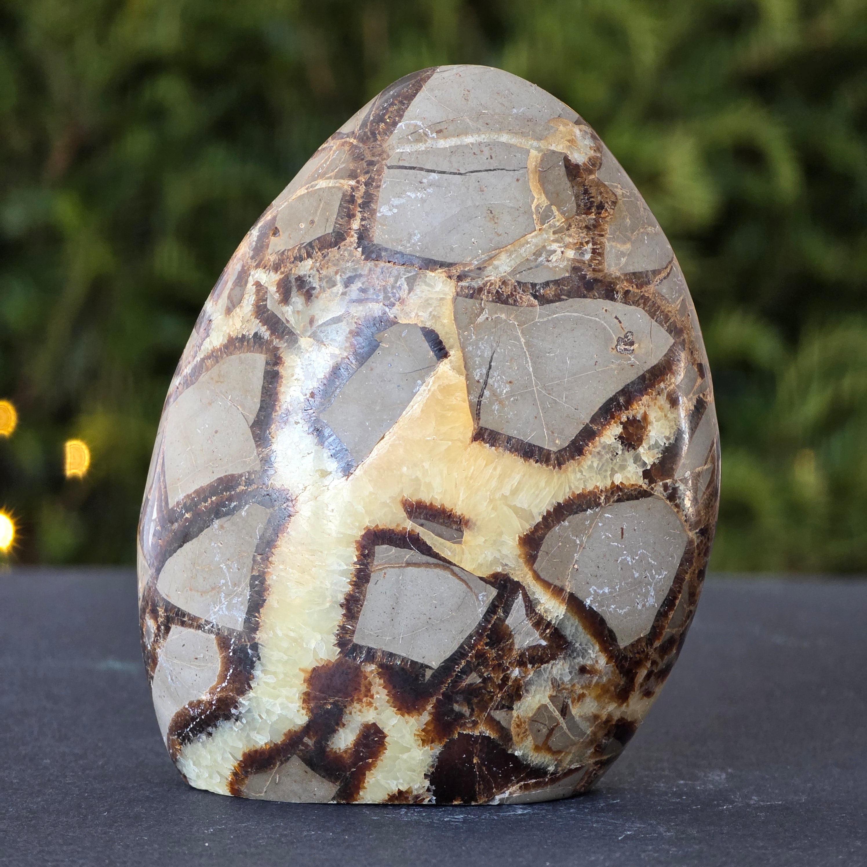 Septaria is made up of calcite, limonite, gypsum and barite, minerals that form a unique play in this stone and give it a special appearance.