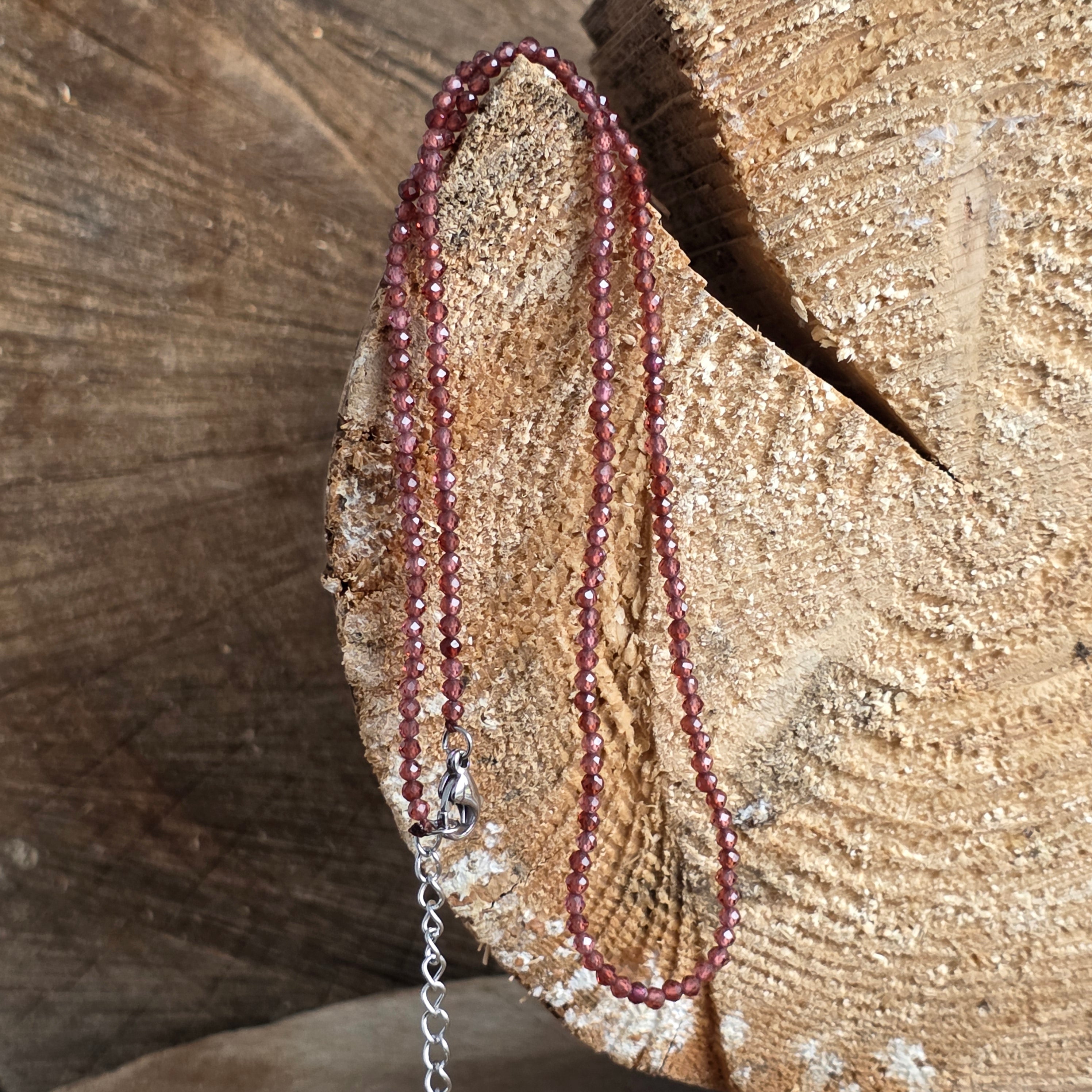 Garnet necklace spheres 2 mm, size: 38 + 5 cm (extension chain)