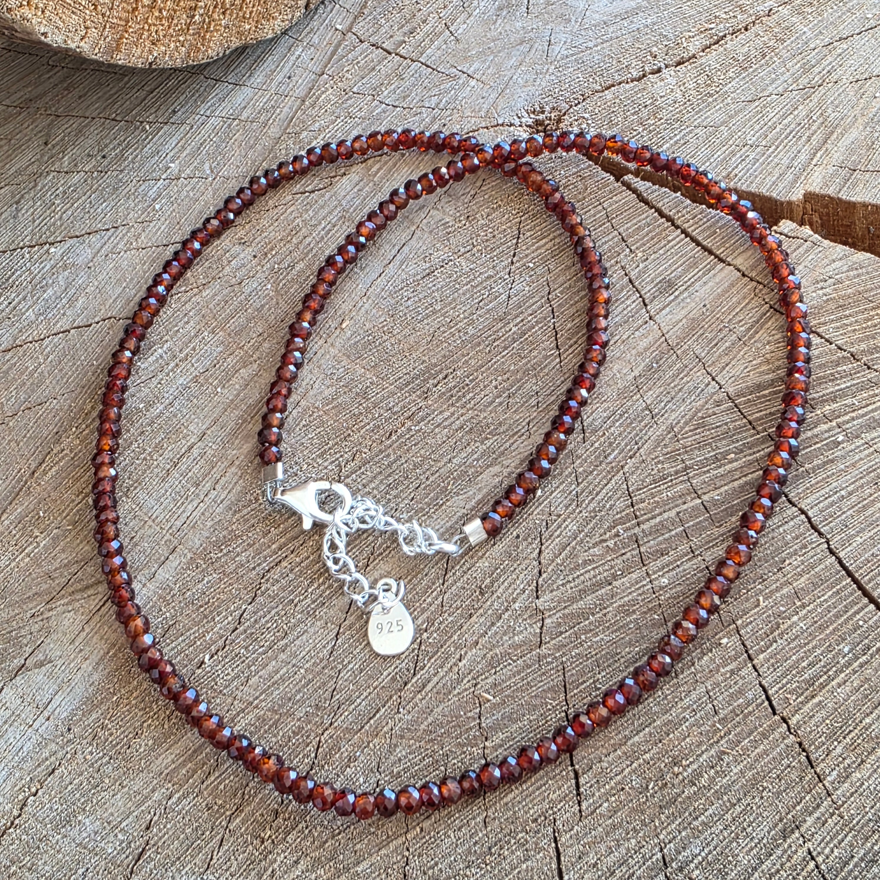 Materials: Natural red hematite quartz, 9 mm faceted beads, 925 silver