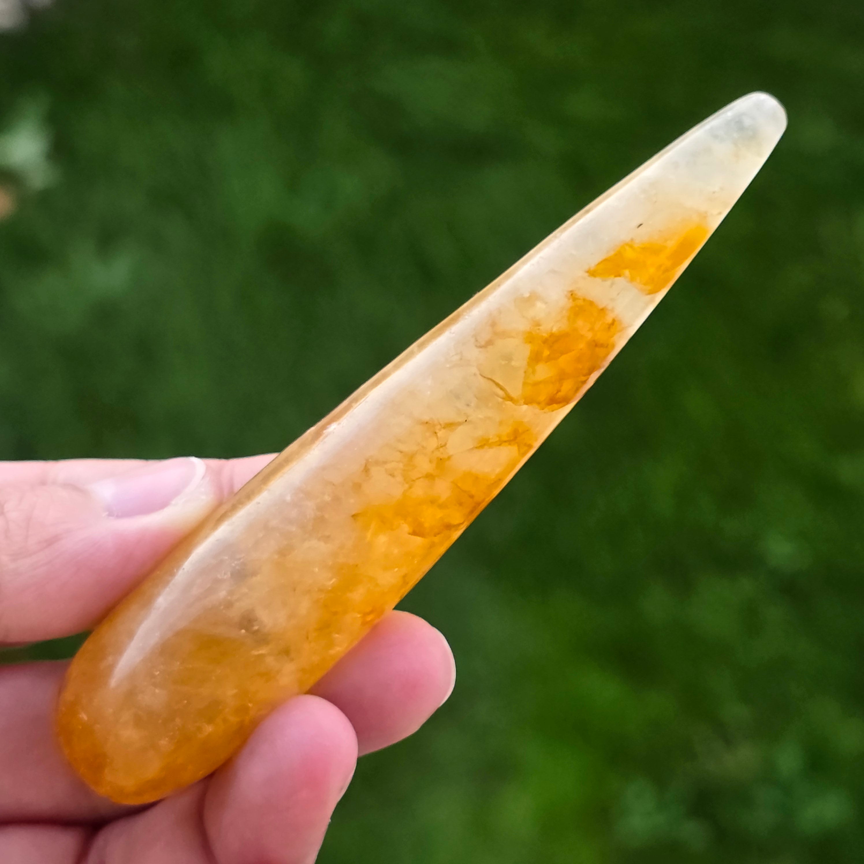 Golden Healer, also called lemon quartz or golden quartz, is a stone primarily associated with the crown chakra and the heart chakra. Its warm and luminous energy can help release tension, stress, and anxiety, providing in return a sense of calm and inner balance.