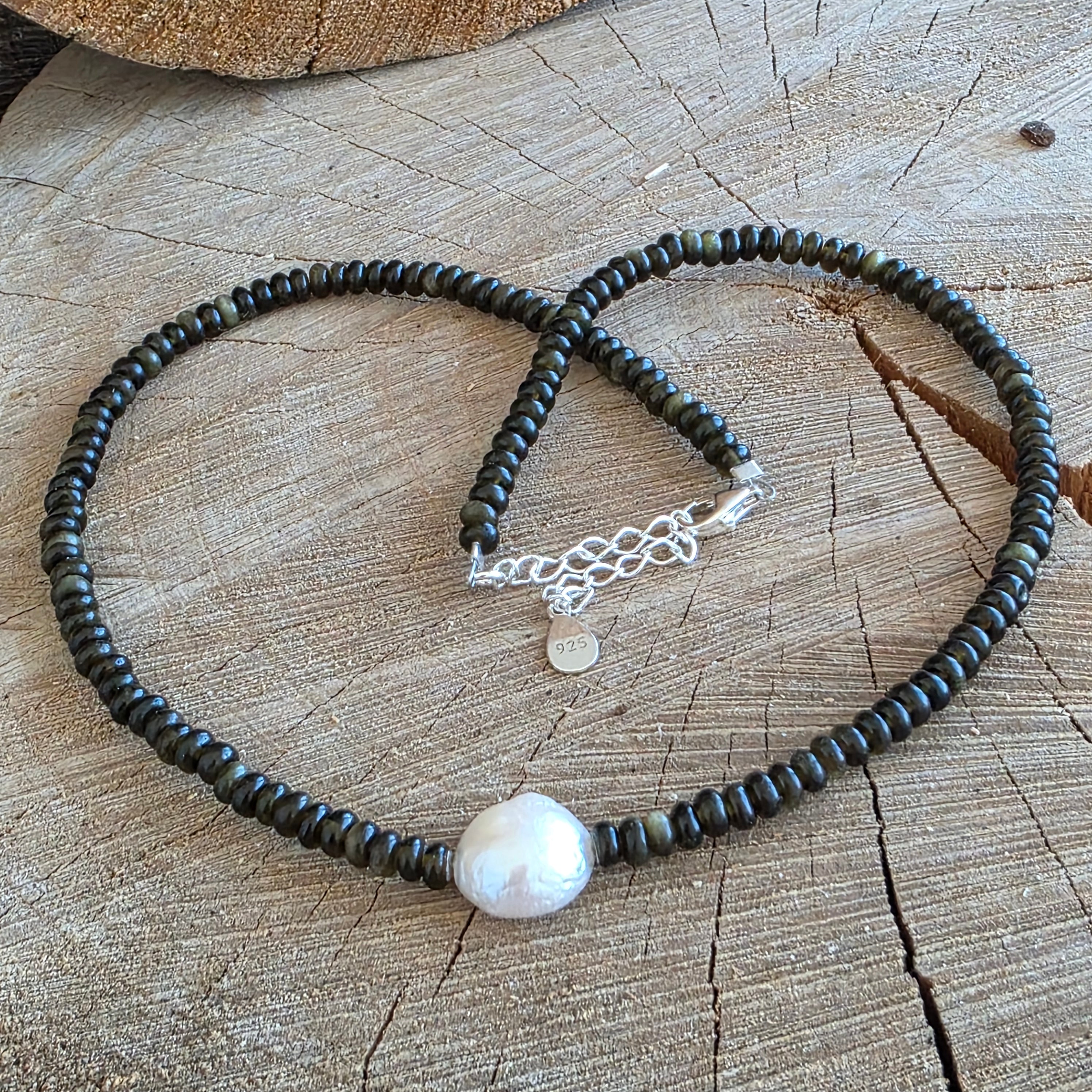 This necklace is not flashy, but a piece of jewelry with discreet and well-balanced impact. A piece with personality, created for those who appreciate stones with a strong visual structure, sober elegance, and beauty expressed through subtle contrast and depth.