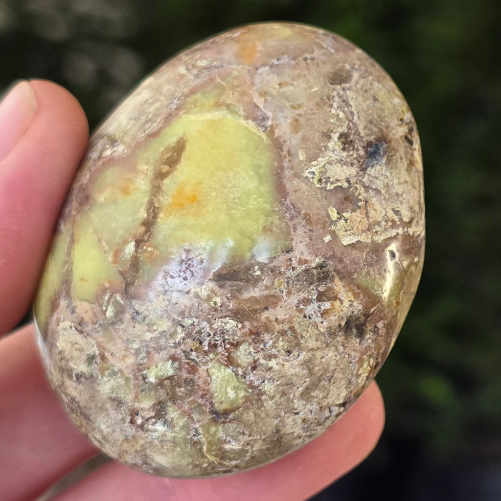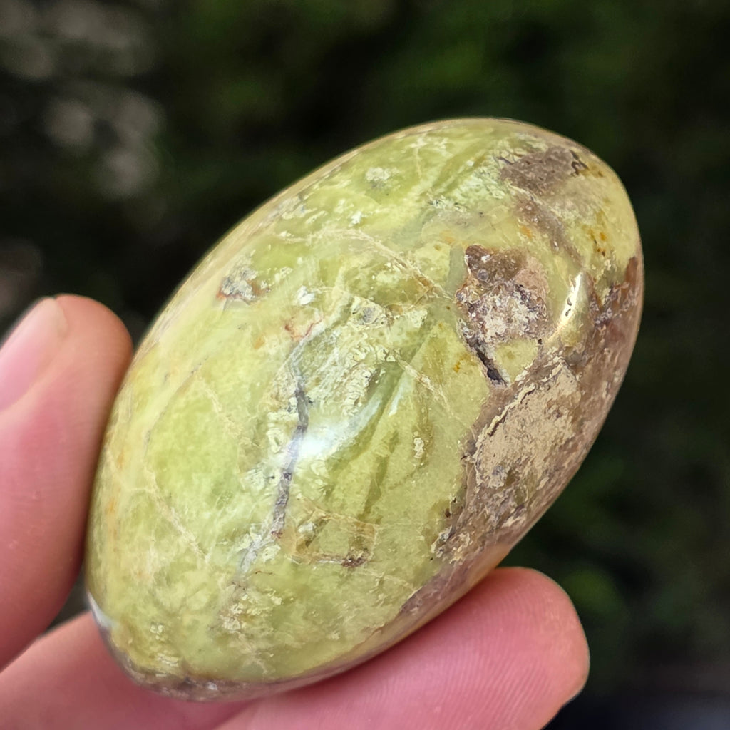 Green opal is a variety of opal with shades of pale green to deep green, made up of hydrated silicon dioxide. It is an amorphous mineral with a glassy luster and a hardness of 5.5–6.5 on the Mohs scale. It is found in Australia, Peru, Brazil, and Mexico. Energetically, it is associated with the heart chakra, bringing calm, emotional balance and inner regeneration. It is ideal for times of change, supporting forgiveness and self-acceptance. In crystal therapy, it is used to relieve anxiety and strengthen the immune system.