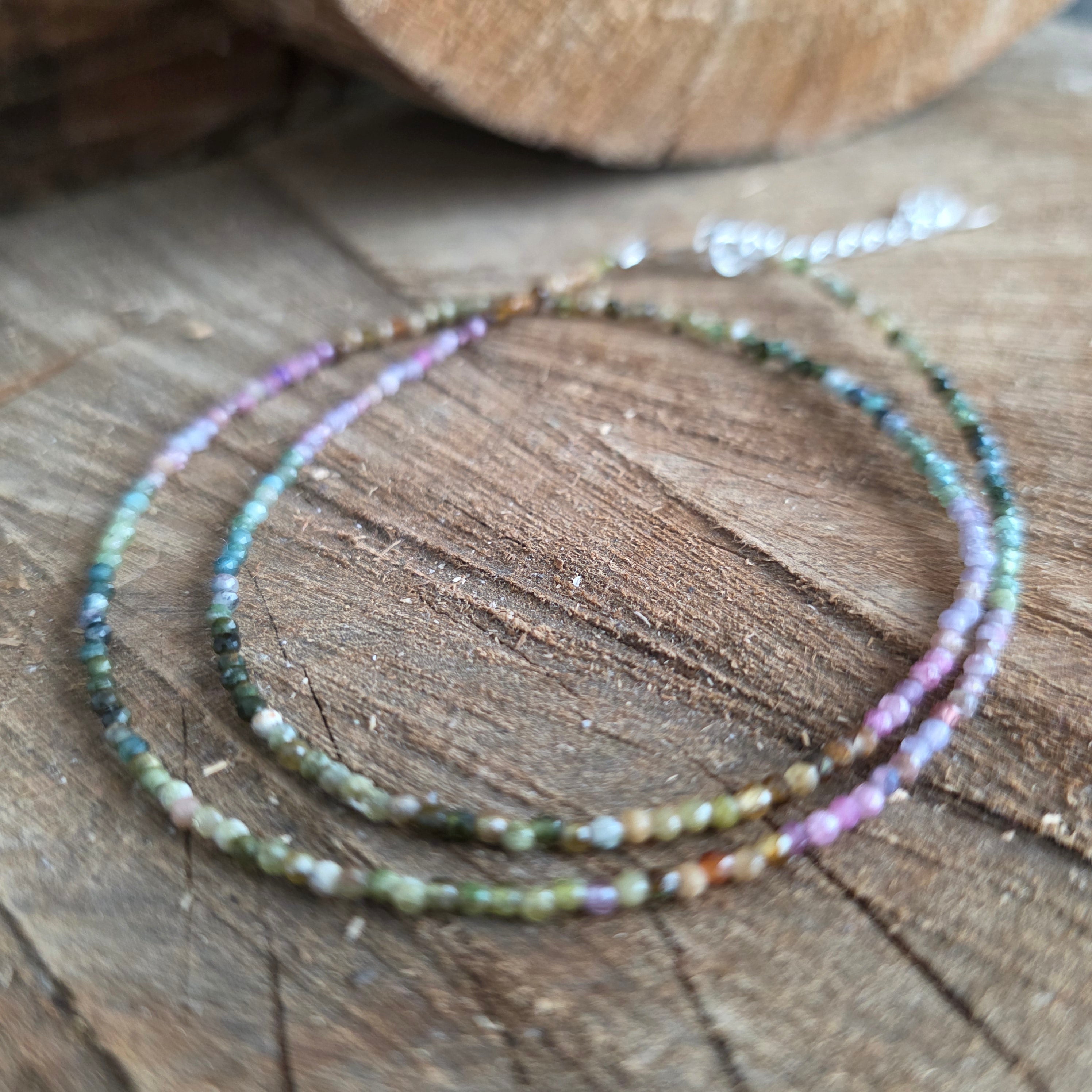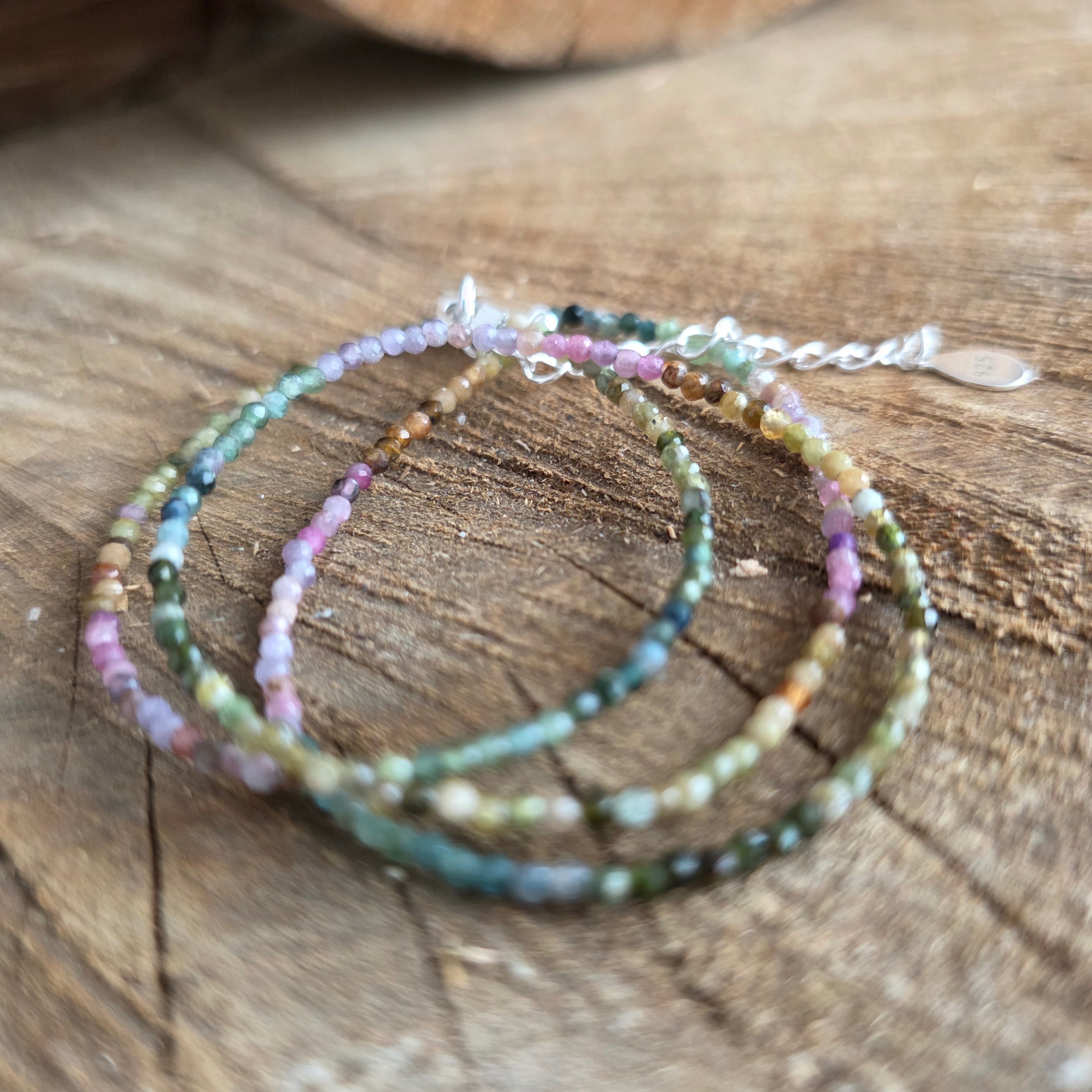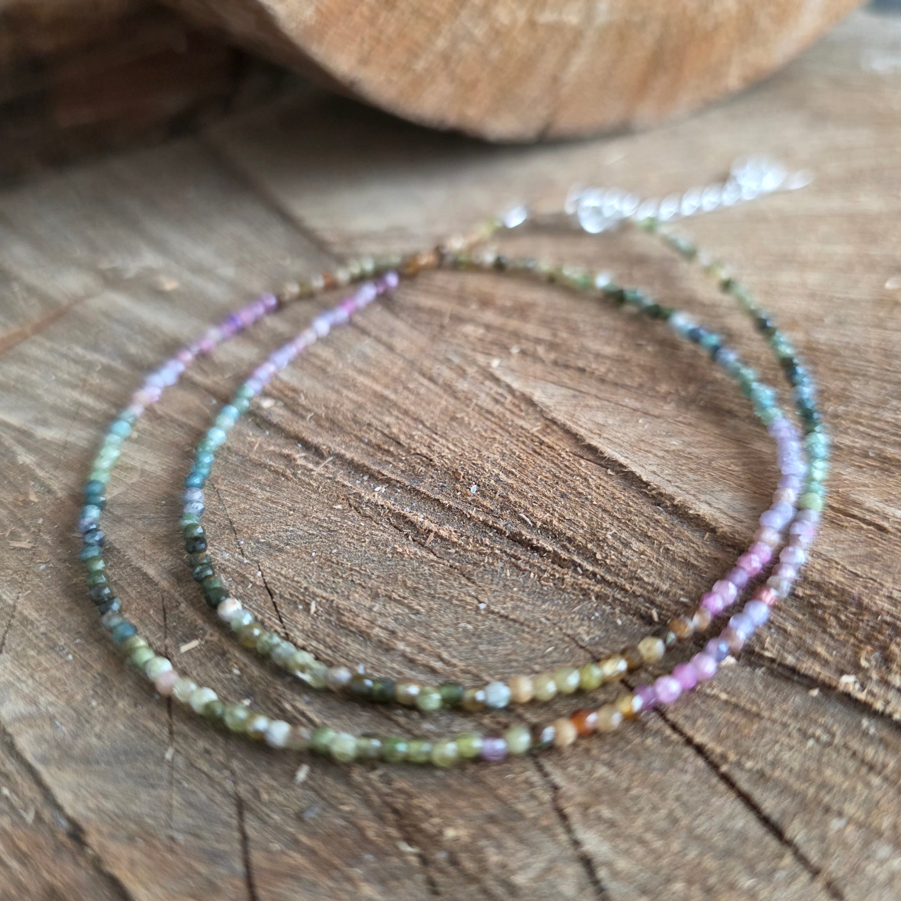 A necklace that combines strength with the beauty of diversity. 2mm faceted natural tourmaline reveals a symphony of earthy and pastel colors, like an autumn garden captured in the light. Its fine facets subtly reflect each shade, giving the necklace an air of refinement and full of vitality.