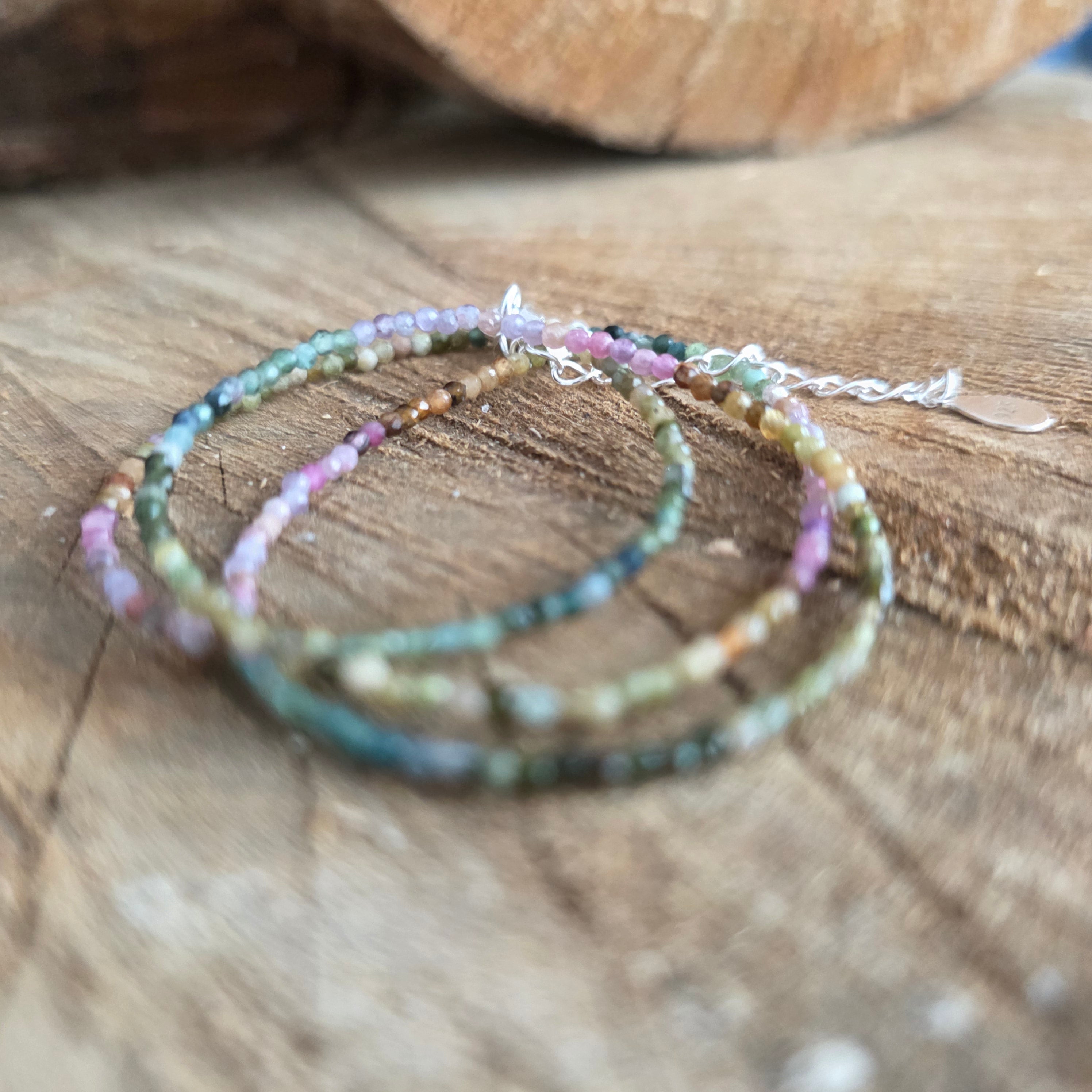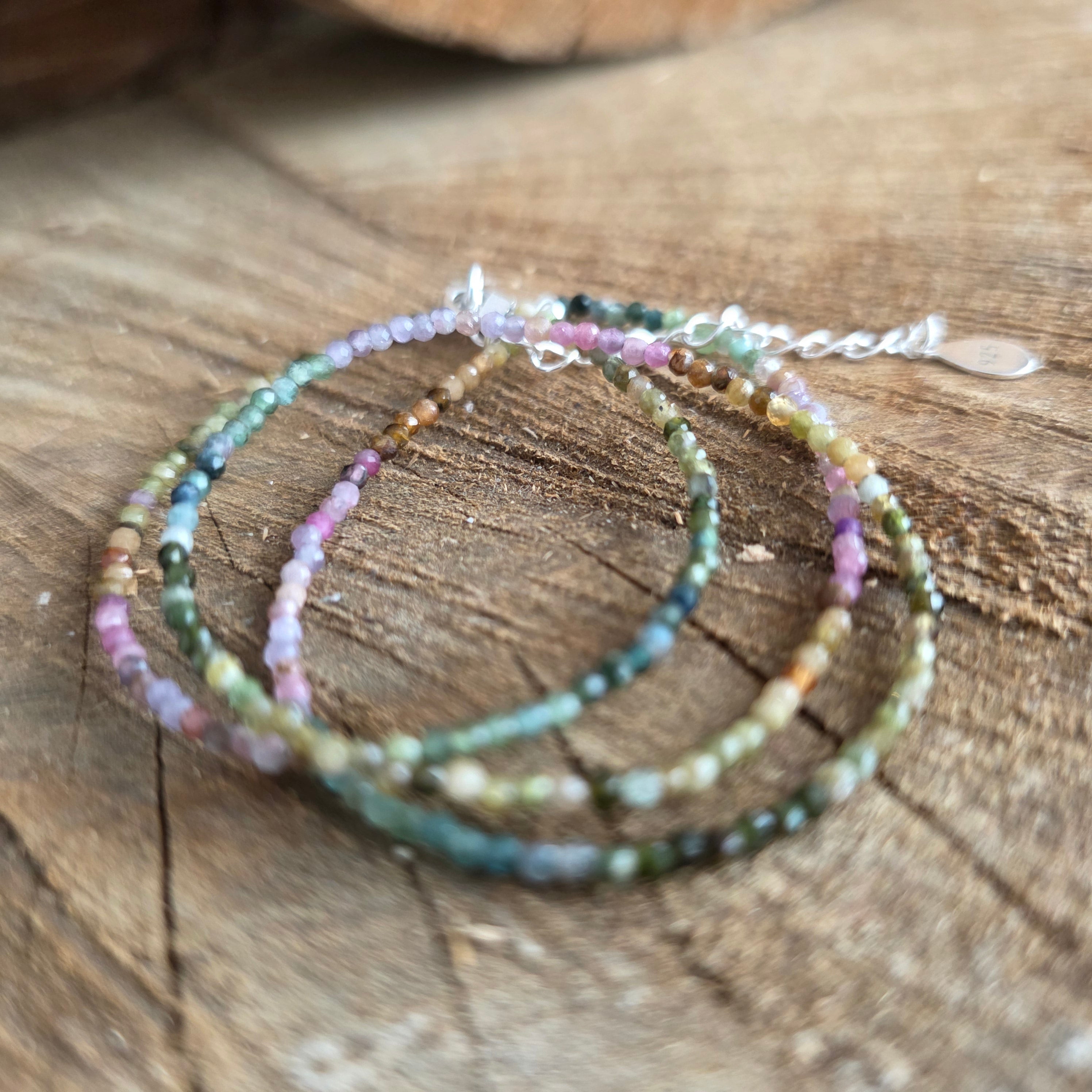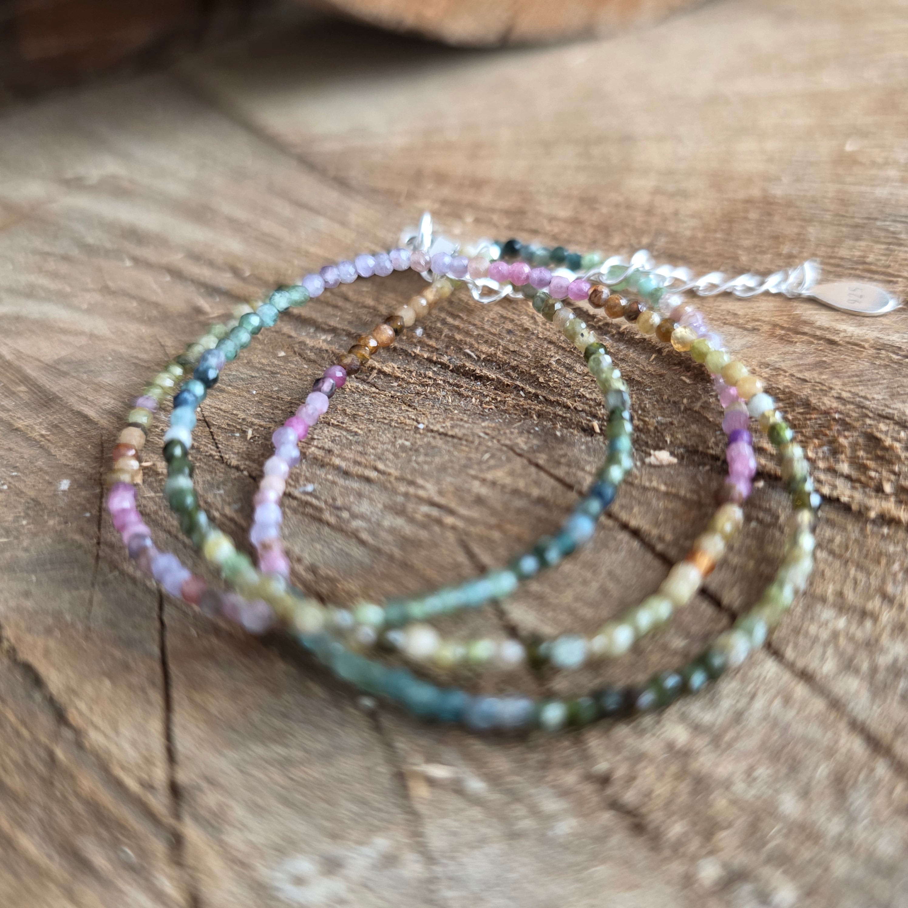A necklace that combines strength with the beauty of diversity. 2mm faceted natural tourmaline reveals a symphony of earthy and pastel colors, like an autumn garden captured in the light. Its fine facets subtly reflect each shade, giving the necklace an air of refinement and full of vitality.