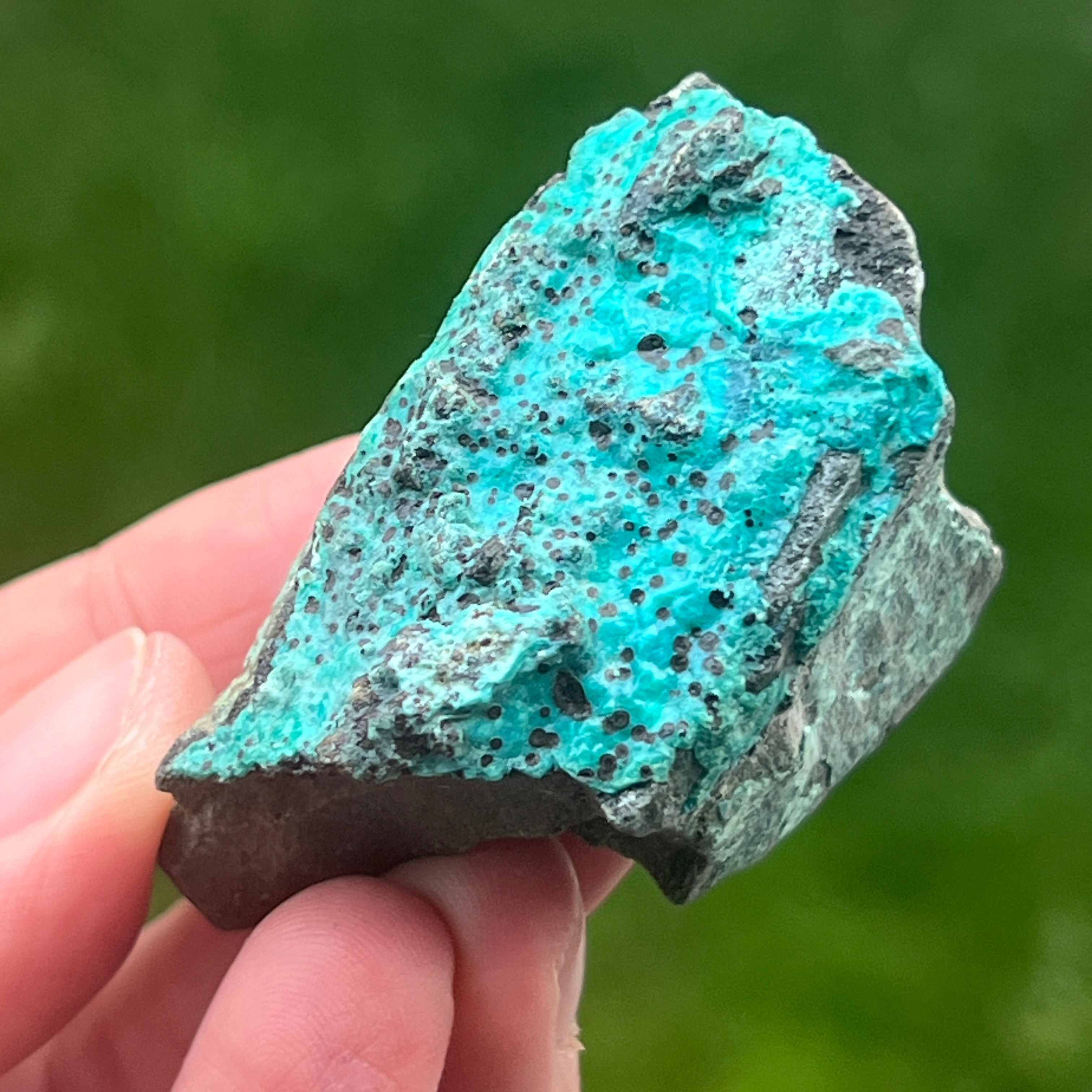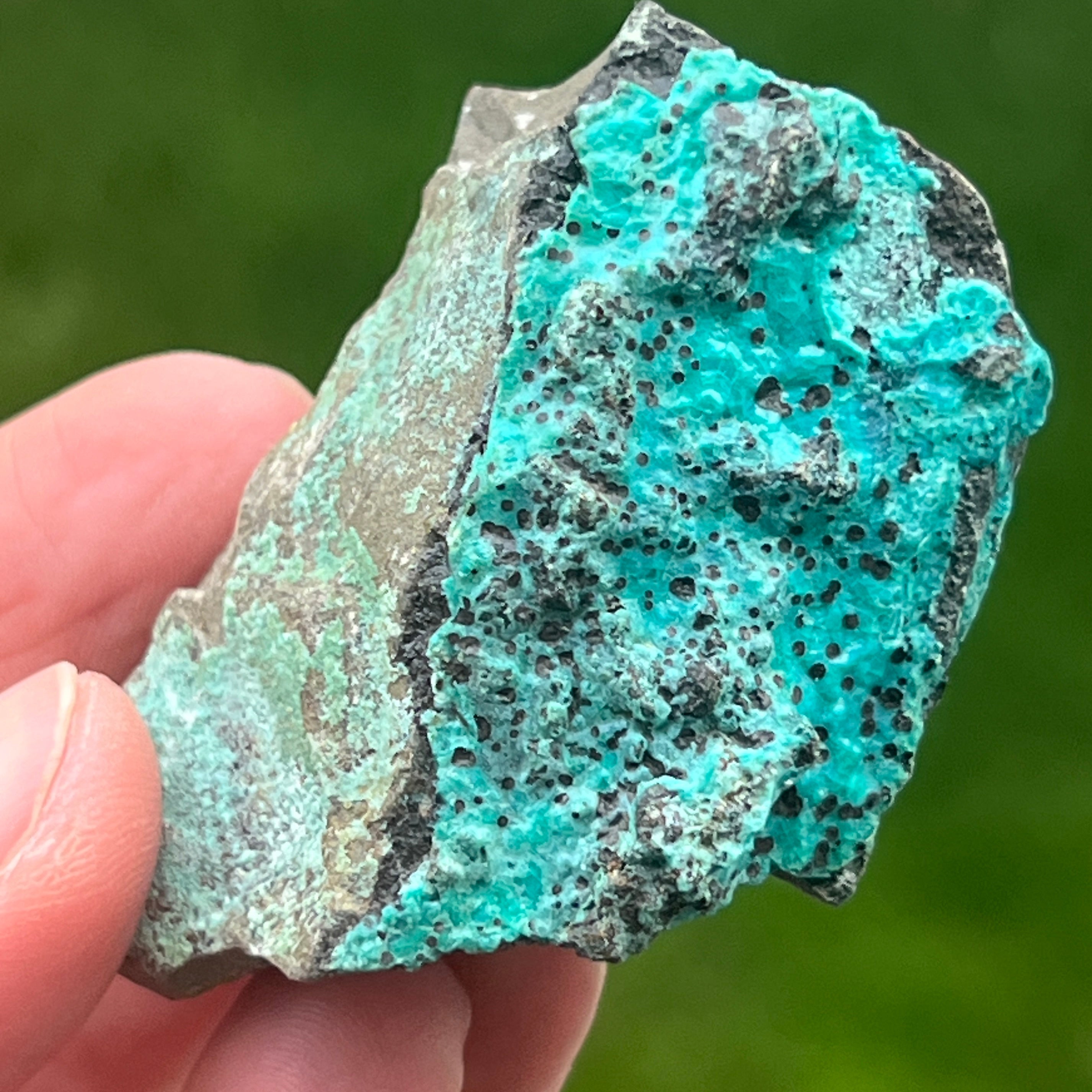 Crisocola is a semiprecious green-blue stone that contains copper.