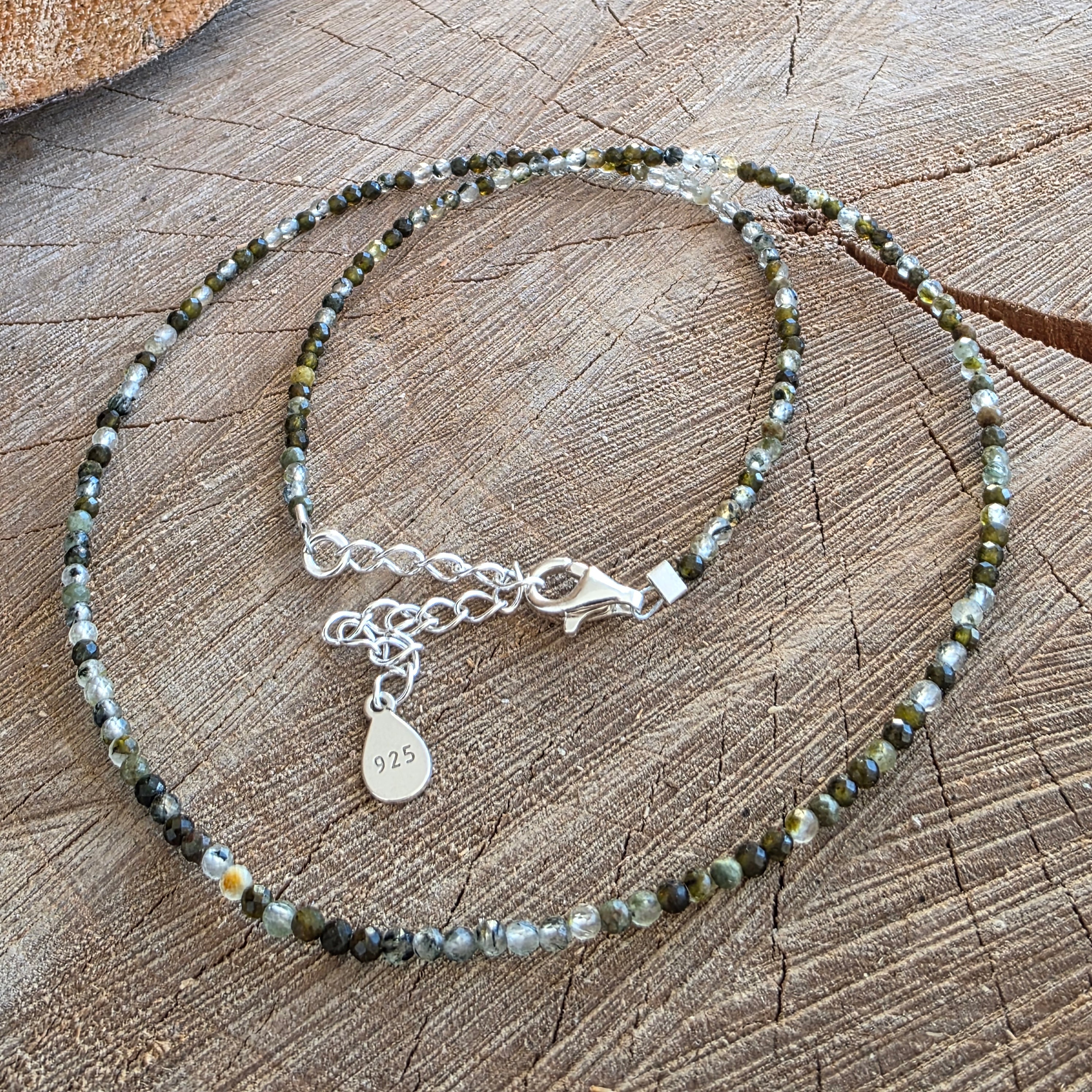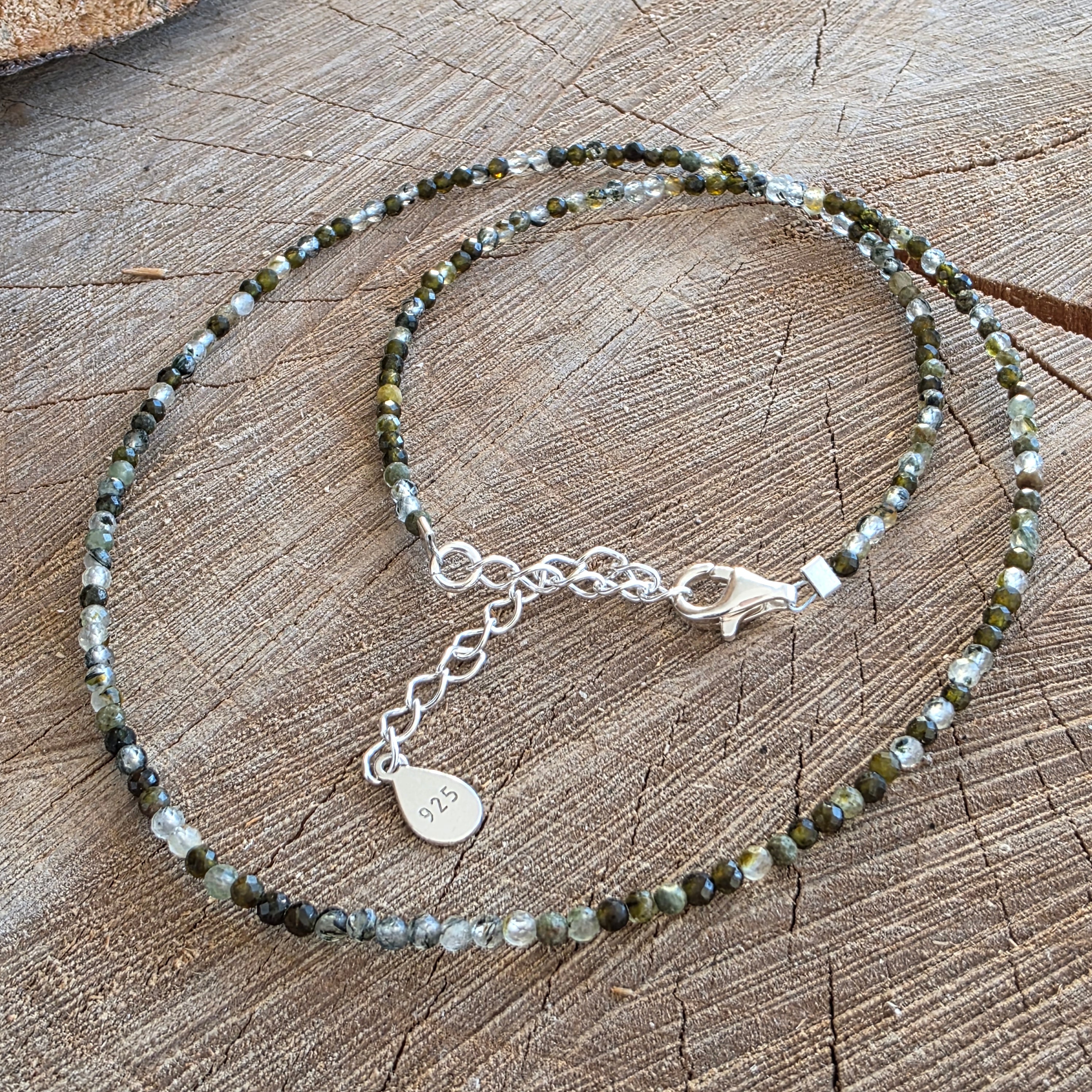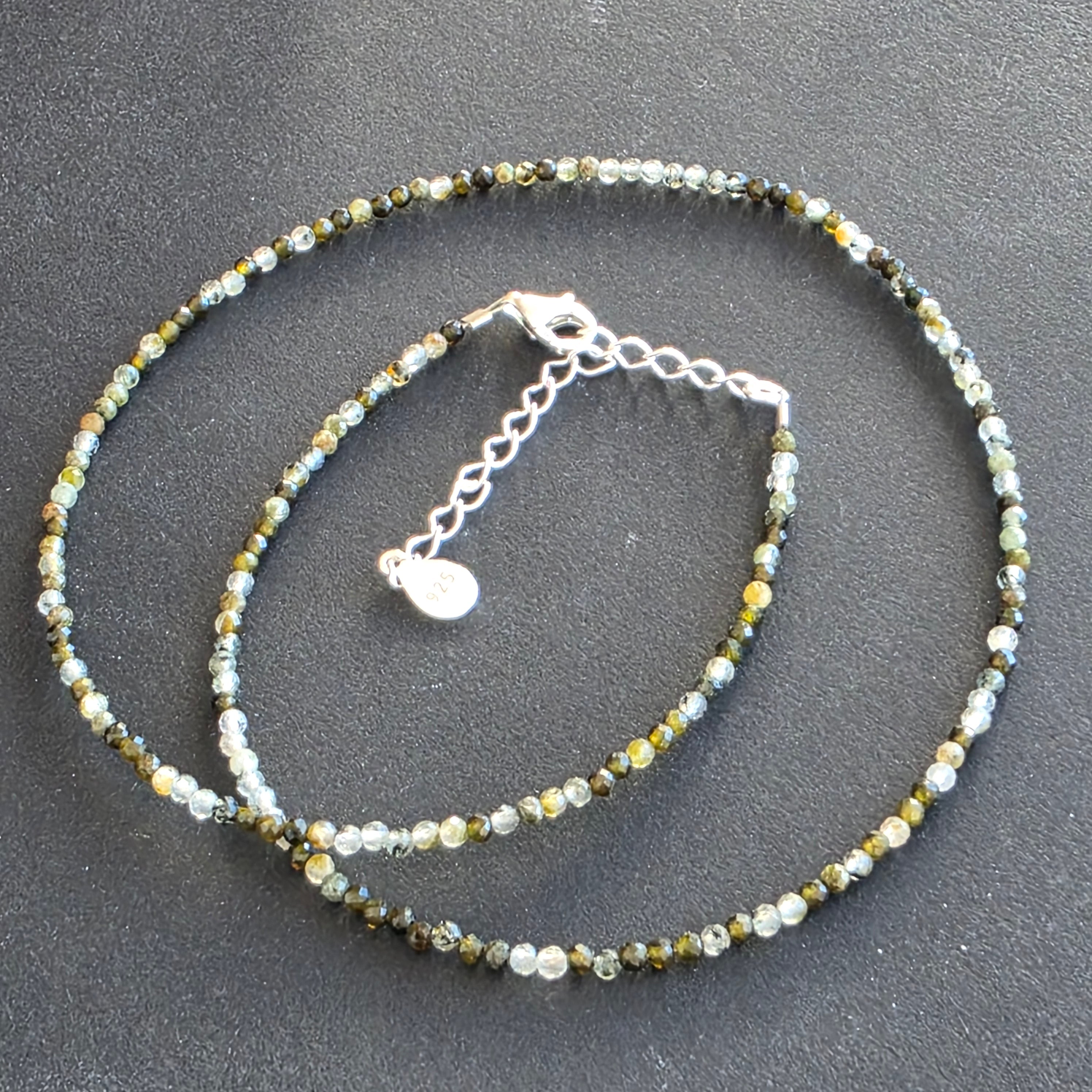 A necklace that combines strength with the beauty of diversity. 6mm faceted natural tourmaline reveals a symphony of earthy and pastel colors, like an autumn garden captured in the light. Its fine facets subtly reflect each shade, giving the necklace an air of refinement and full of vitality.