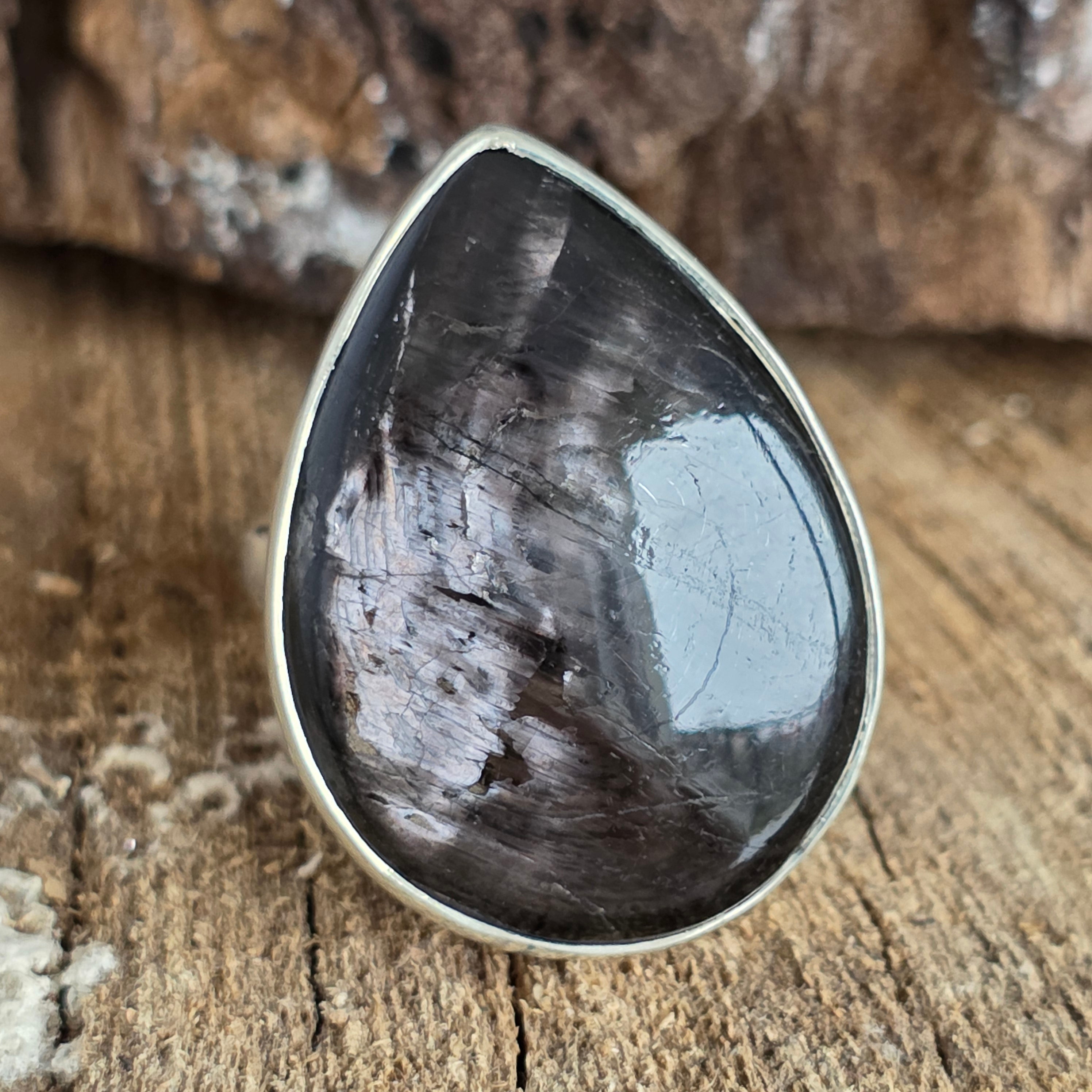 Choose this ring with natural hypersten to wear with you a symbol of clarity and inner force - a unique jewel, created by nature and finished in silver.