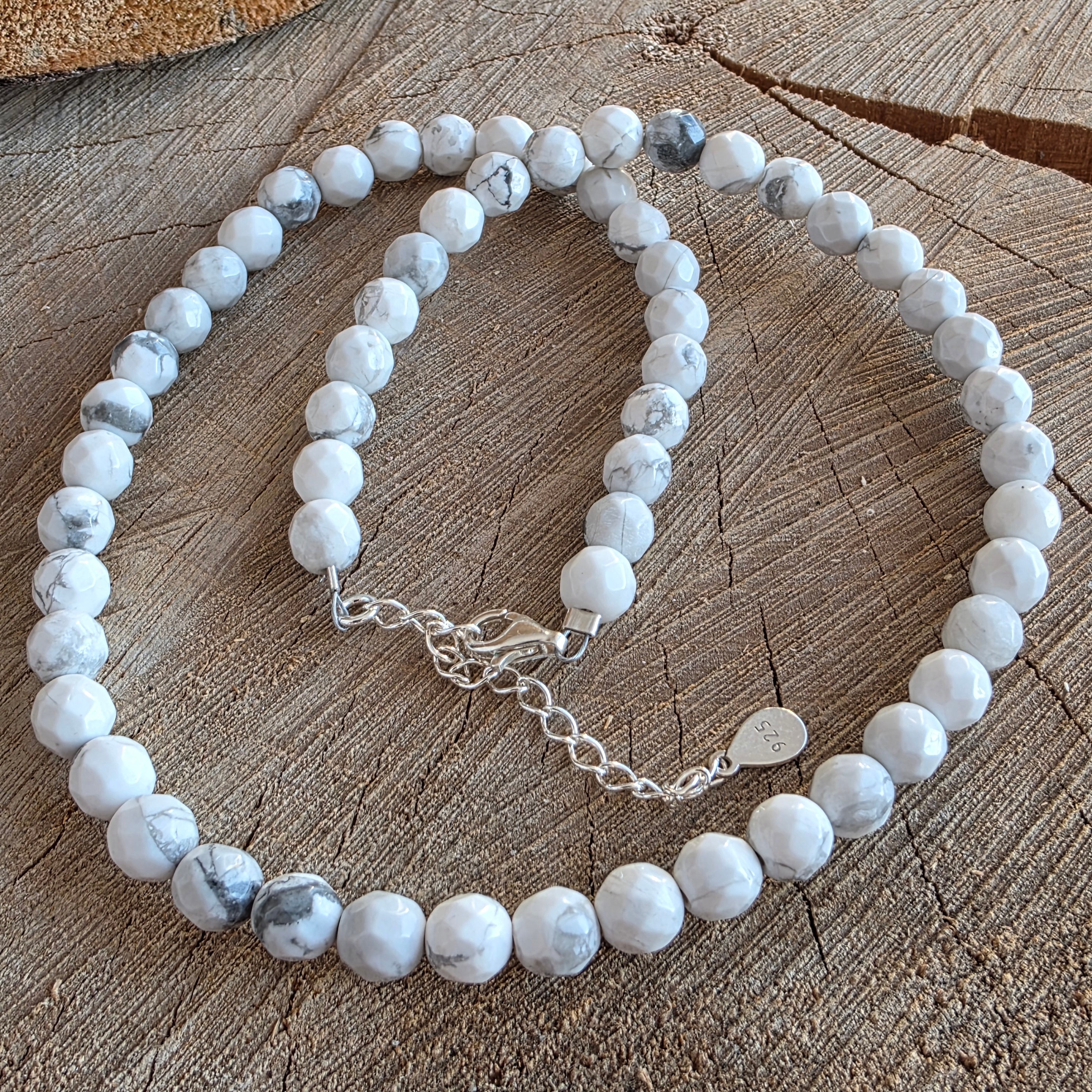 Materials: Howlit white face (6 mm spheres), 925 silver