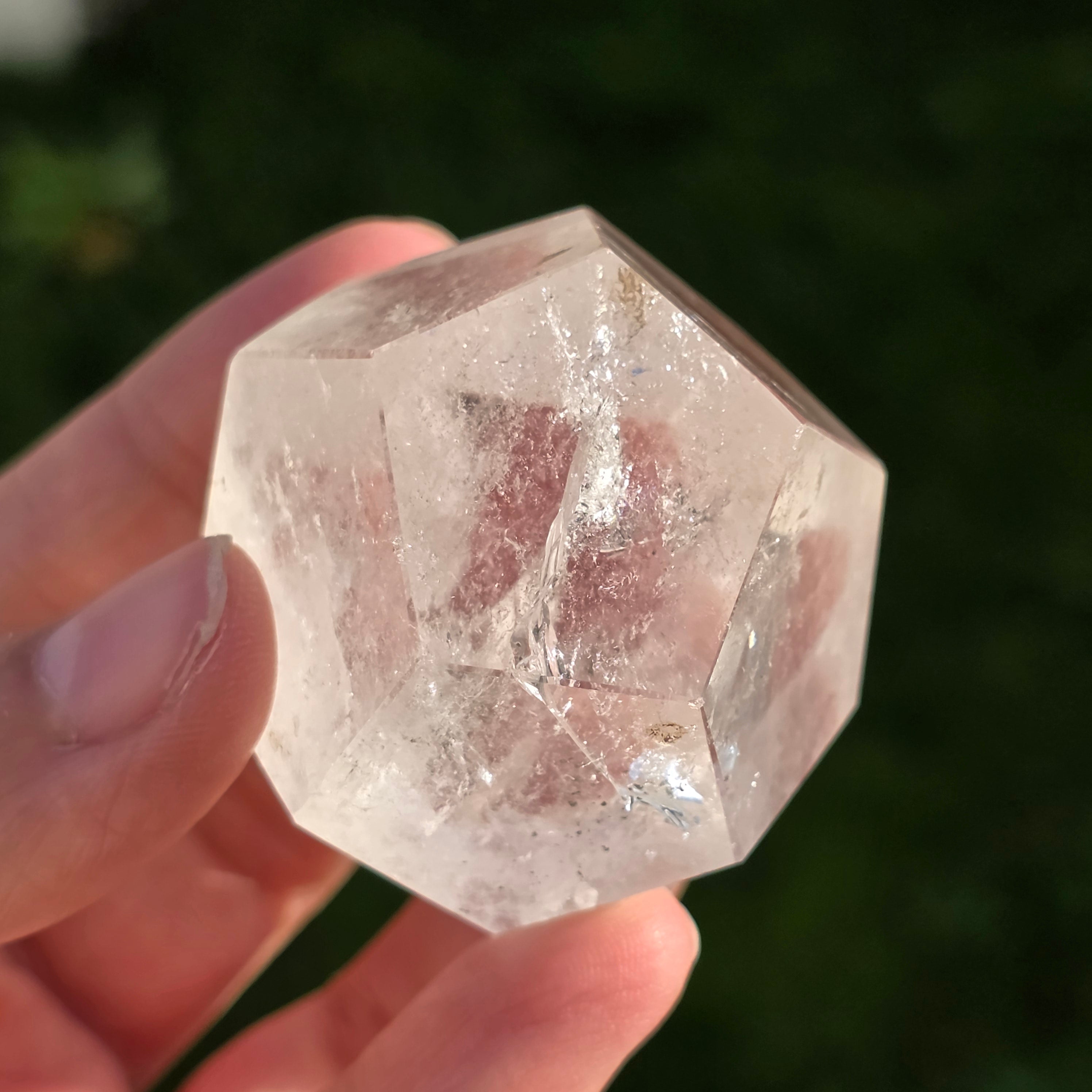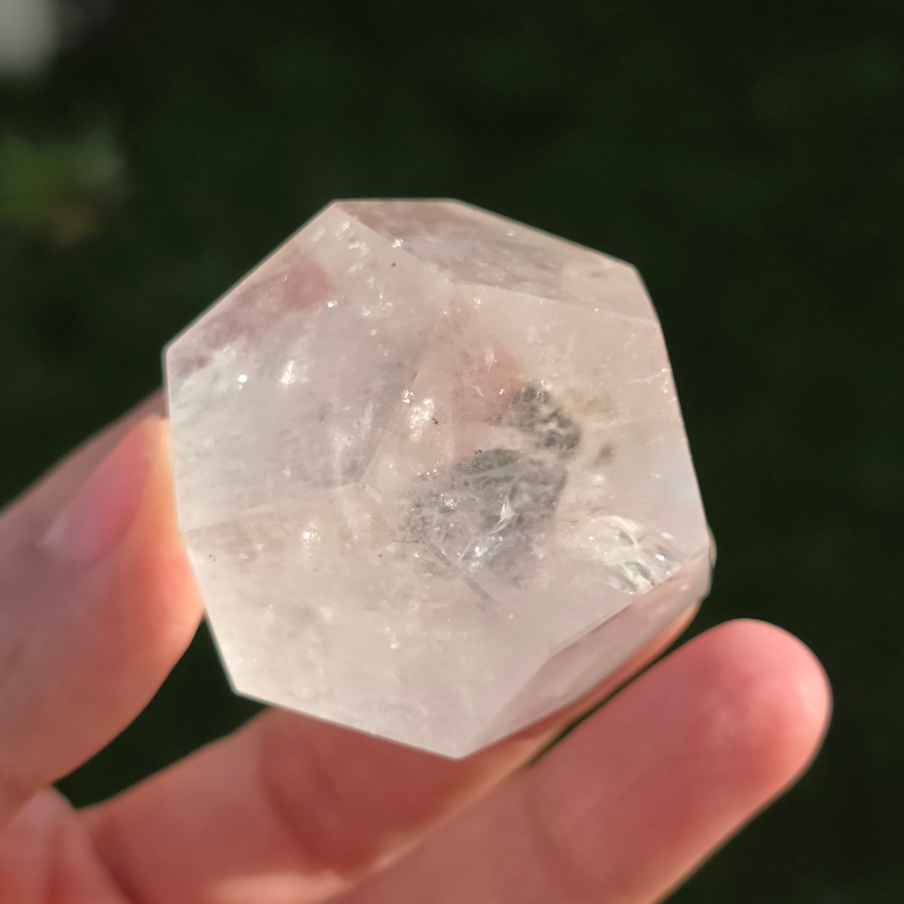 Color quartz Icosahedron (rock crystal), manually polished with precision in the form of a platonic body with 20 equilateral triangular faces.