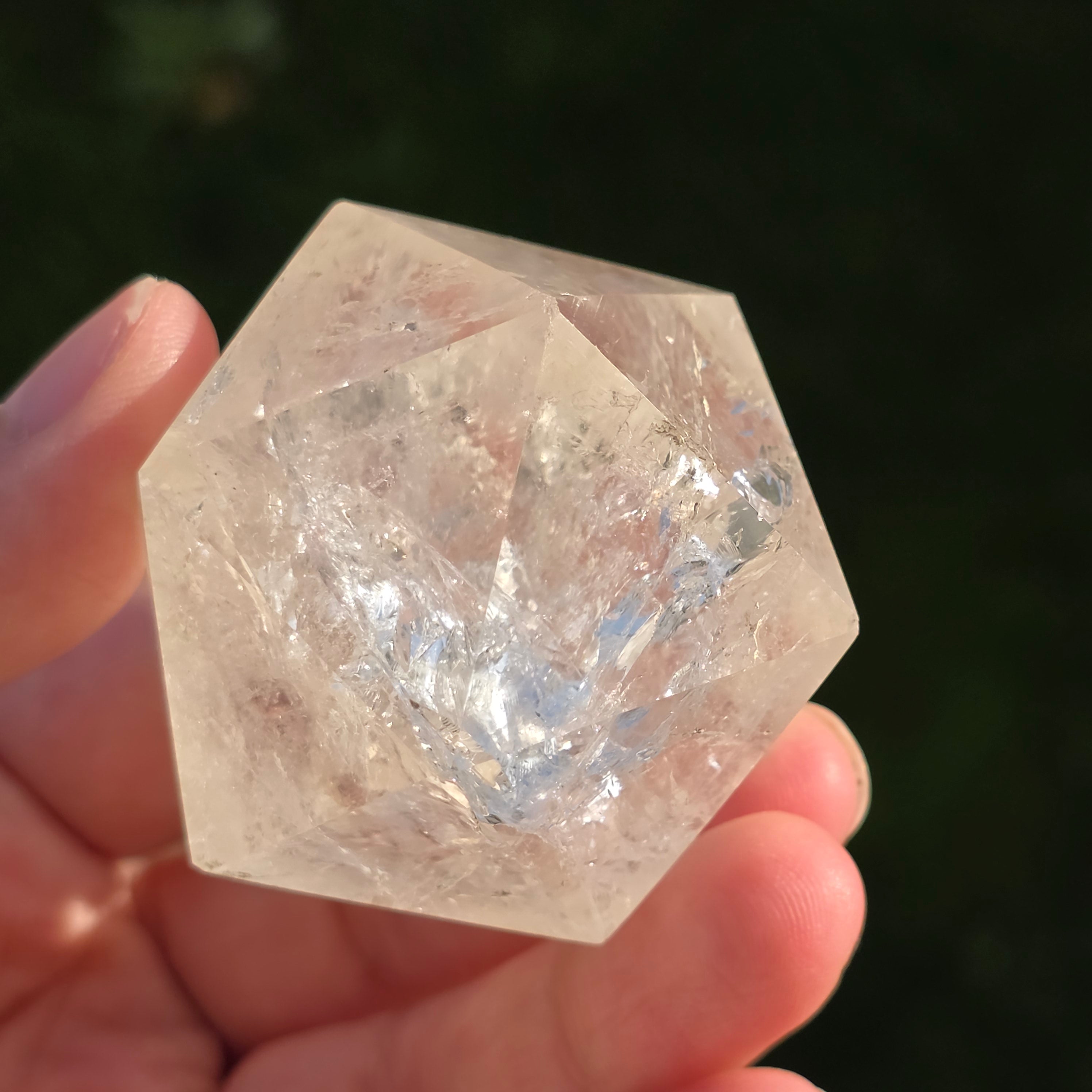 Made of rock crystal - the stone of clarity and energy amplification - this icosahedron brings balance, fluidity and opening to interior transformation.