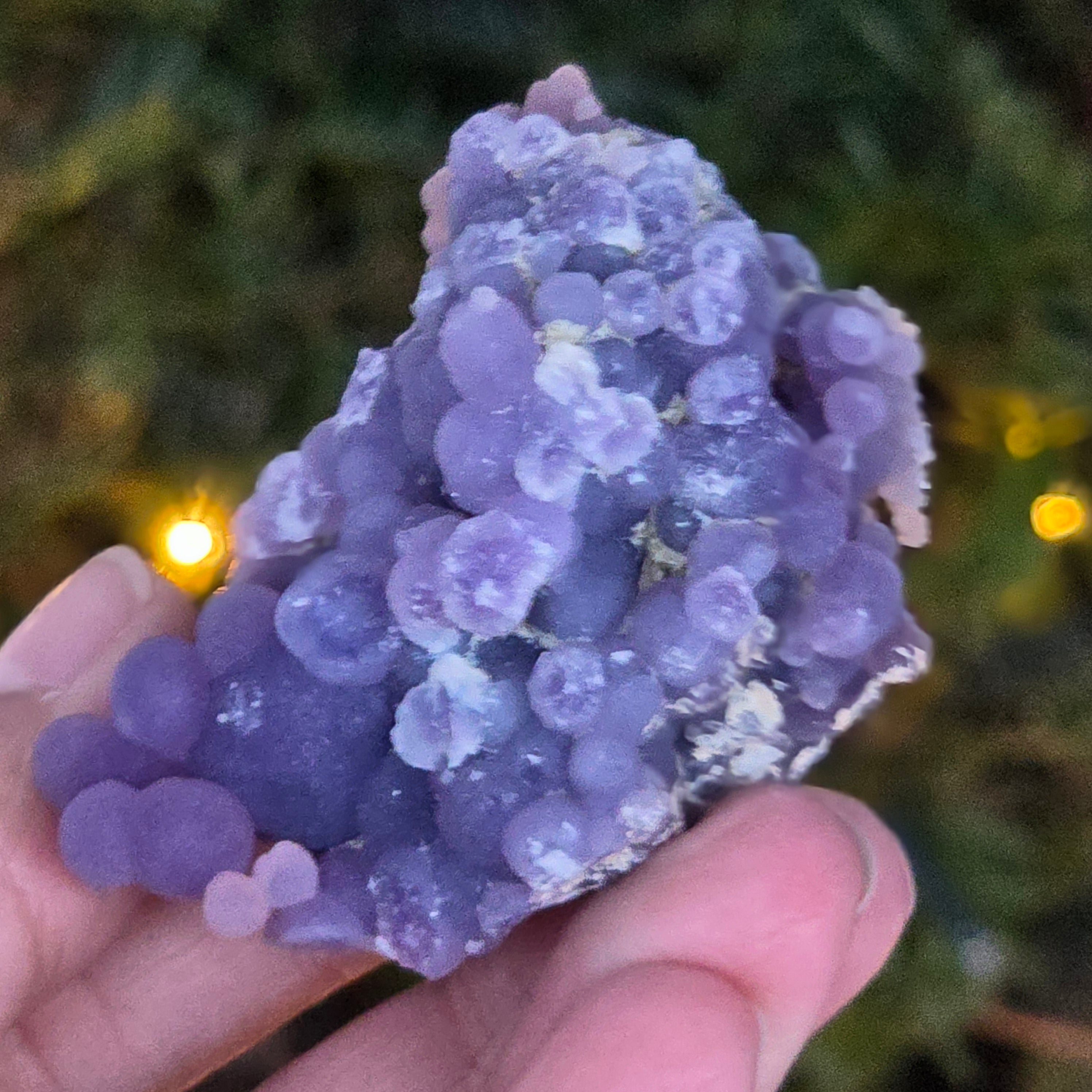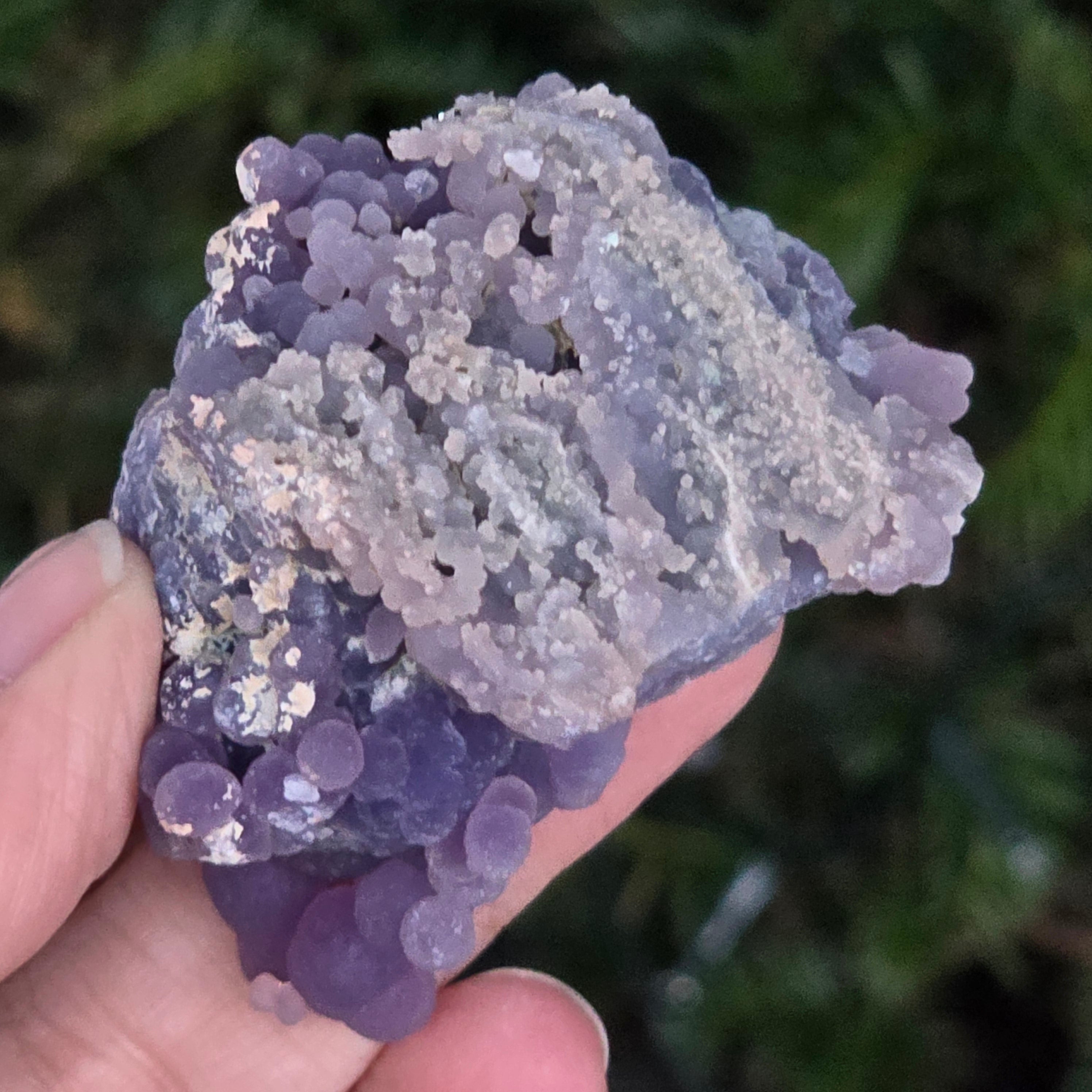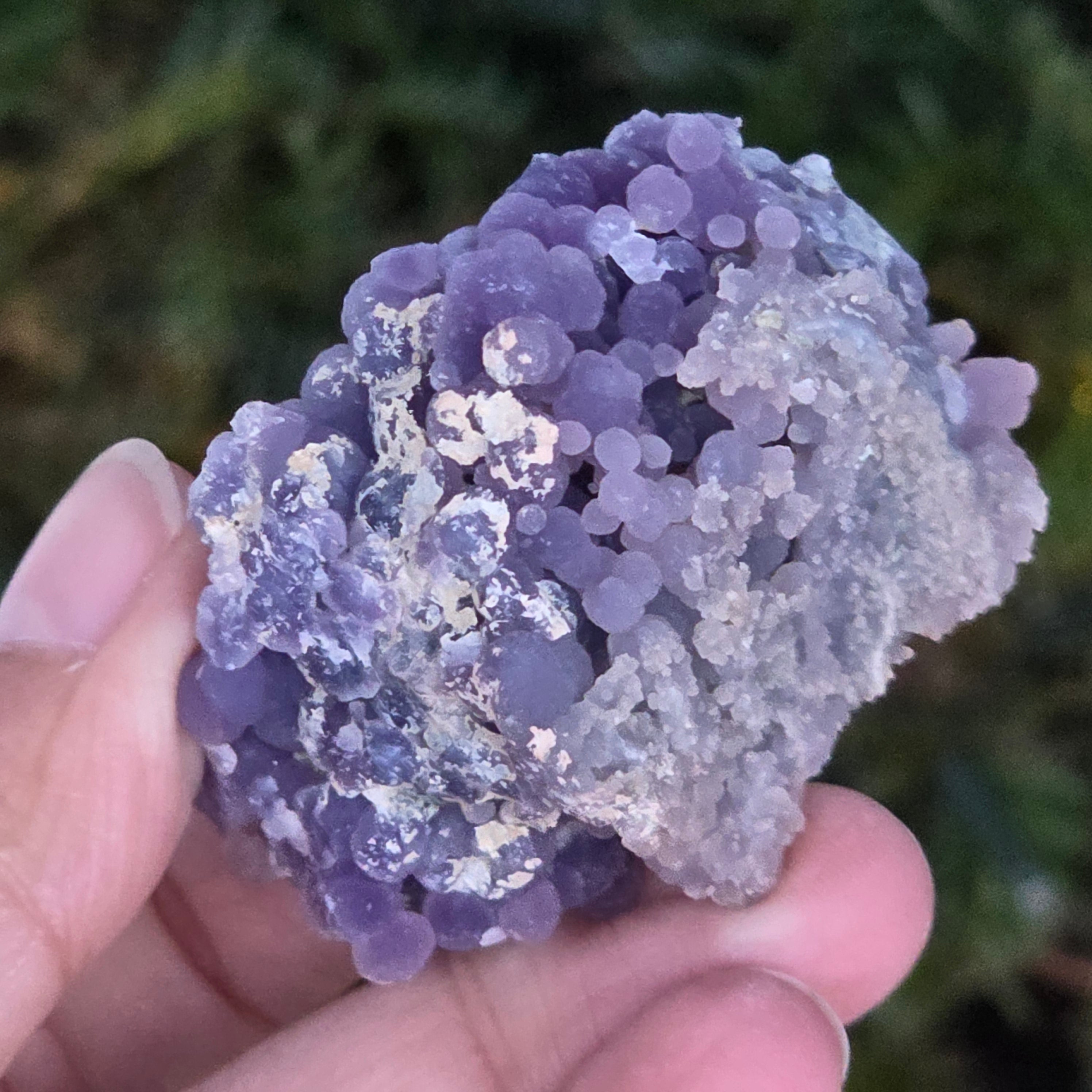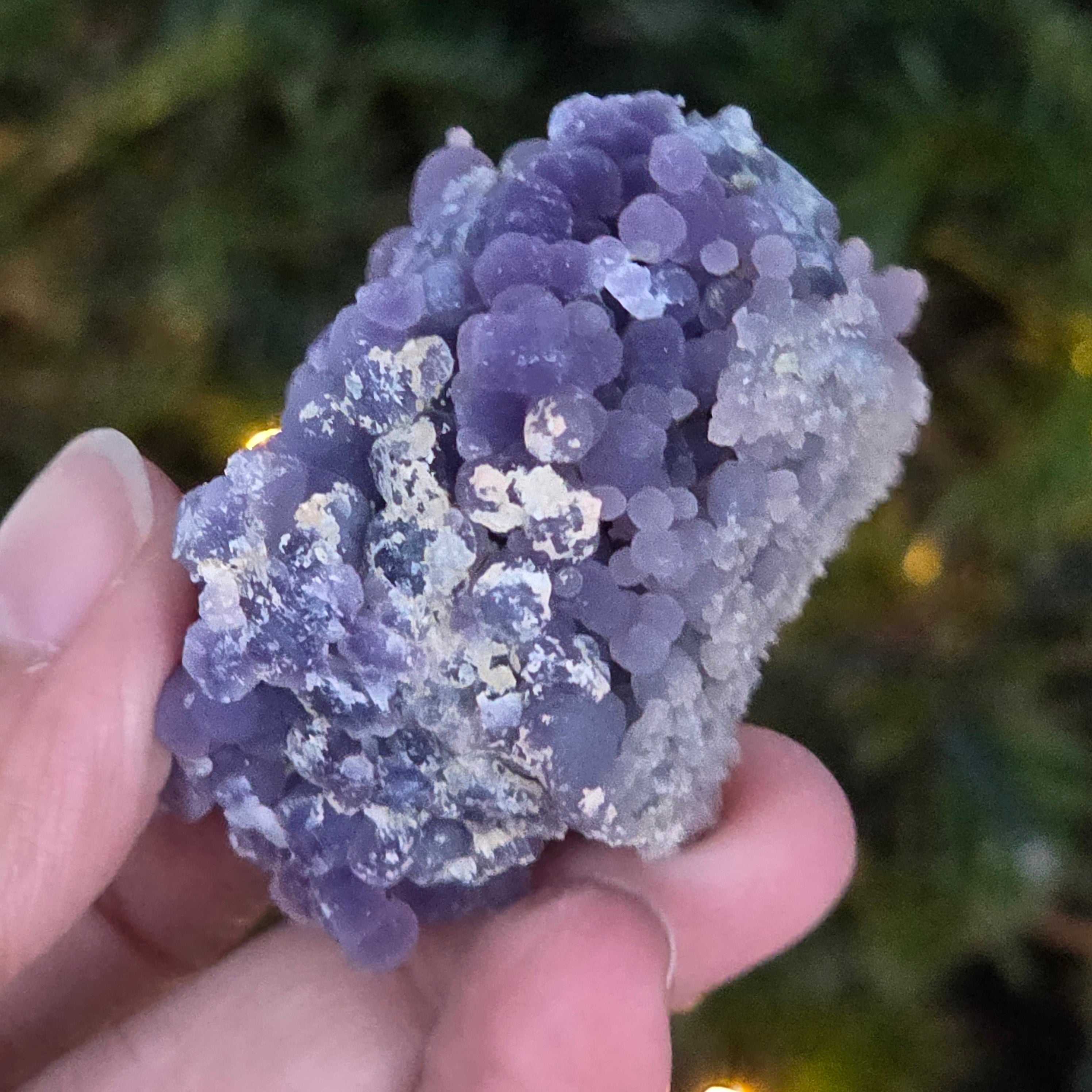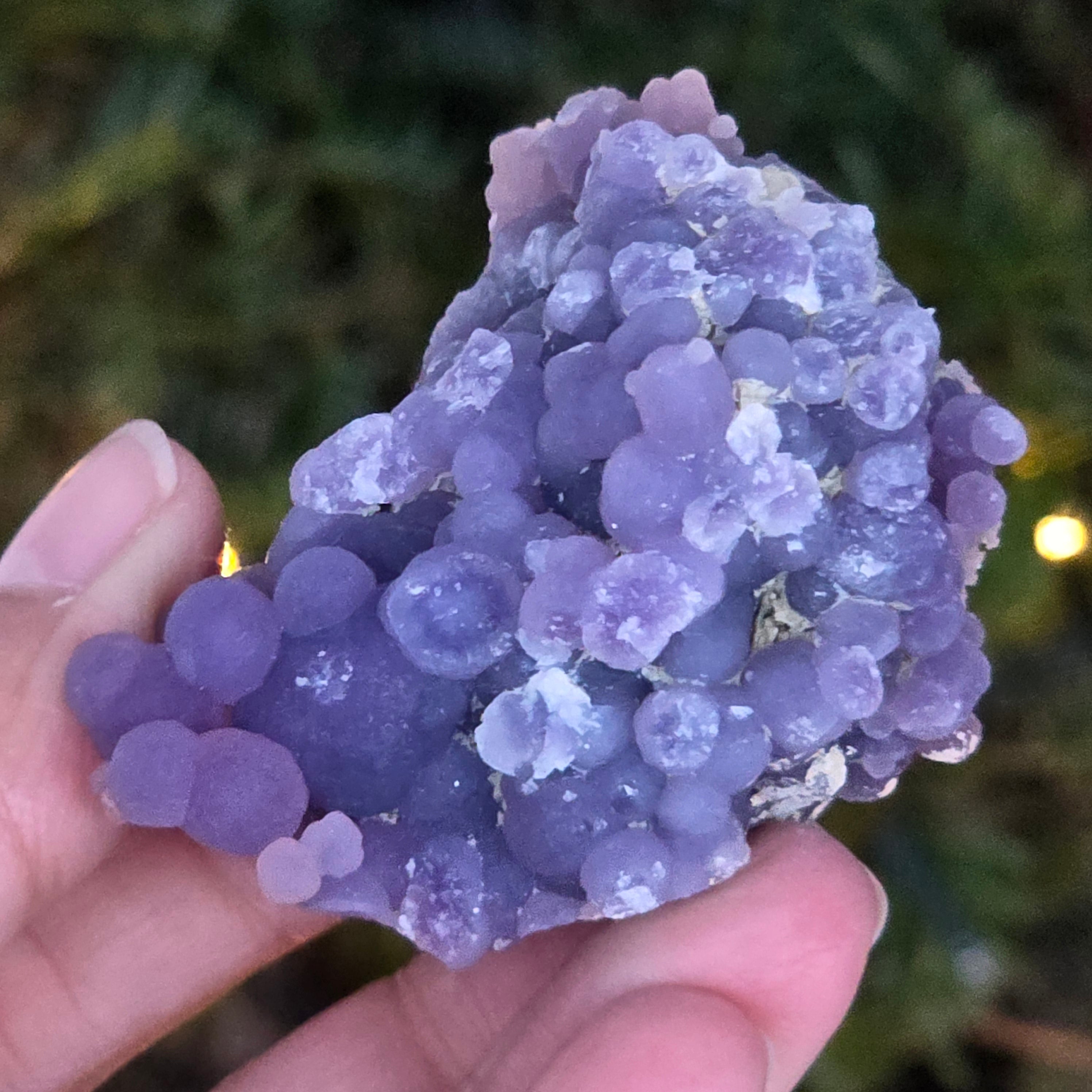 Grape agate forms in the cavities of volcanic rocks, where silica-rich solutions cool and crystallize, creating the distinctive grape-like pattern.