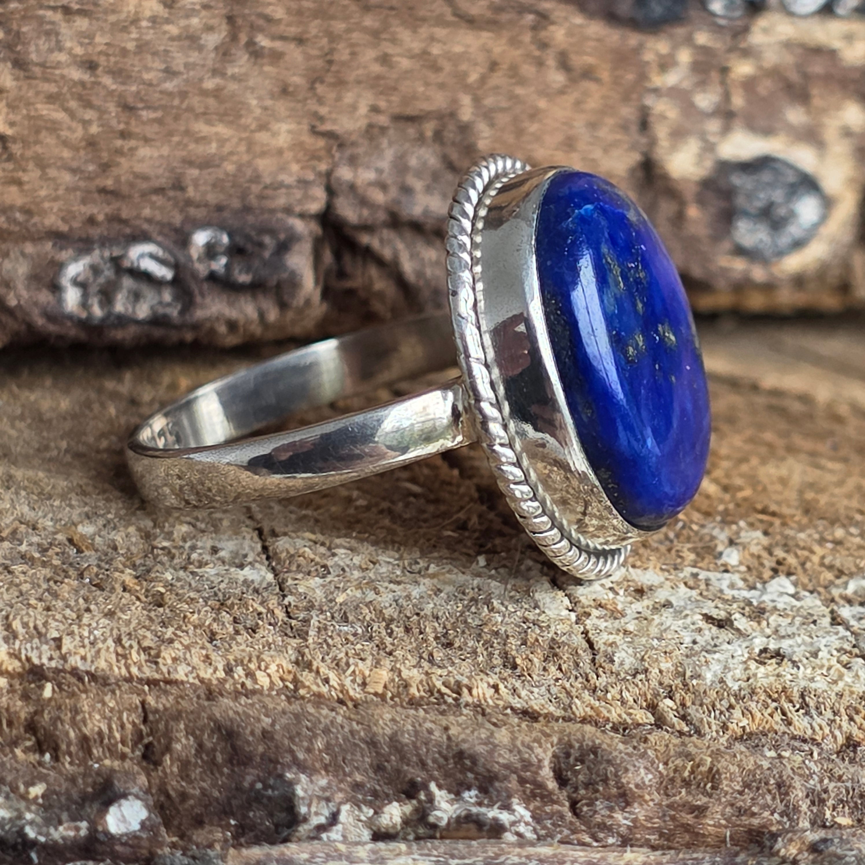 Un inel elegant din argint 925, cu lapis lazuli natural – piatra cerului înstelat și a clarității mentale. Reflexele sale aurii de pirită se împletesc armonios cu albastrul profund al pietrei, într-un design clasic ce radiază rafinament și putere interioară.