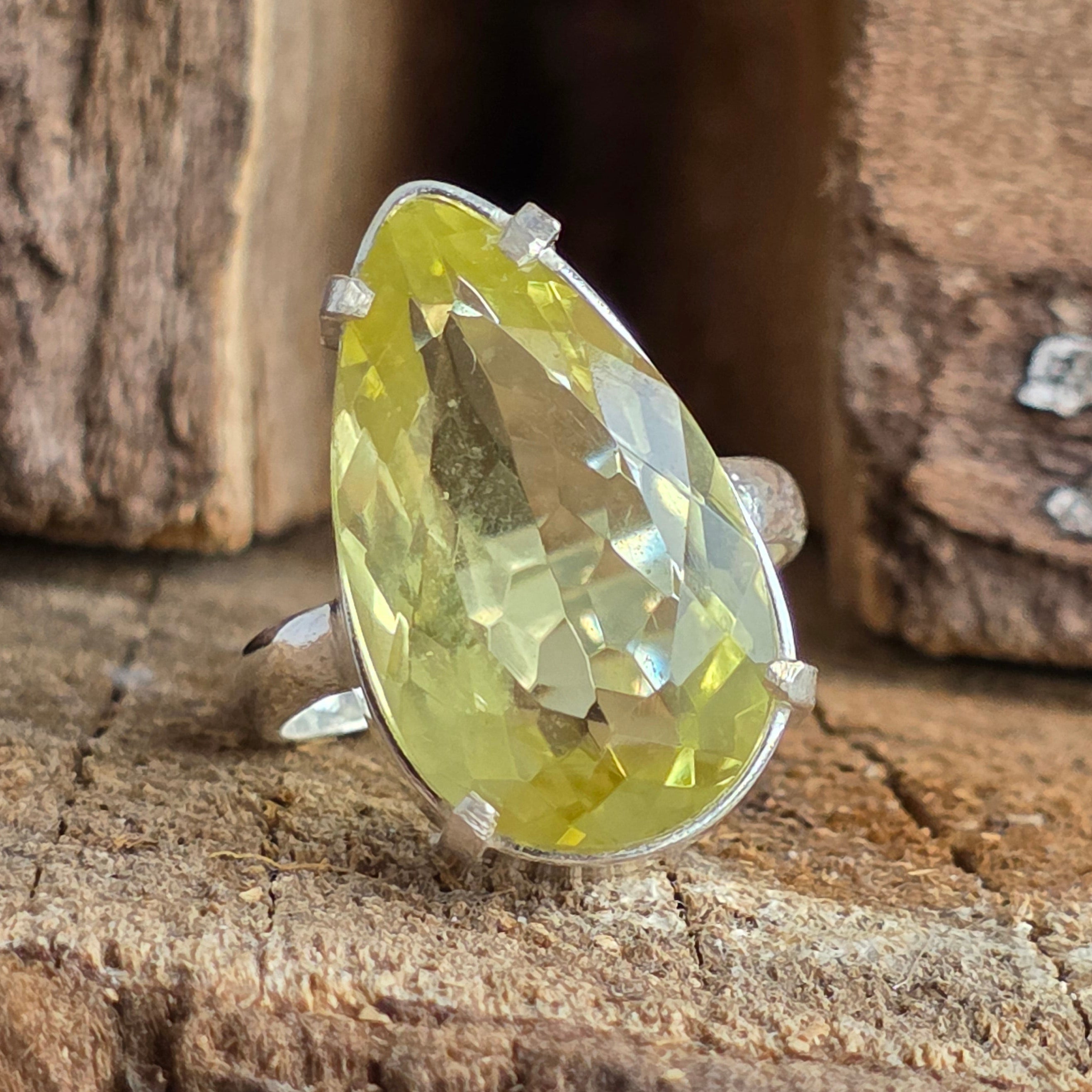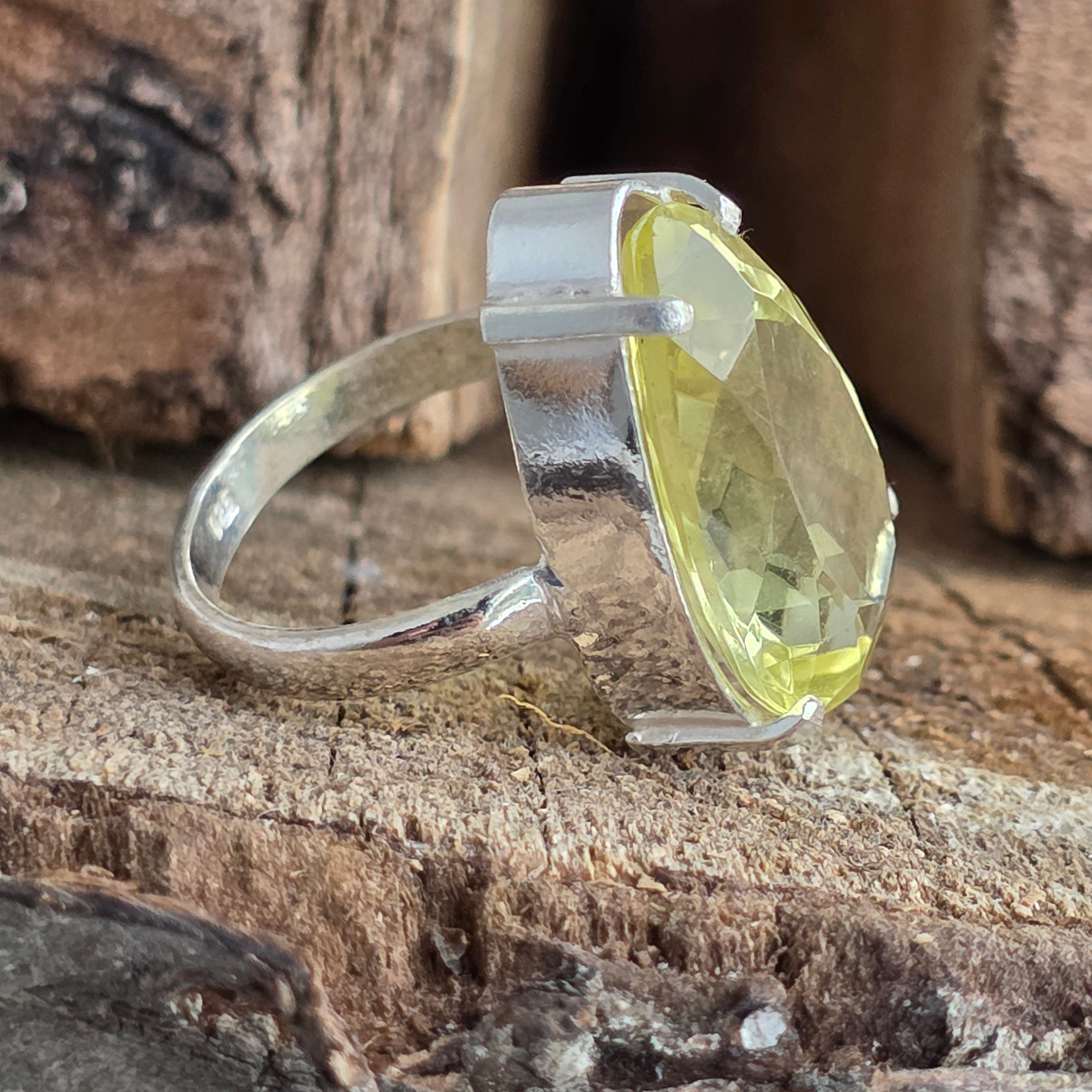 Un inel ce poartă lumina soarelui prinsă în piatră – Lemon Topazul strălucește cu tonuri de aur pal, aducând optimism, claritate și energie pozitivă.