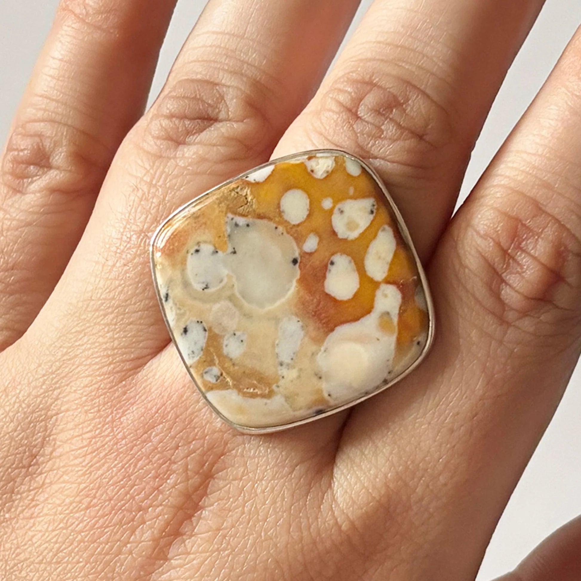 Fiecare inel cu Deerfawn Jasper este unic, o poveste sculptată de timp și de pământ. Poartă-l ca simbol al ancorării, al încrederii tăcute și al frumuseții care se naște din simplitate. 🤎
