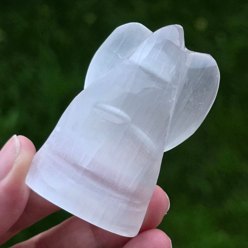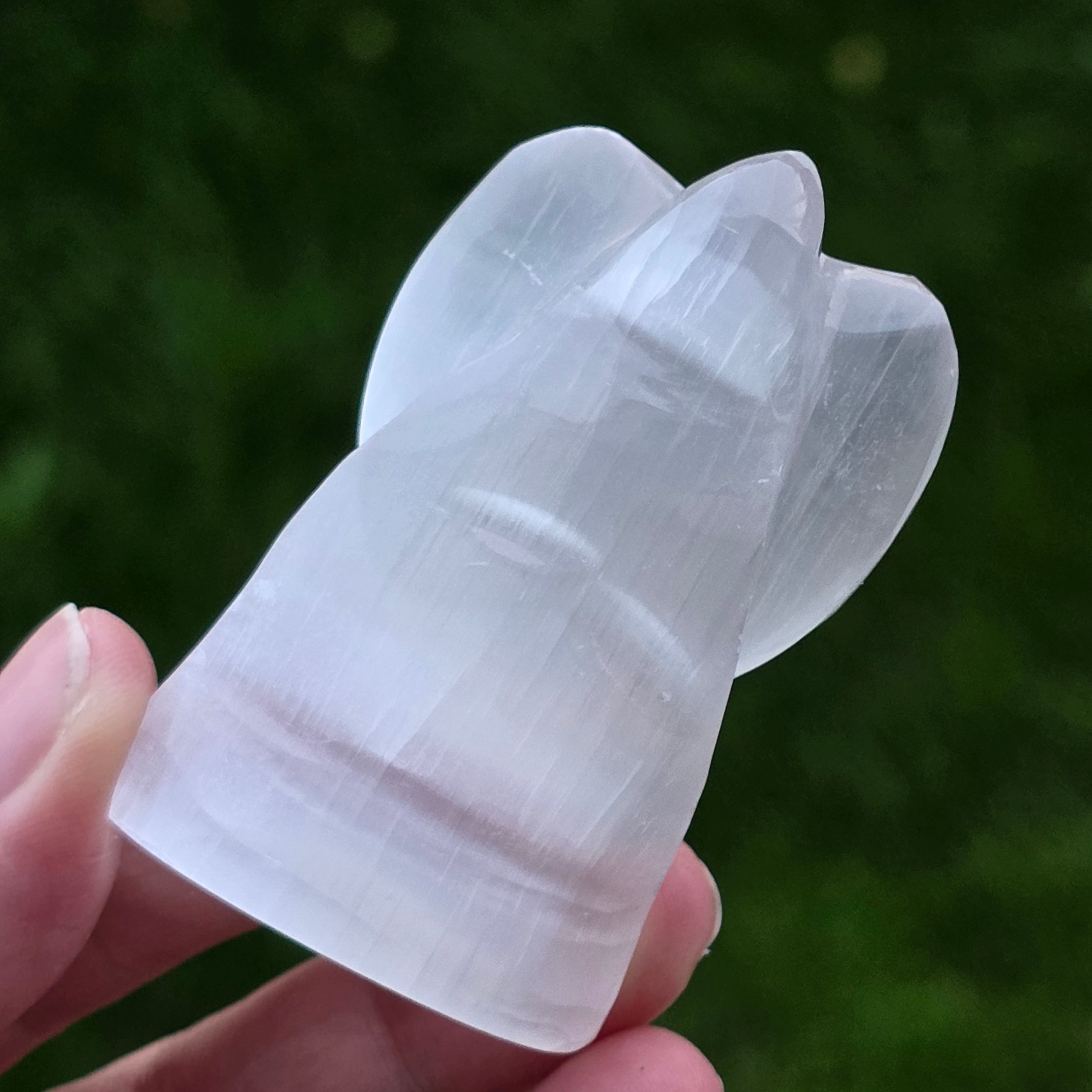Îngerul din Selenit este una dintre cele mai delicate și luminoase sculpturi ce pot fi adăugate într-o colecție de minerale. Selenitul, cunoscut pentru strălucirea sa filigranată, aproape eterică, este un cristal care pare mereu să păstreze în interior o fărâmă de lumină. În această formă de înger, piatra devine mai mult decât un mineral: devine un simbol al protecției, al clarității și al păcii interioare.