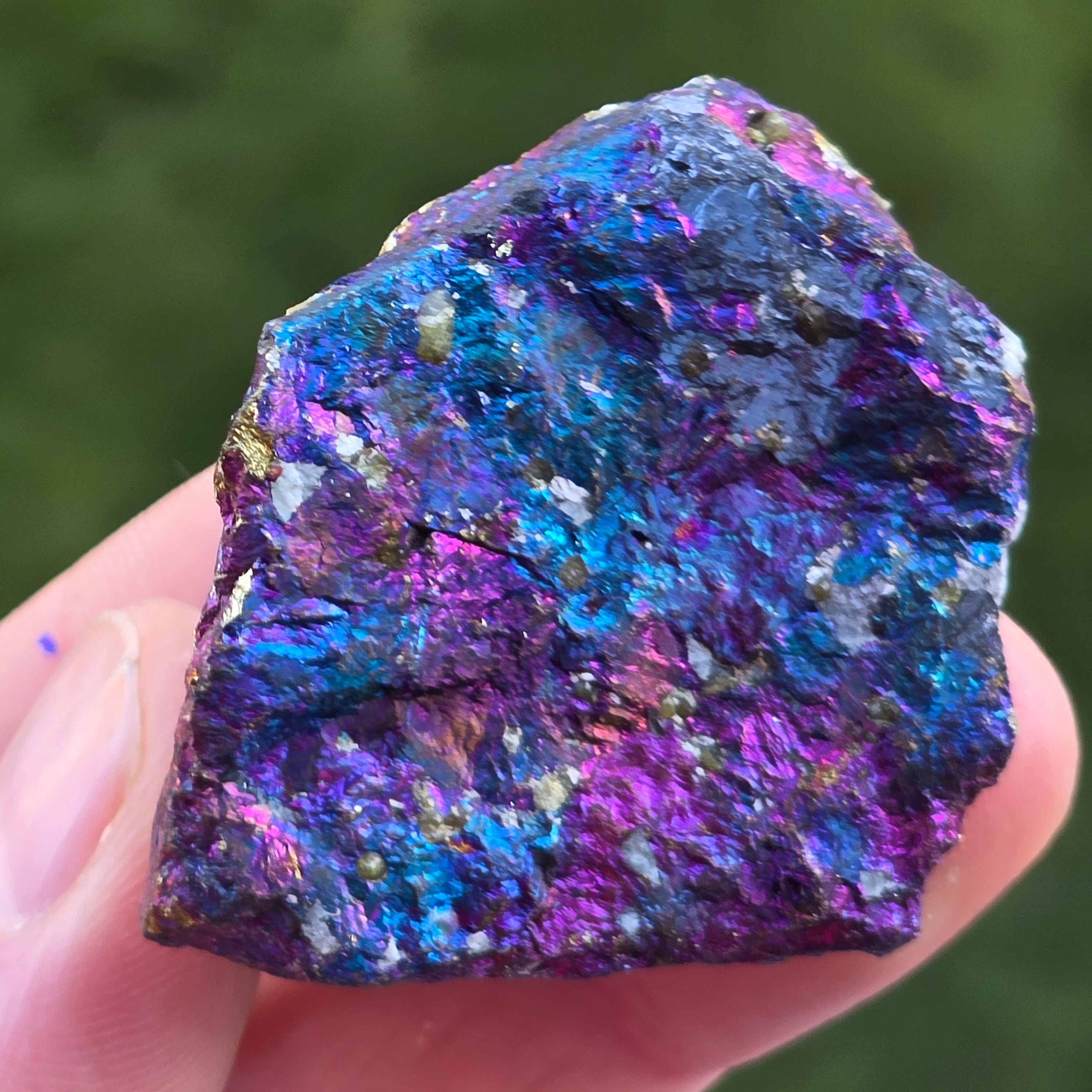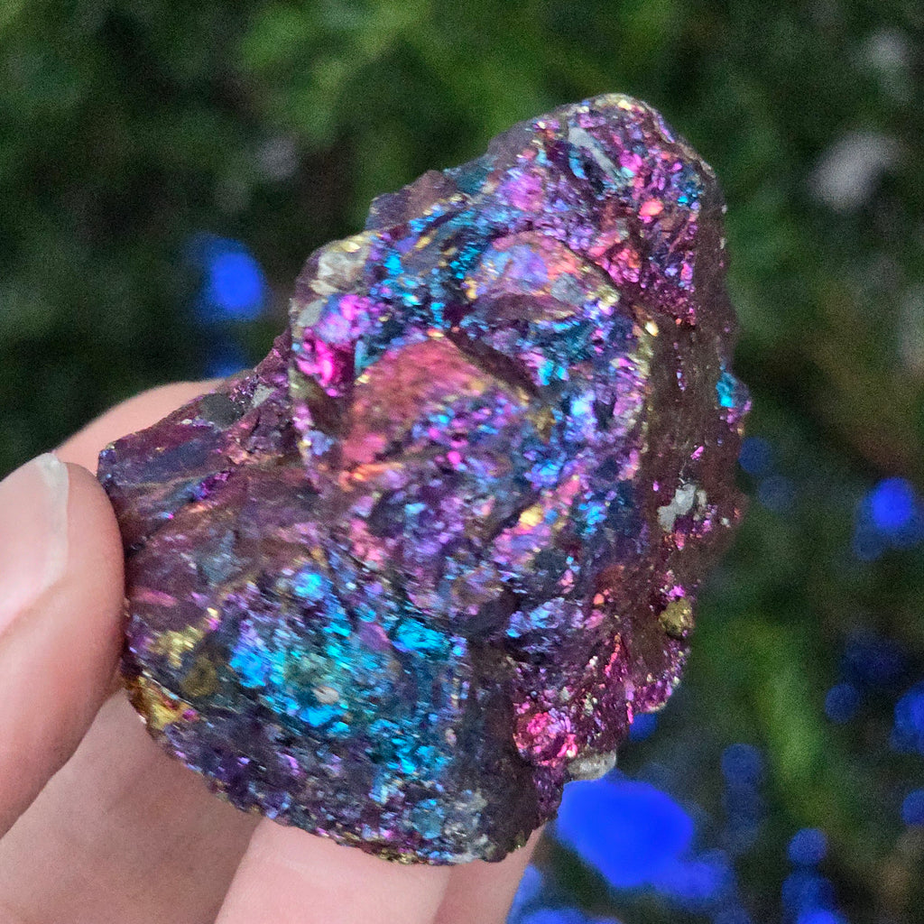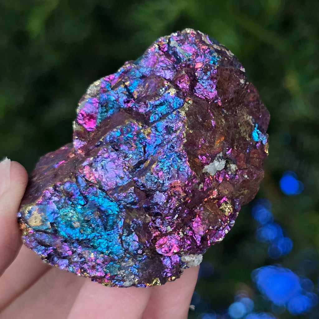 Blue and purple chalcopyrite are associated with spiritual growth, intuition, and connecting with higher energies. It is believed to help calm the mind and stimulate creativity. Its iridescent shades are symbolically linked to balance and harmony.