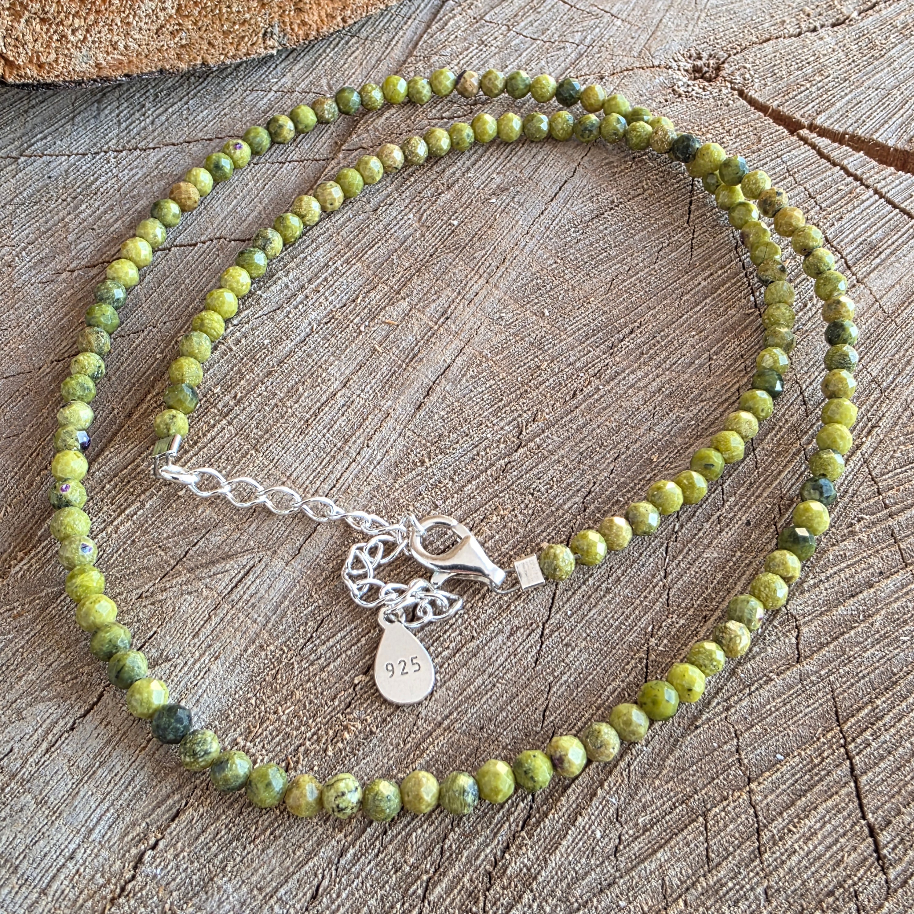 Materials: 3 mm faceted natural serpentine, 925 silver