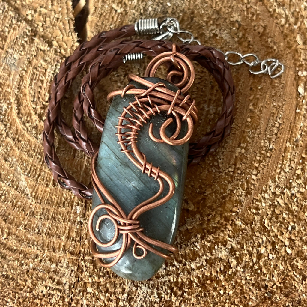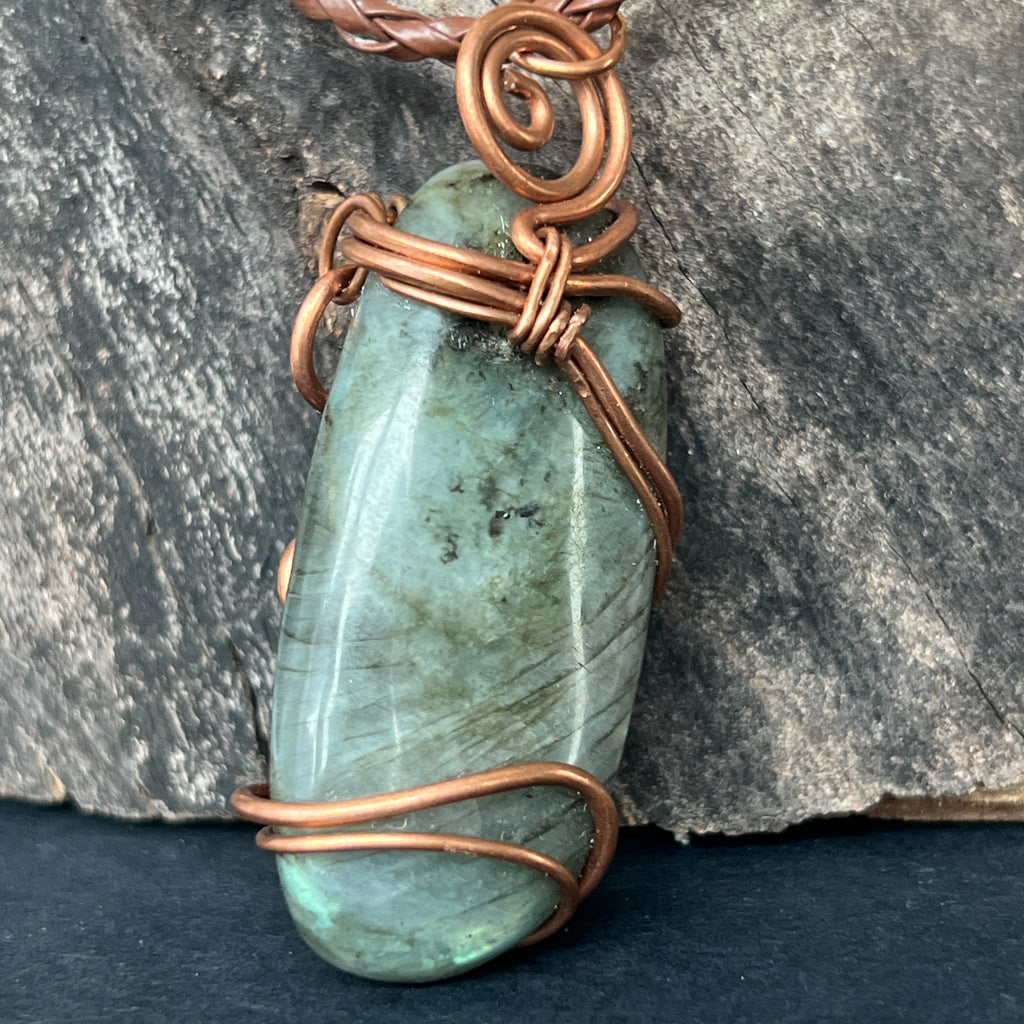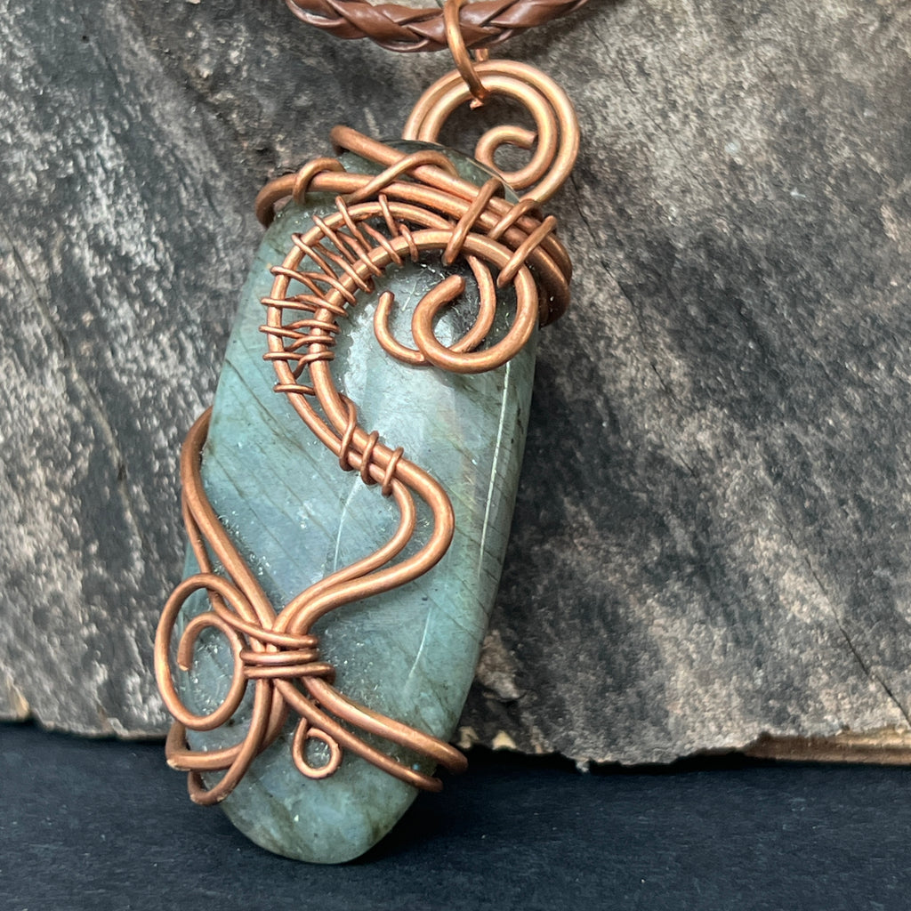 Description - Labradorite copper pendant necklace/artistic wire model 3
