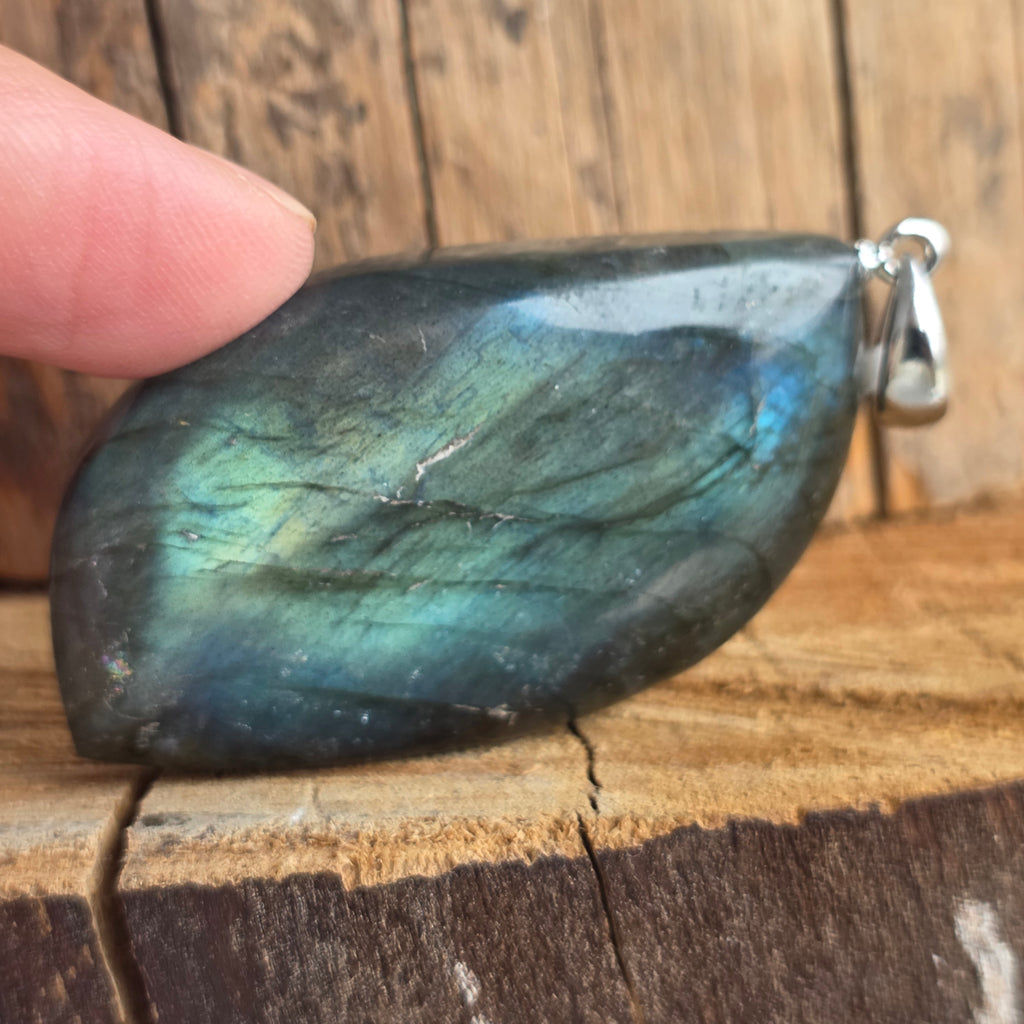 Labradorite is a semi-precious stone with play of colors that change depending on the viewing angle.