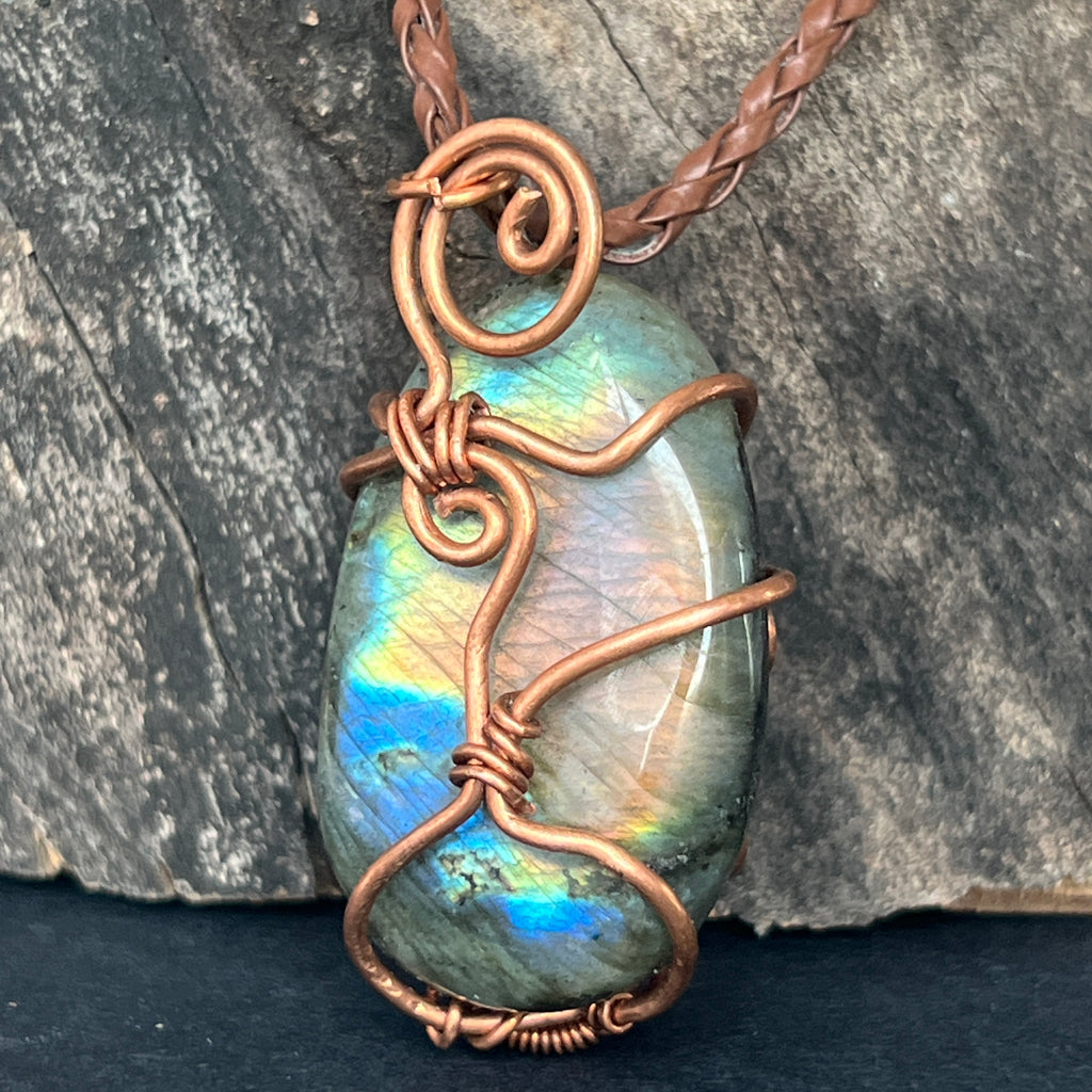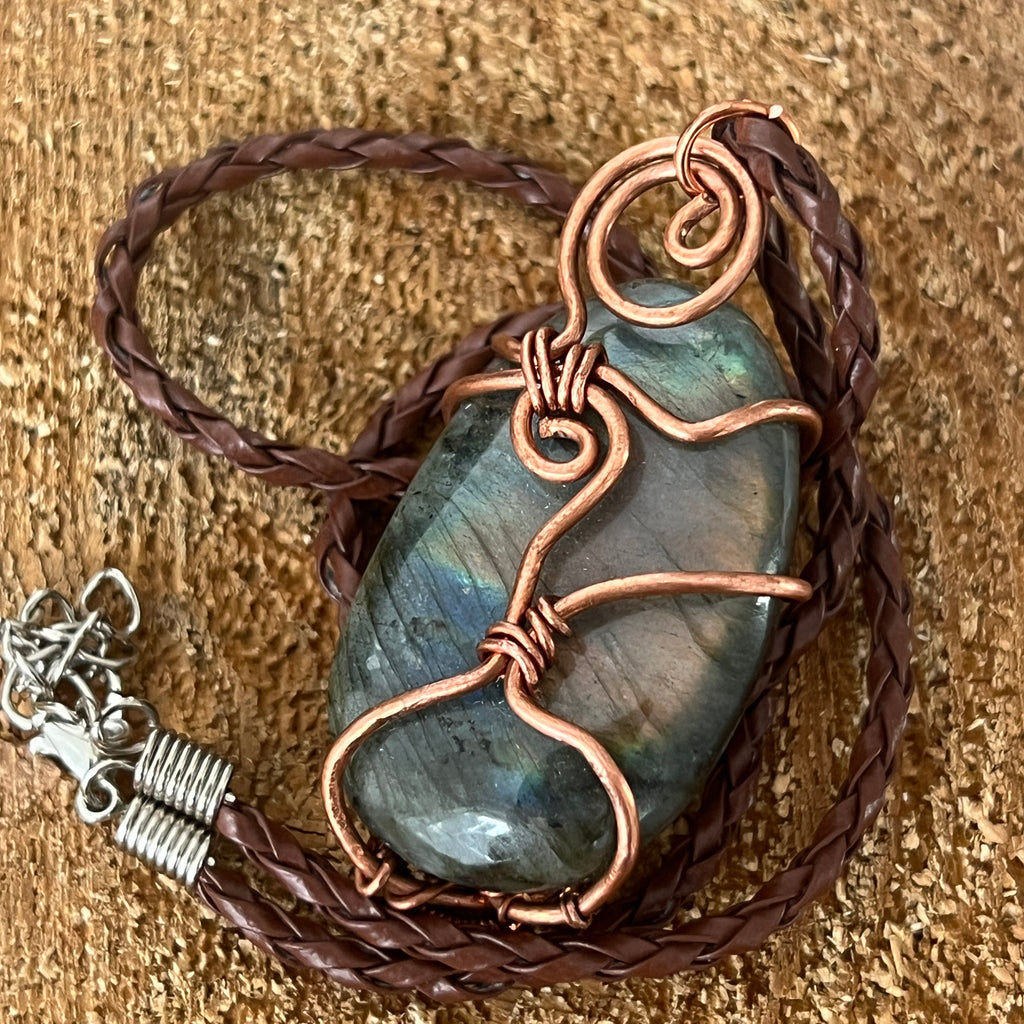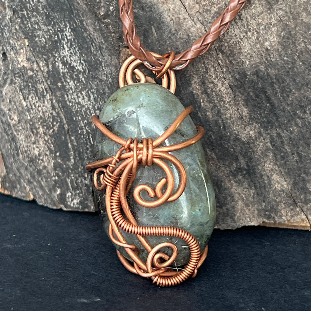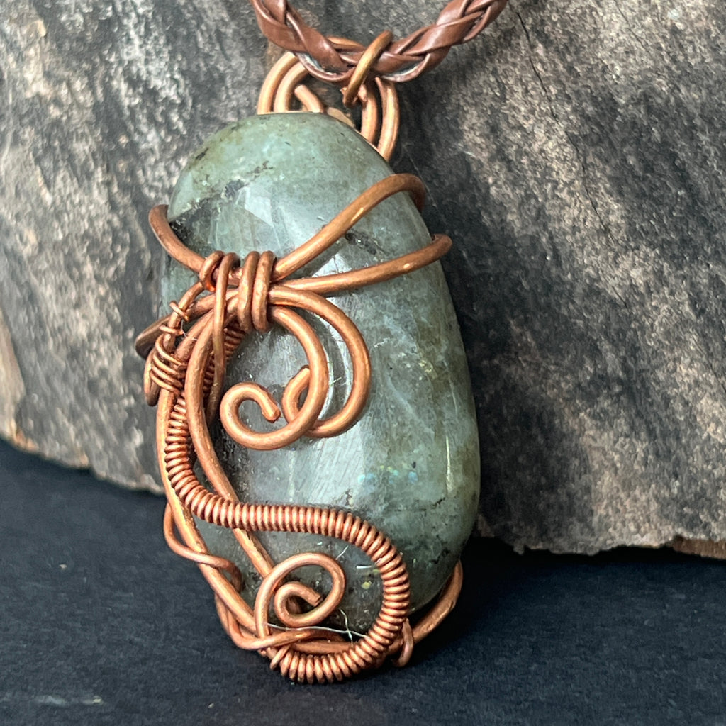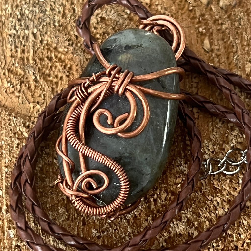 Description - Labradorite pendant necklace in copper/artistic wire model 2