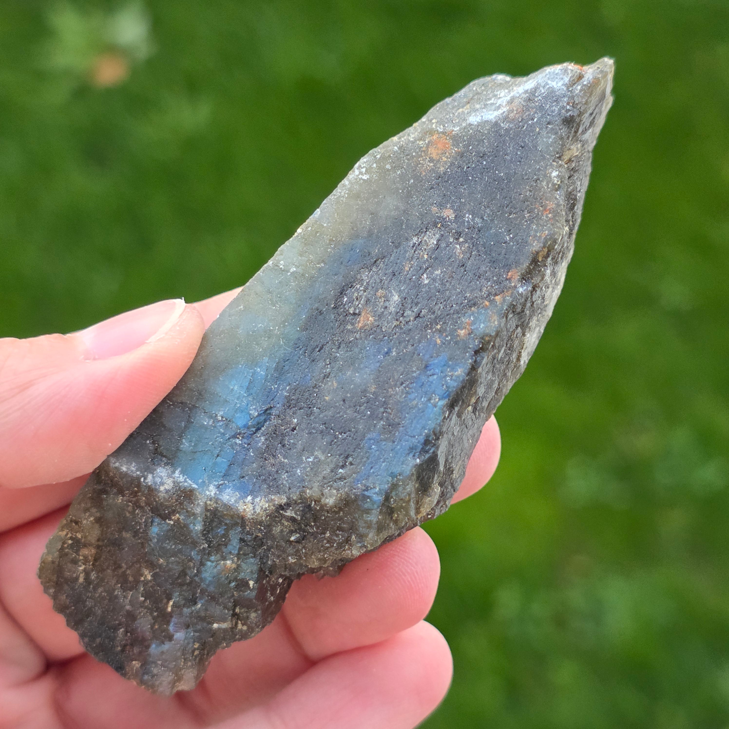 Labradorite is a semi-precious stone with plays of colors that change depending on the angle of view.