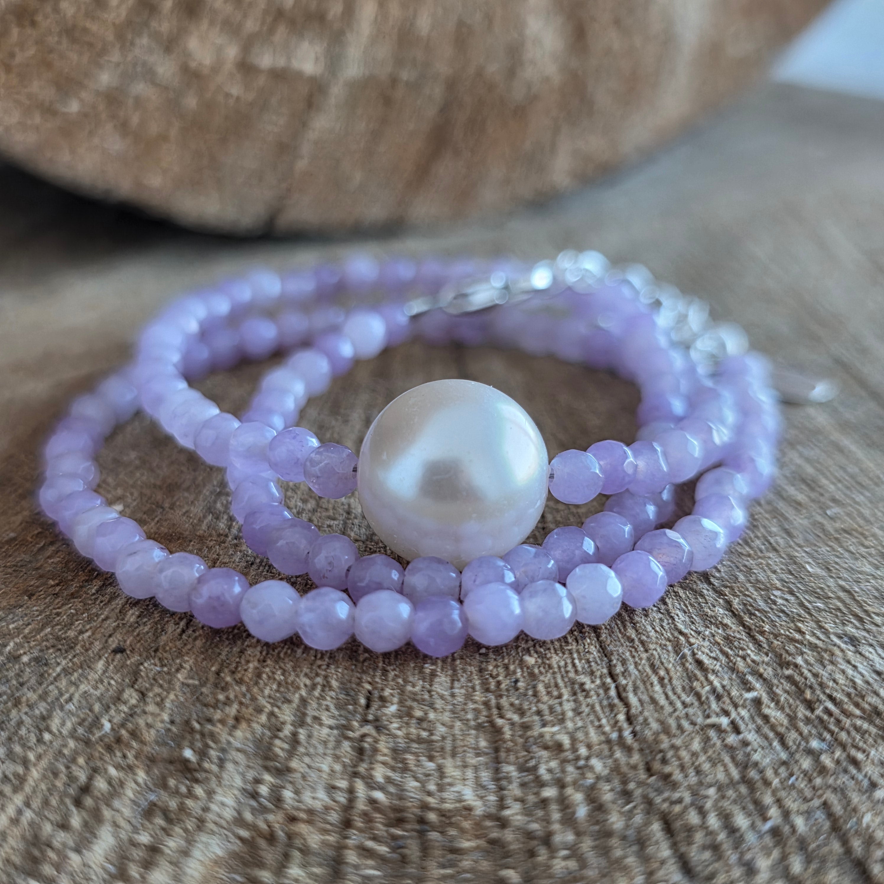 The details of the 2 mm faceted aventurine add a touch of finesse and dynamism, while the 2 cm natural pearl becomes the luminous centerpiece of the composition — a symbol of purity and the balance between simplicity and refinement. Together, the shapes and textures create a piece of jewelry that inspires calm, grace, and serene abundance.