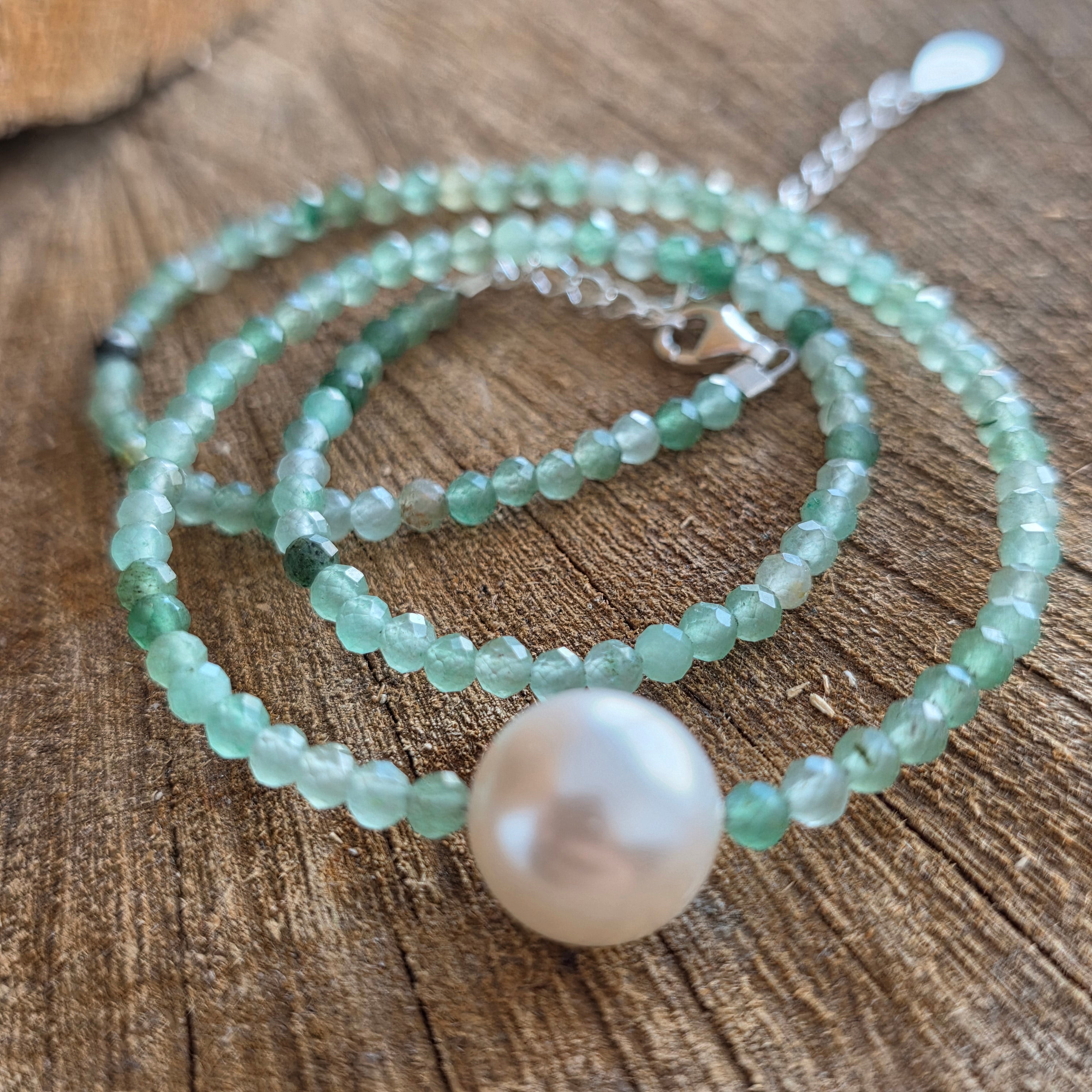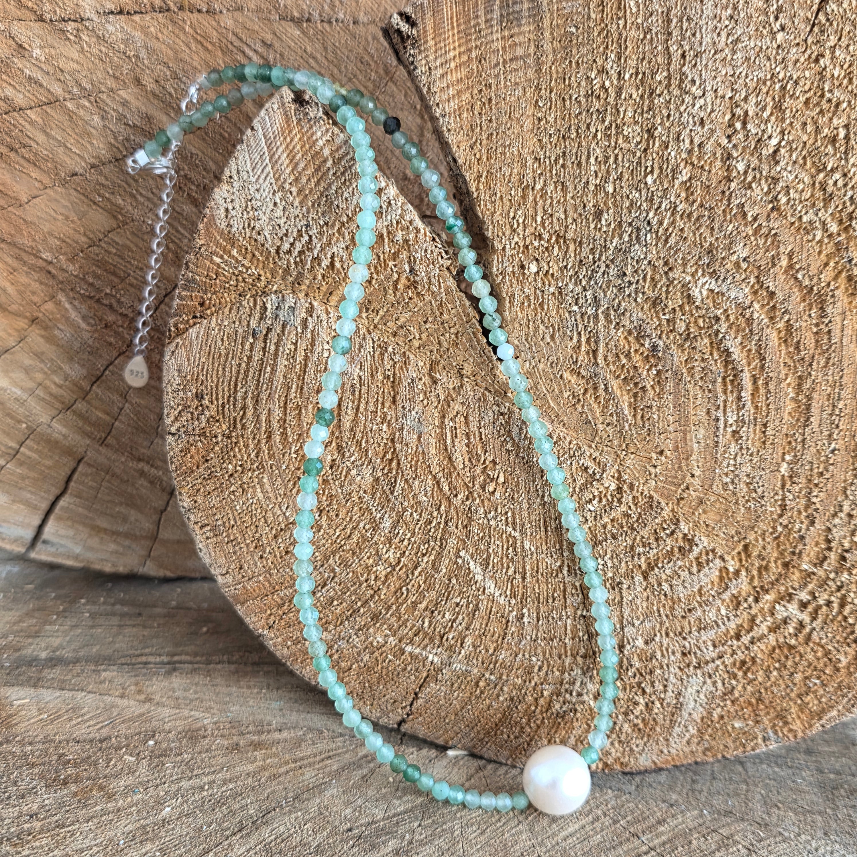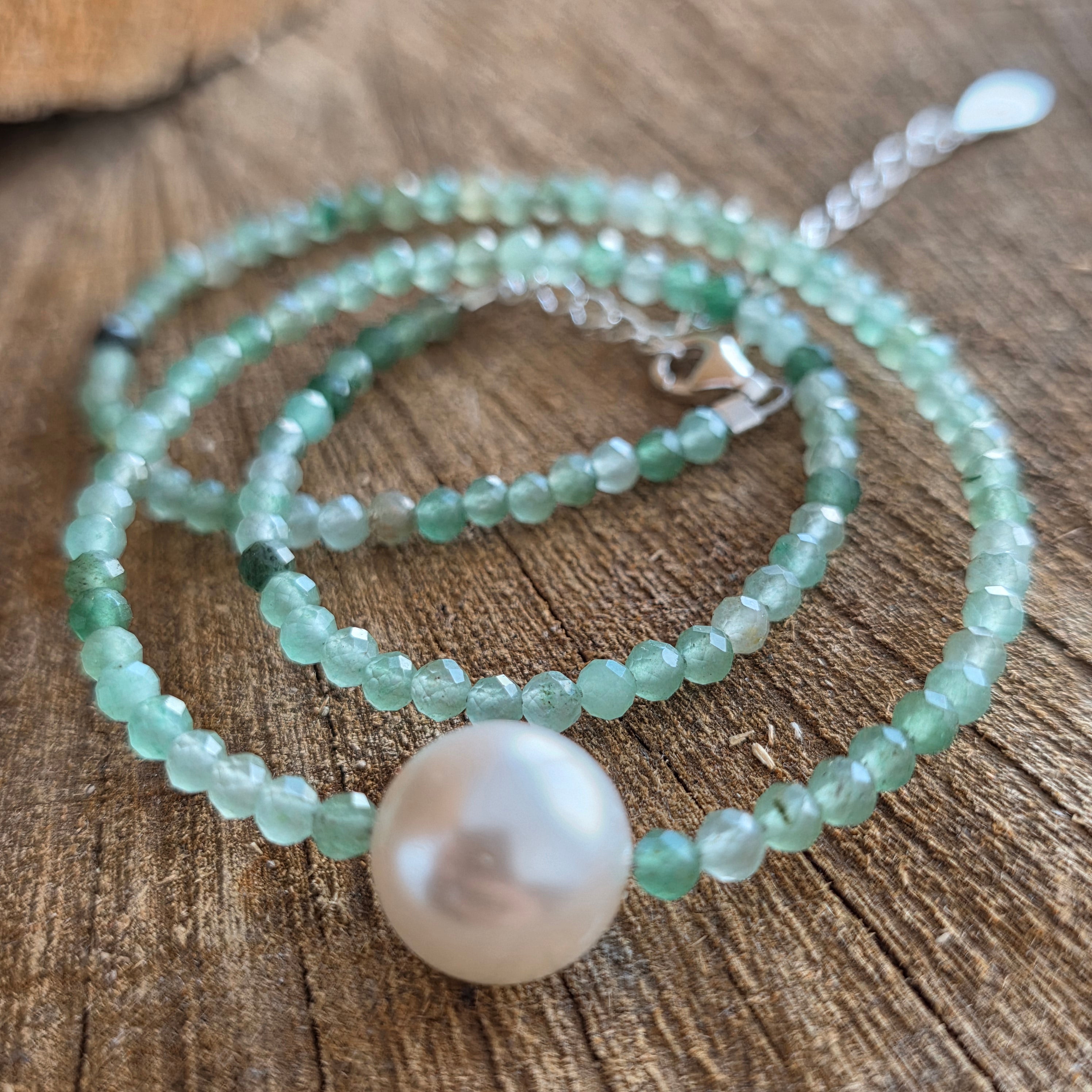 A necklace that carries the energy of freshness and serene luck, like the light dancing on morning leaves. Aventurine, with its shades of calm green and subtle sparkles, is known as the stone of luck, abundance, and trust in life.