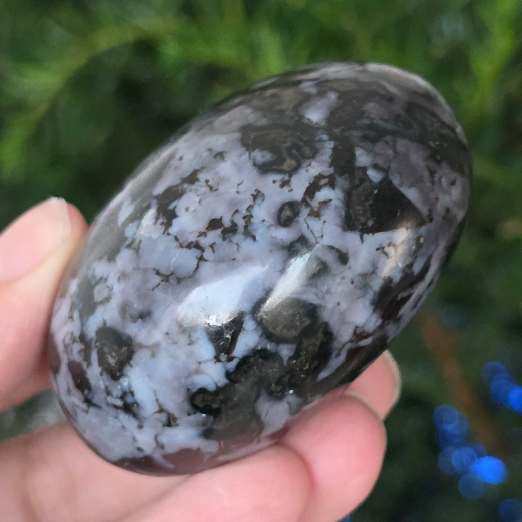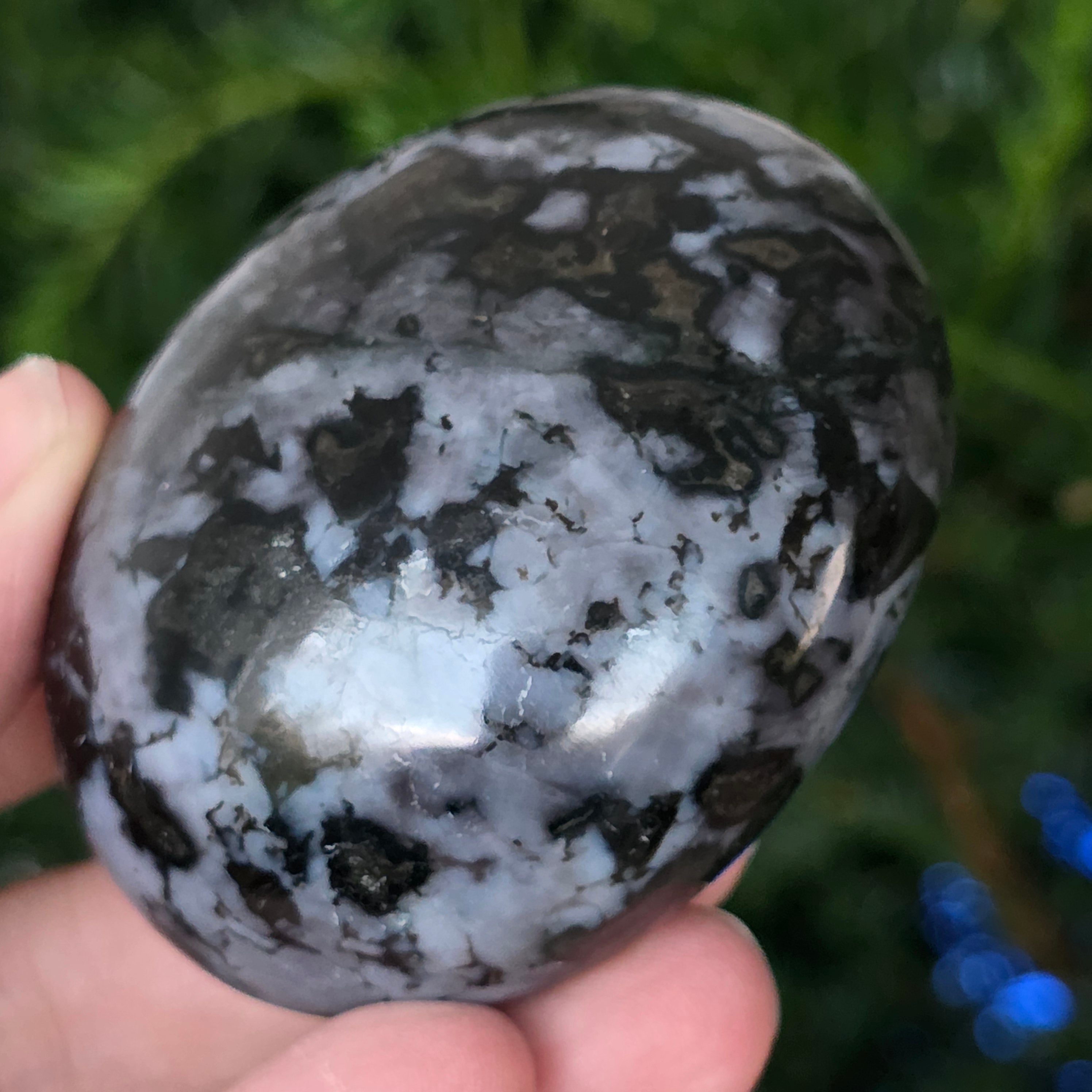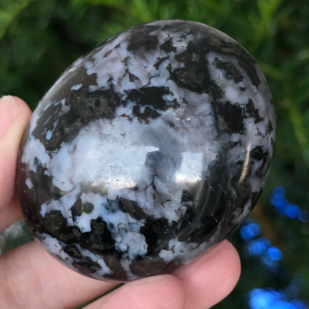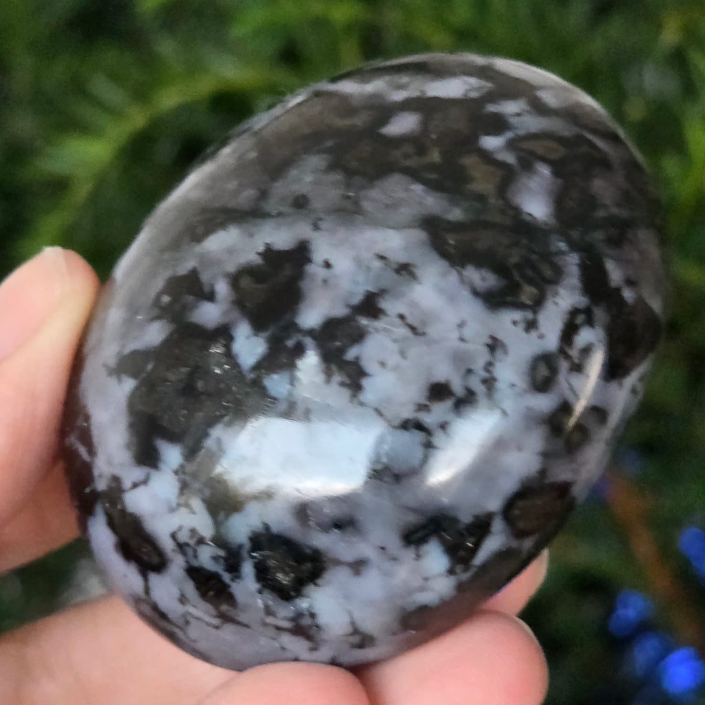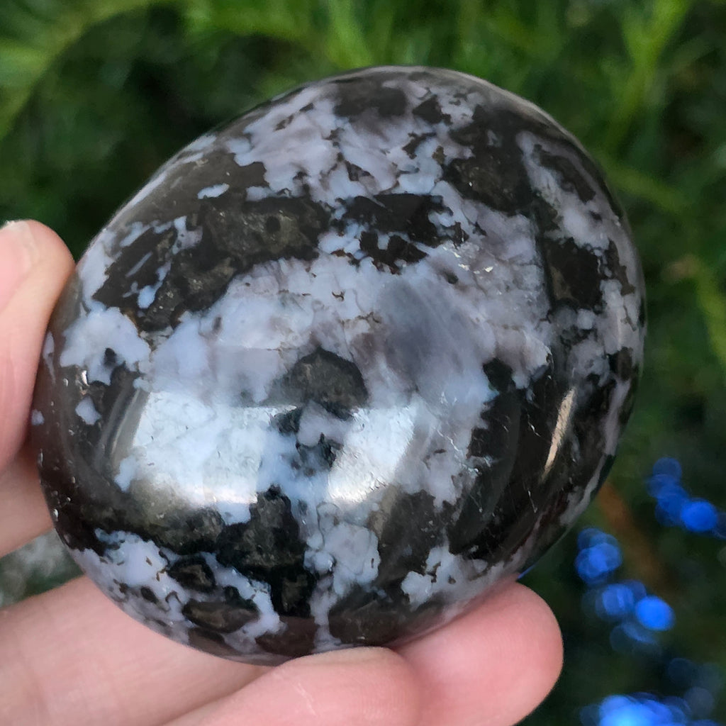 Merlinite is a rare and fascinating semi-precious stone, recognized for its combination of contrasting black and white colors, which gives it a unique appearance. It is considered a variety of dendritic opal or a combination of quartz and other minerals, and its complex structure makes it valued both for its beauty and its alleged energetic properties. Merlinite is known in the world of crystal healing for its mystical energies and its association with intuition, clairvoyance, and spiritual knowledge.