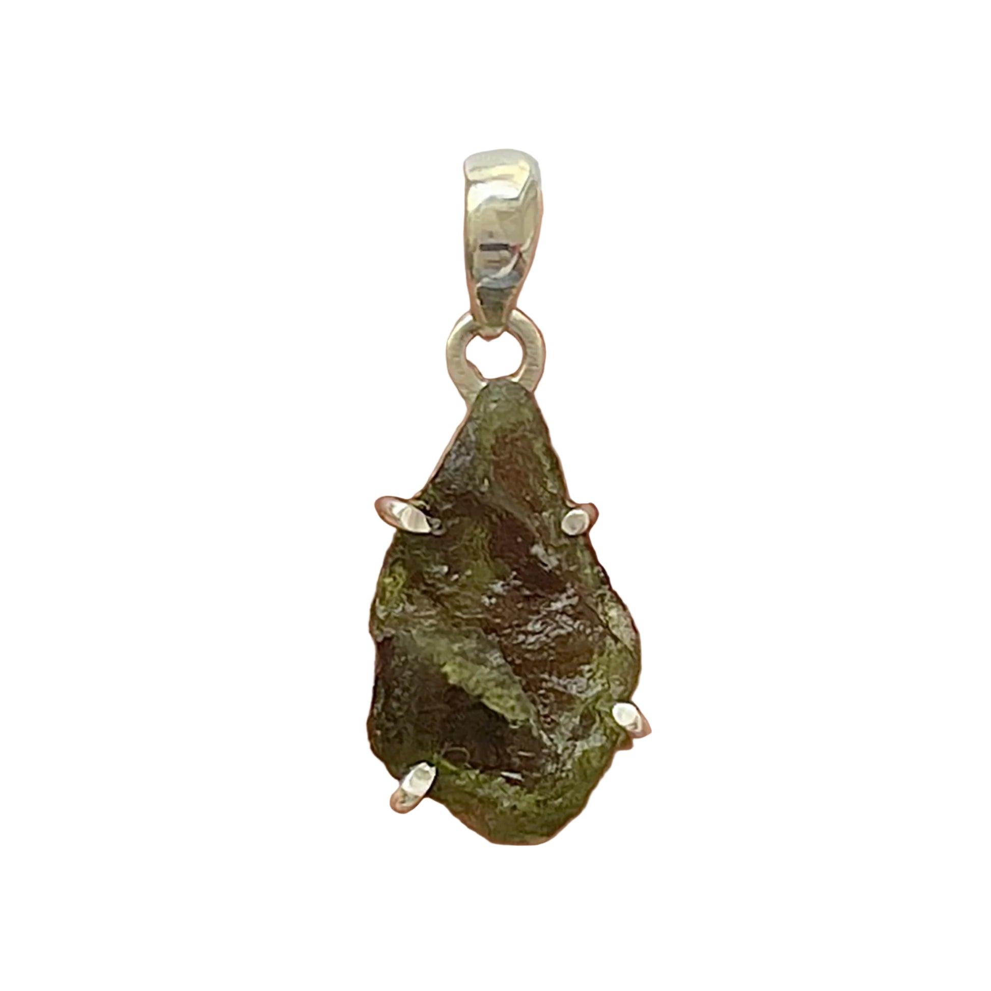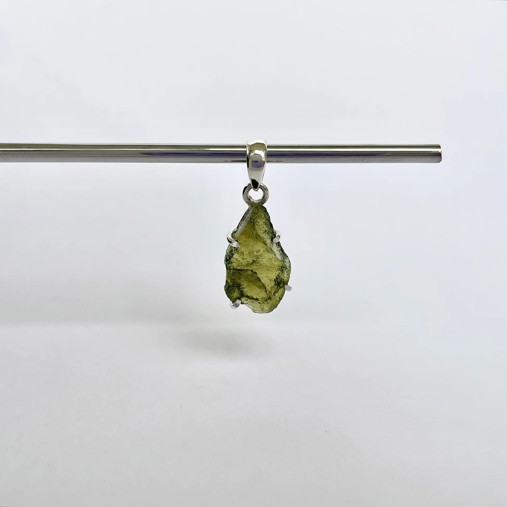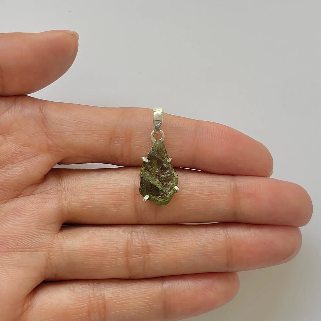 A rare and authentic pendant, with Moldavit gross, minimalist mounted in 925 silver to highlight its natural form.