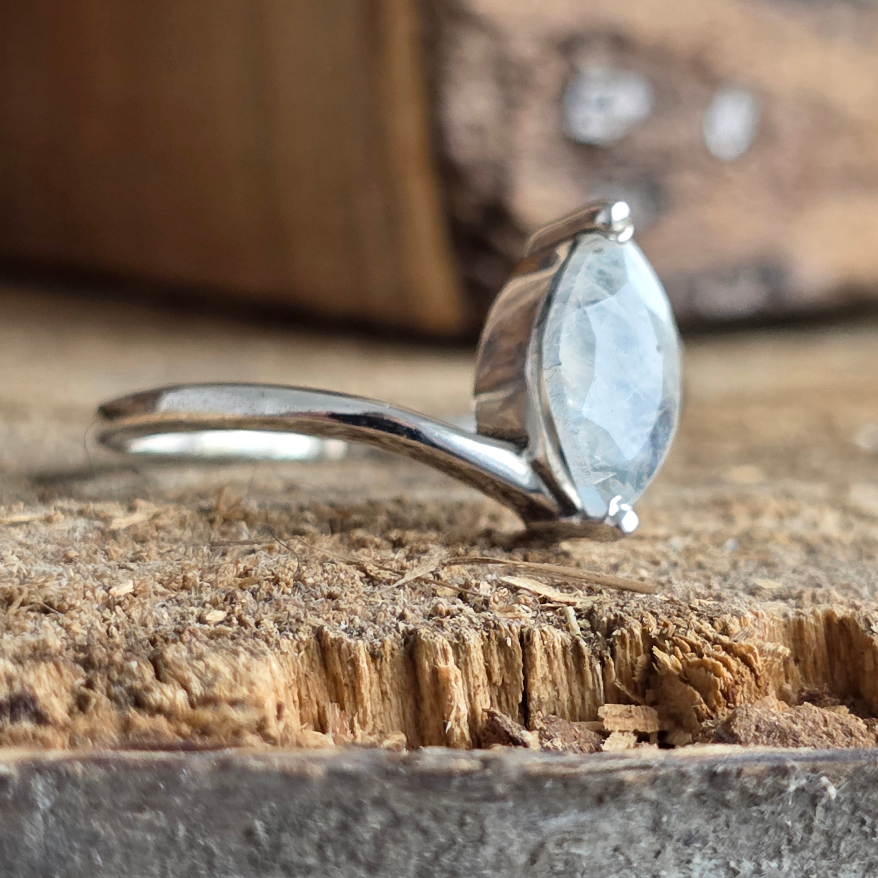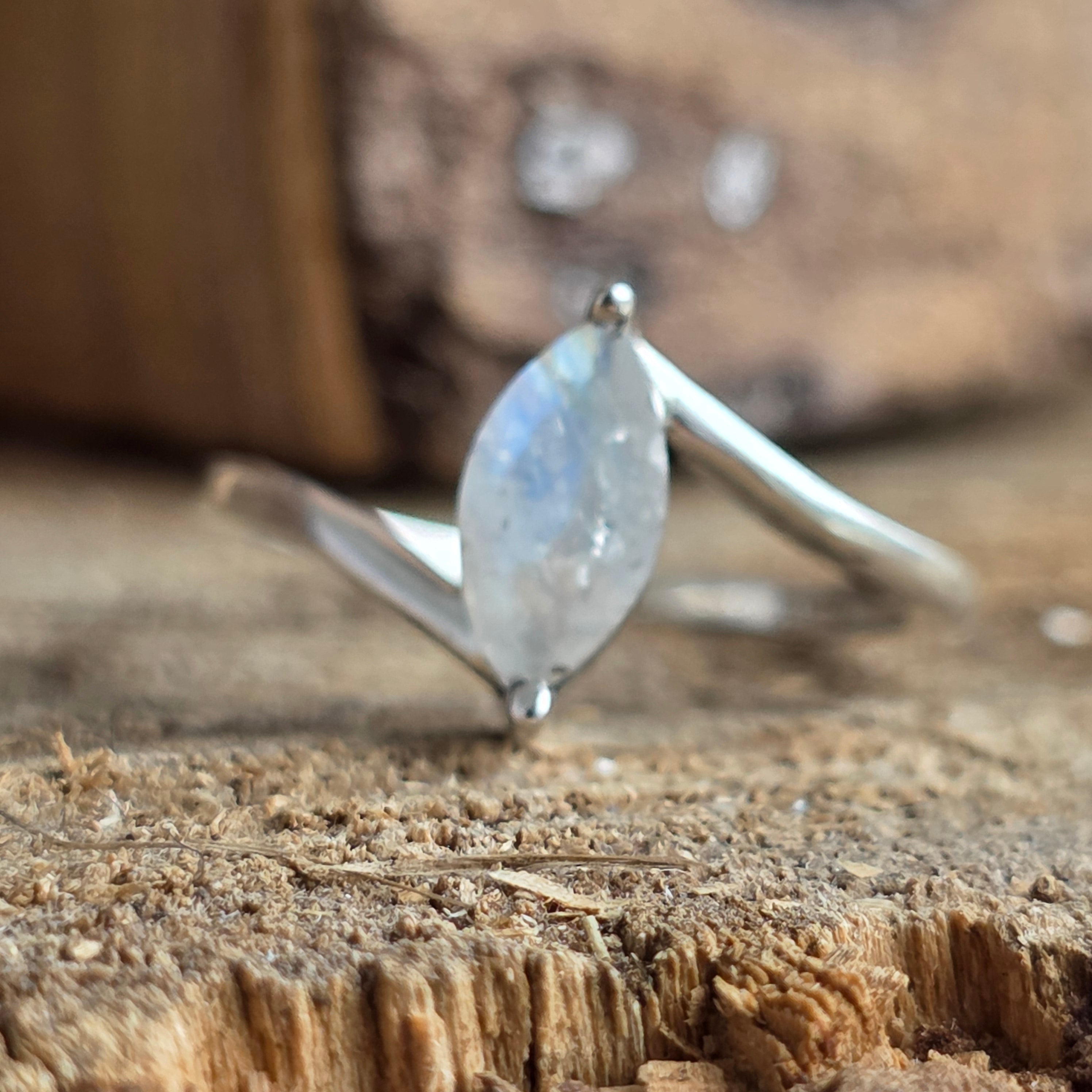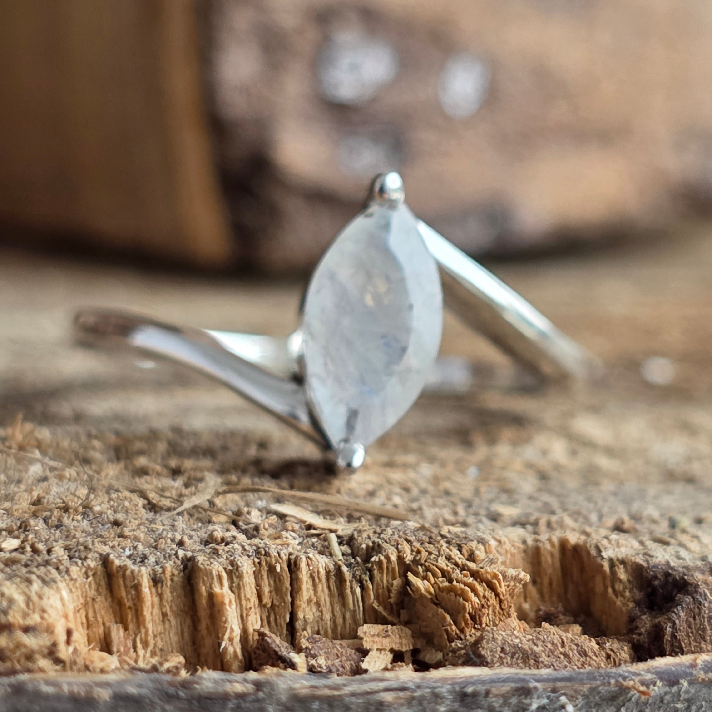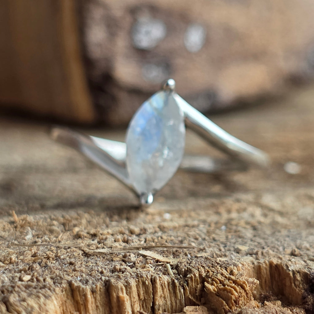 With opalescent reflections that seem detached from liquid light, this 925 silver ring highlights the mysterious grace of natural moonstone.