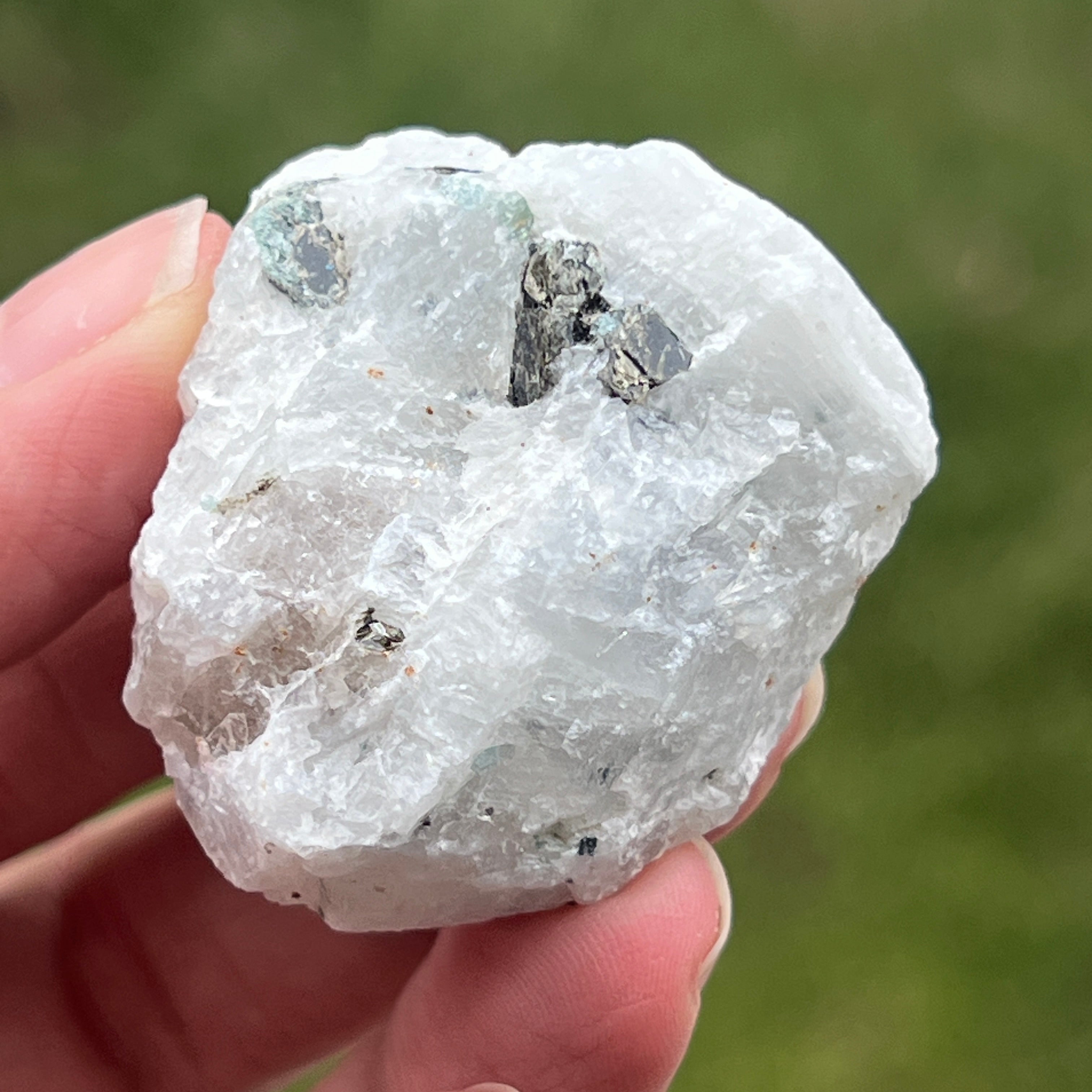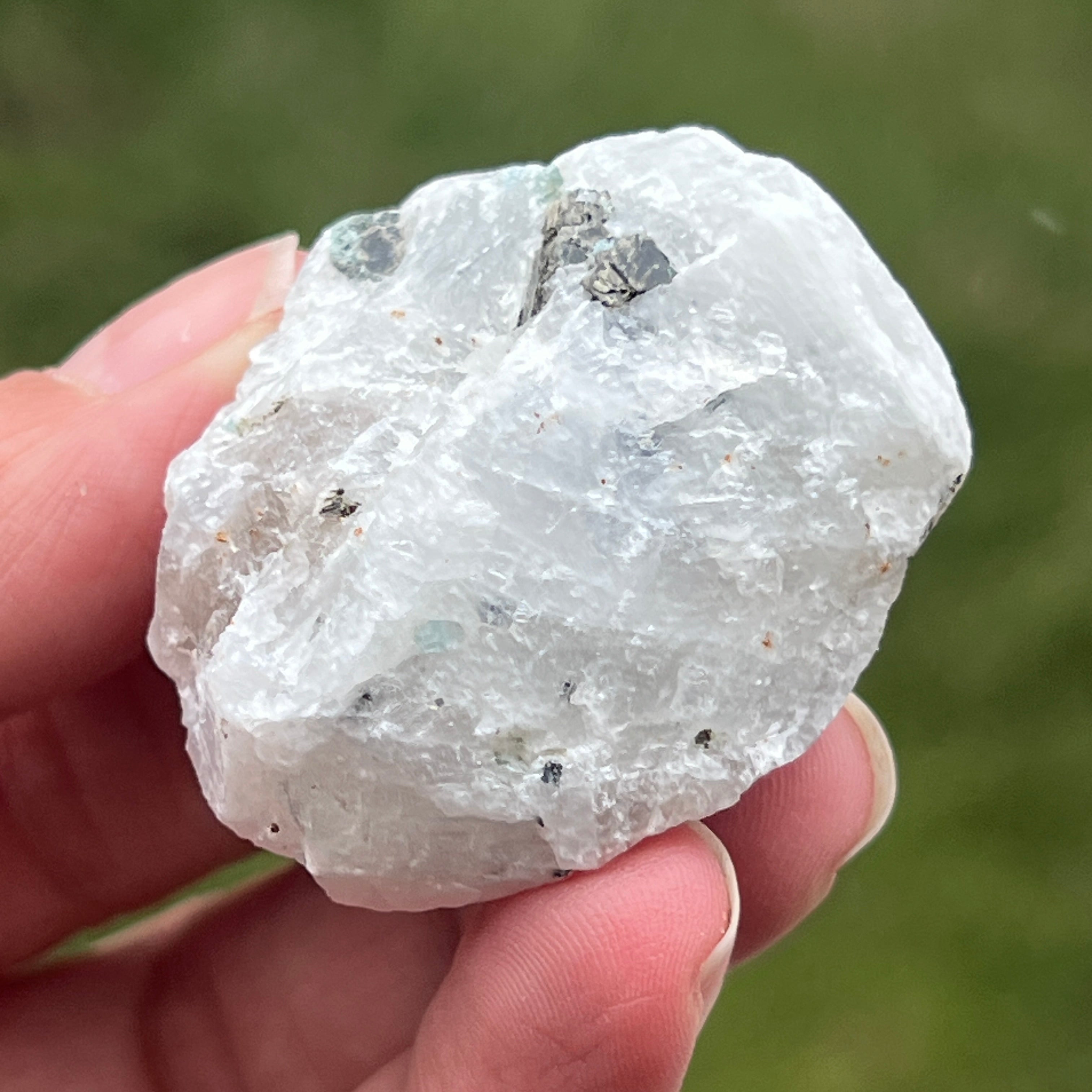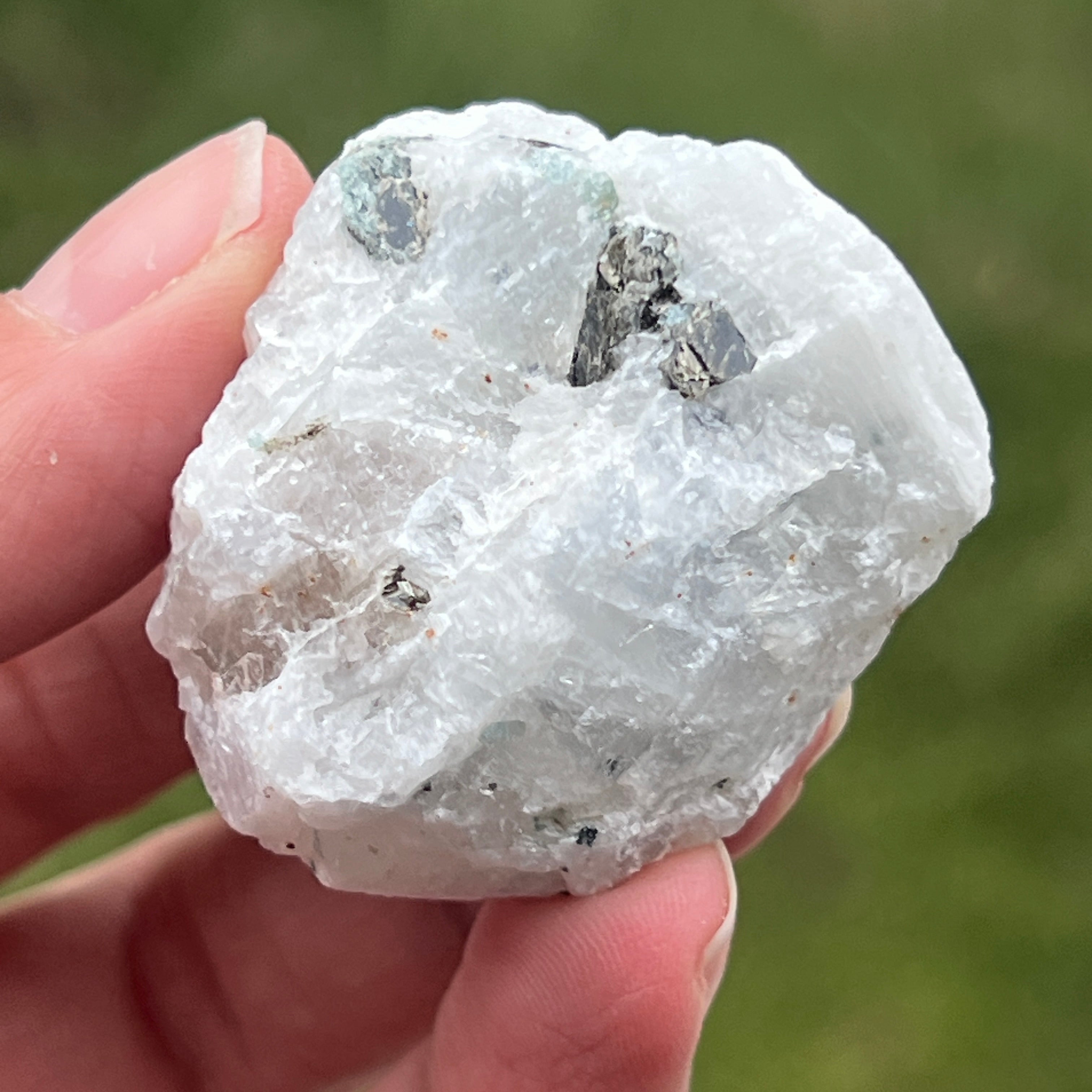 Moonstone with tourmaline inserts - raw stone m5