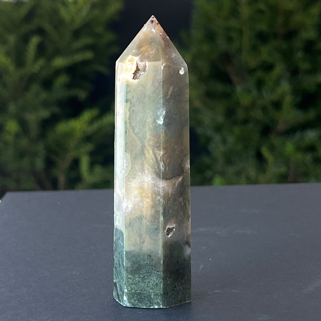 Moss/tree agate can be successfully integrated into home decoration, the energy emanating from it being one of stability.