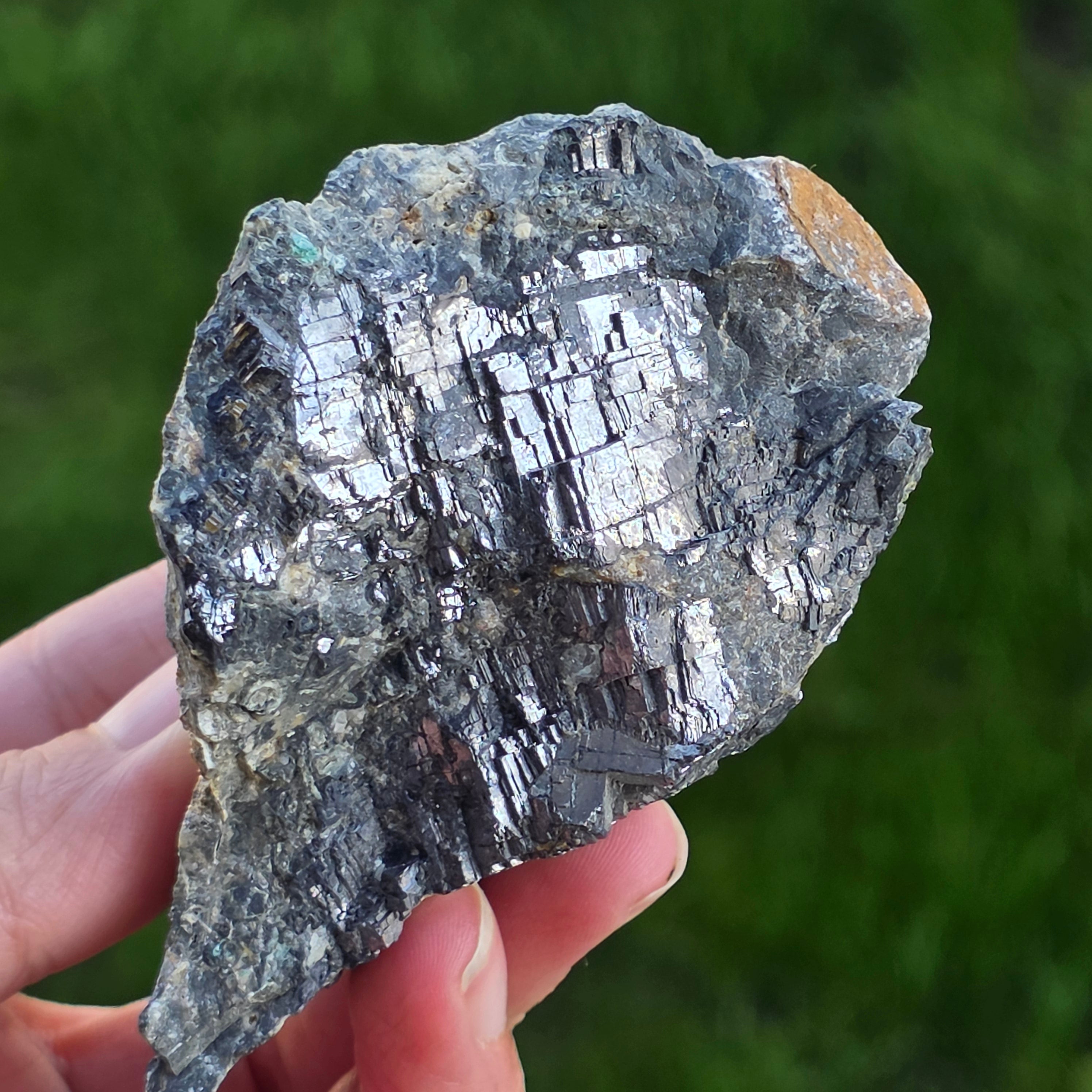 Silver galena is a spectacular mineral, recognized for its intense metallic luster and perfect cubic structure. This lead sulfide (PbS) is one of the densest naturally occurring minerals and can contain valuable traces of silver.