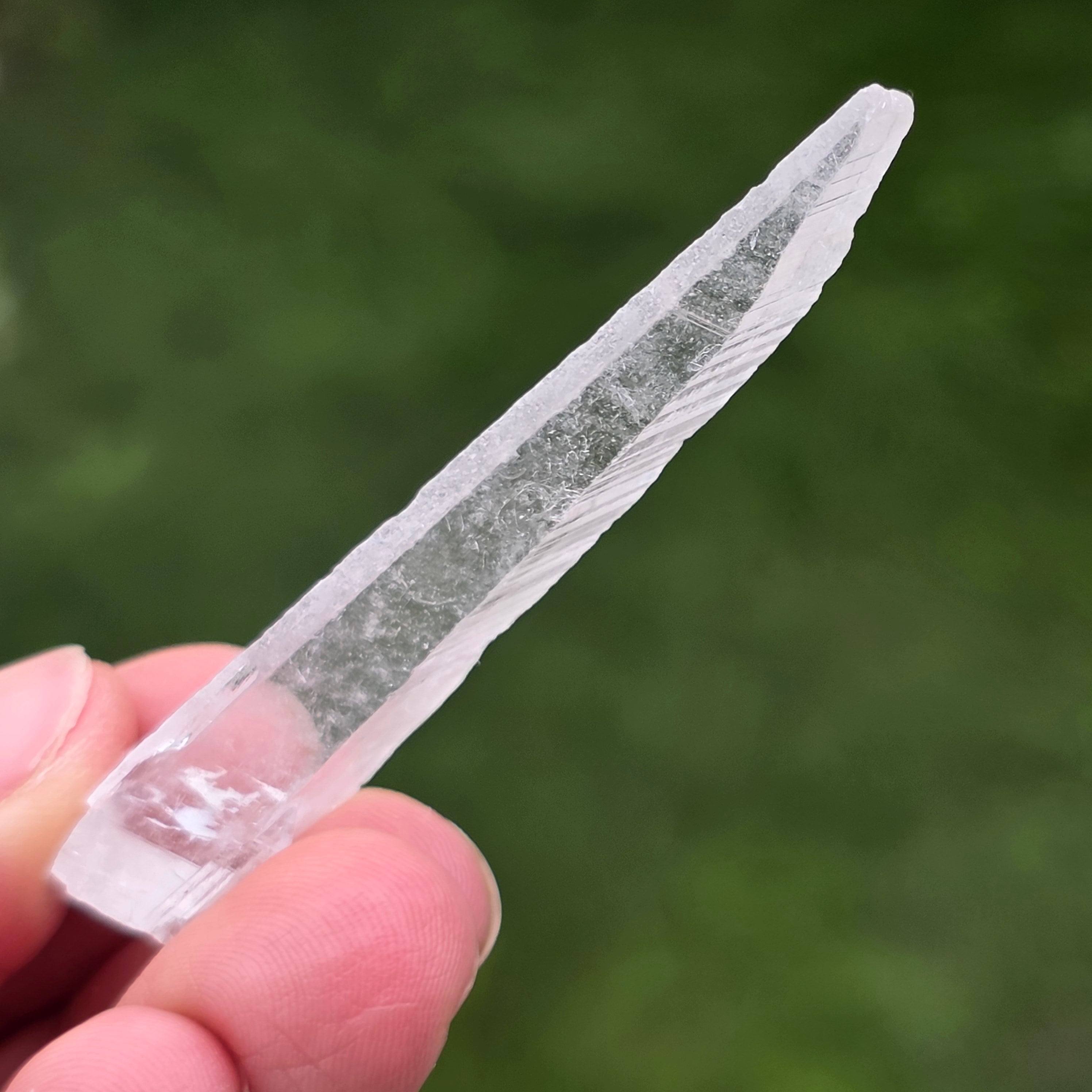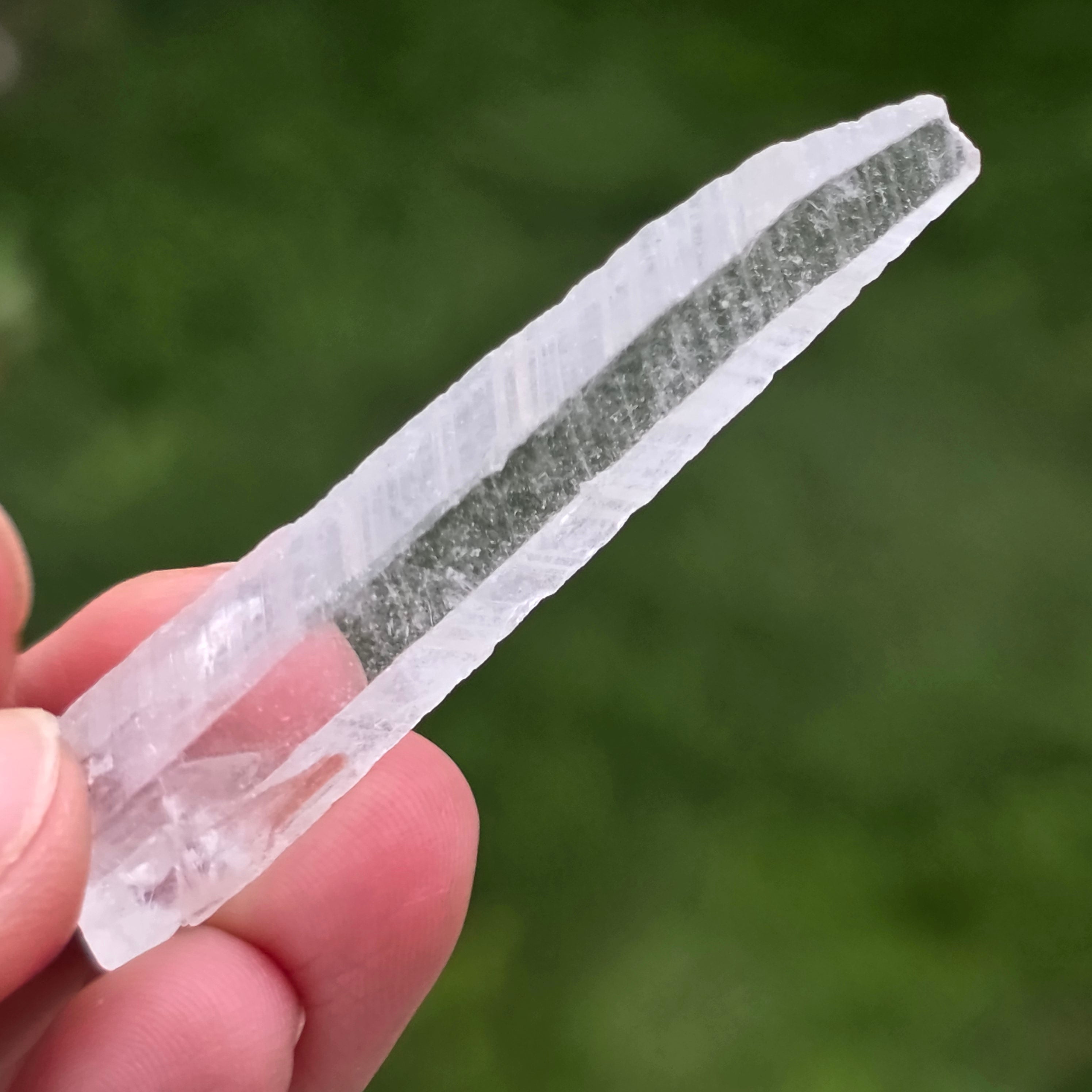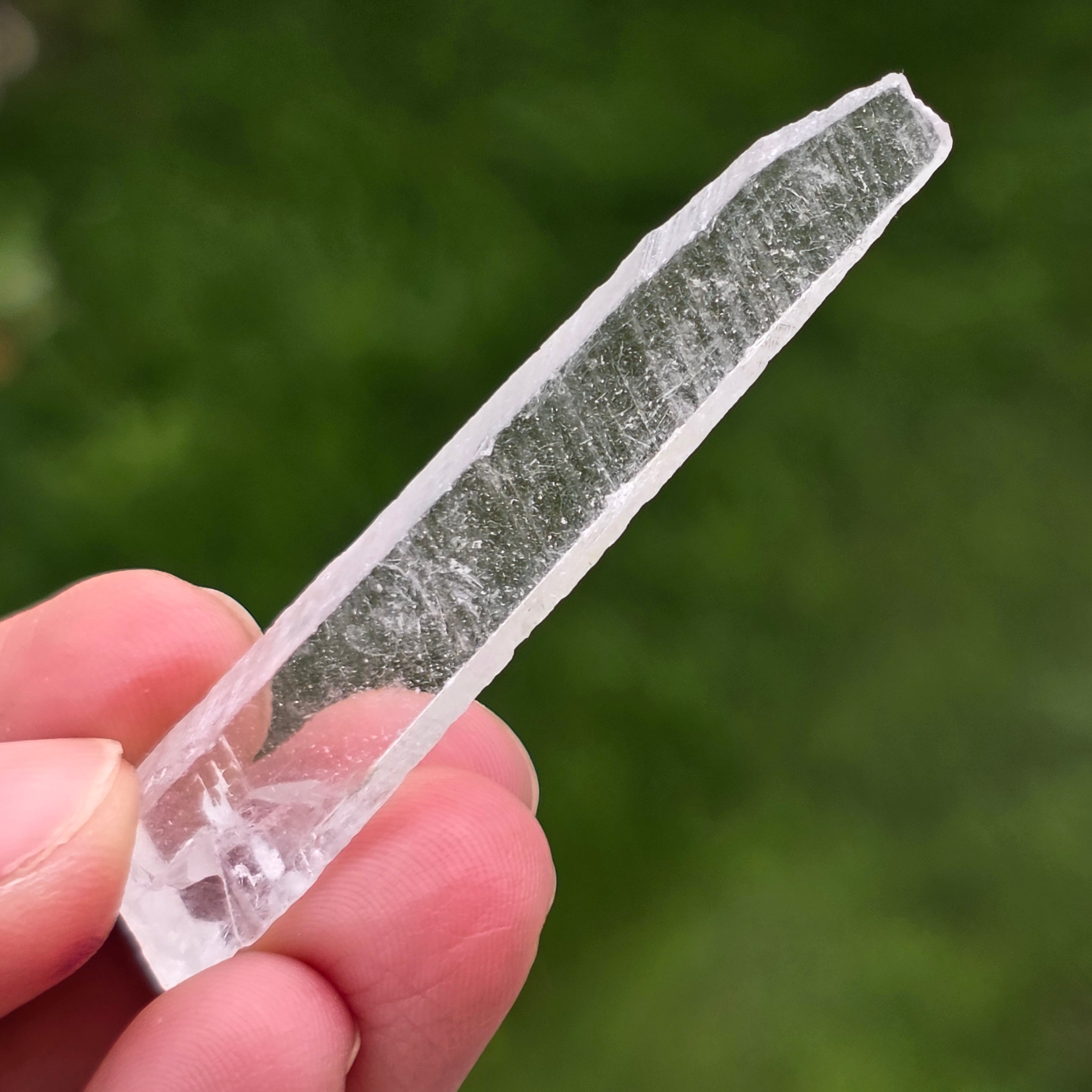Cristalele se prezintă sub formă prismatică, subțire, cu terminații clare, având o transparență ridicată și un luciu discret, aproape sticlos. Forma lor alungită și modul de creștere conferă fiecărui exemplar un caracter aerat, fragil vizual, dar bine definit mineralogic. Aspectul curat și uniform face ca aceste piese să fie extrem de apreciate în vitrinele de colecție.