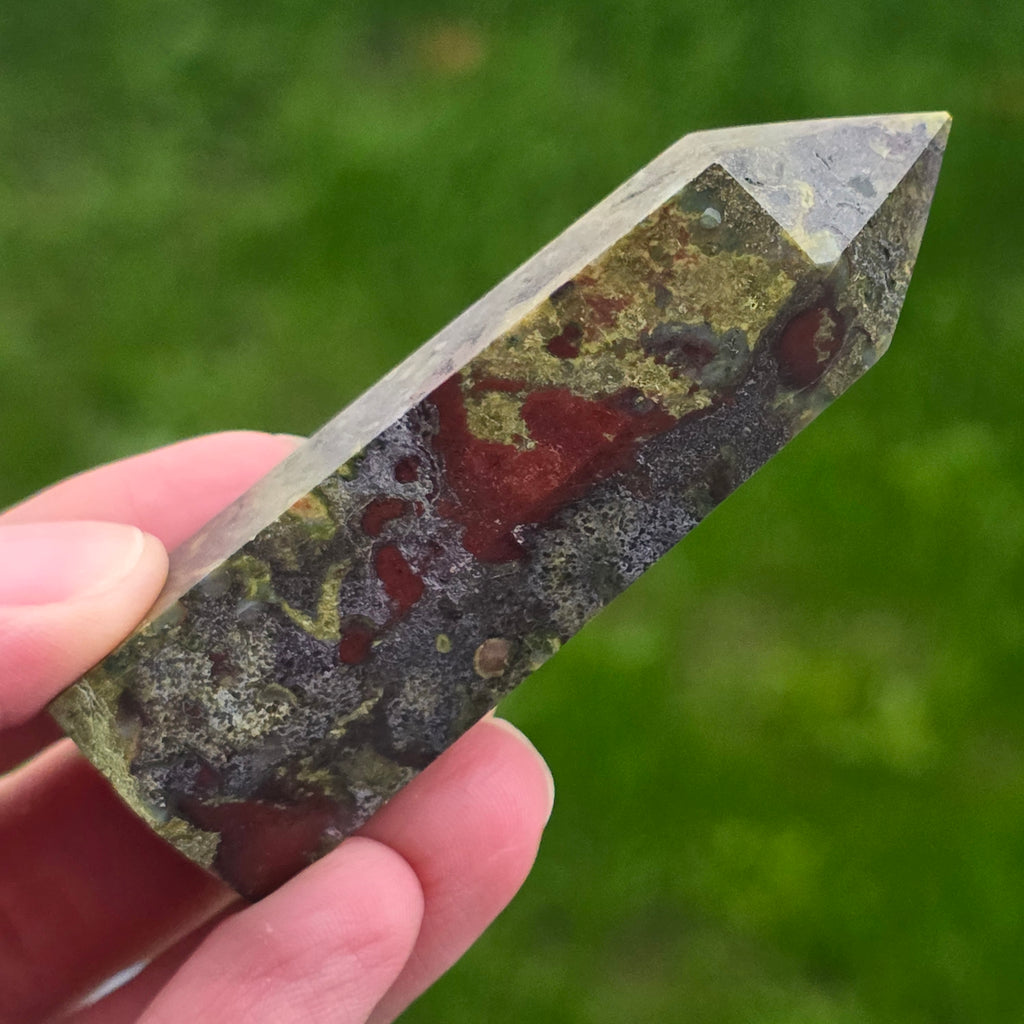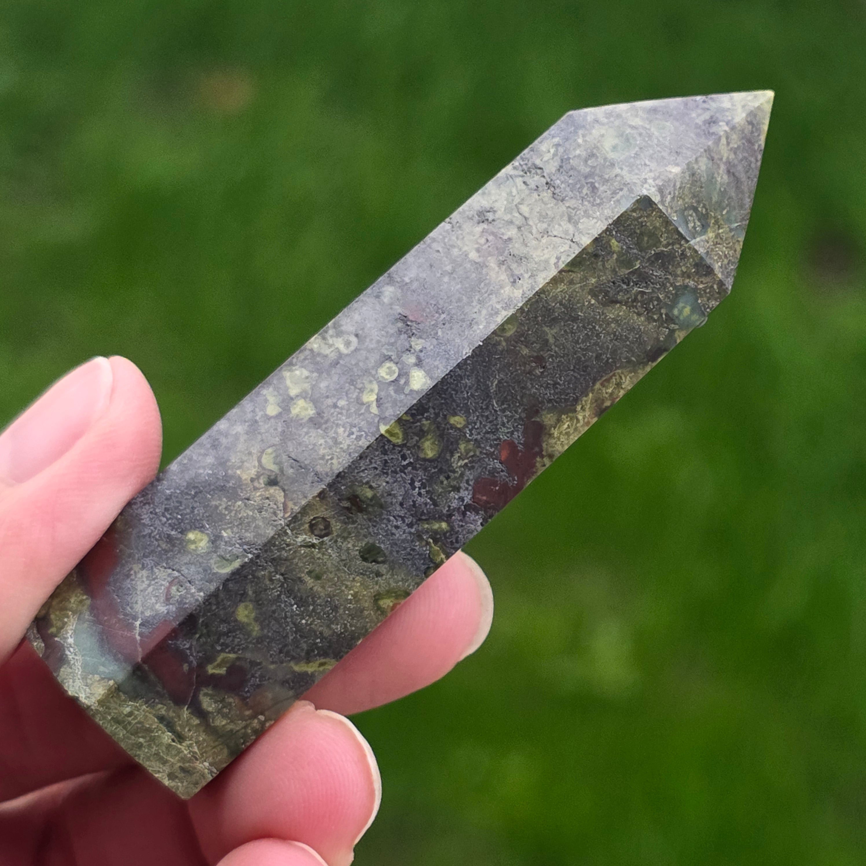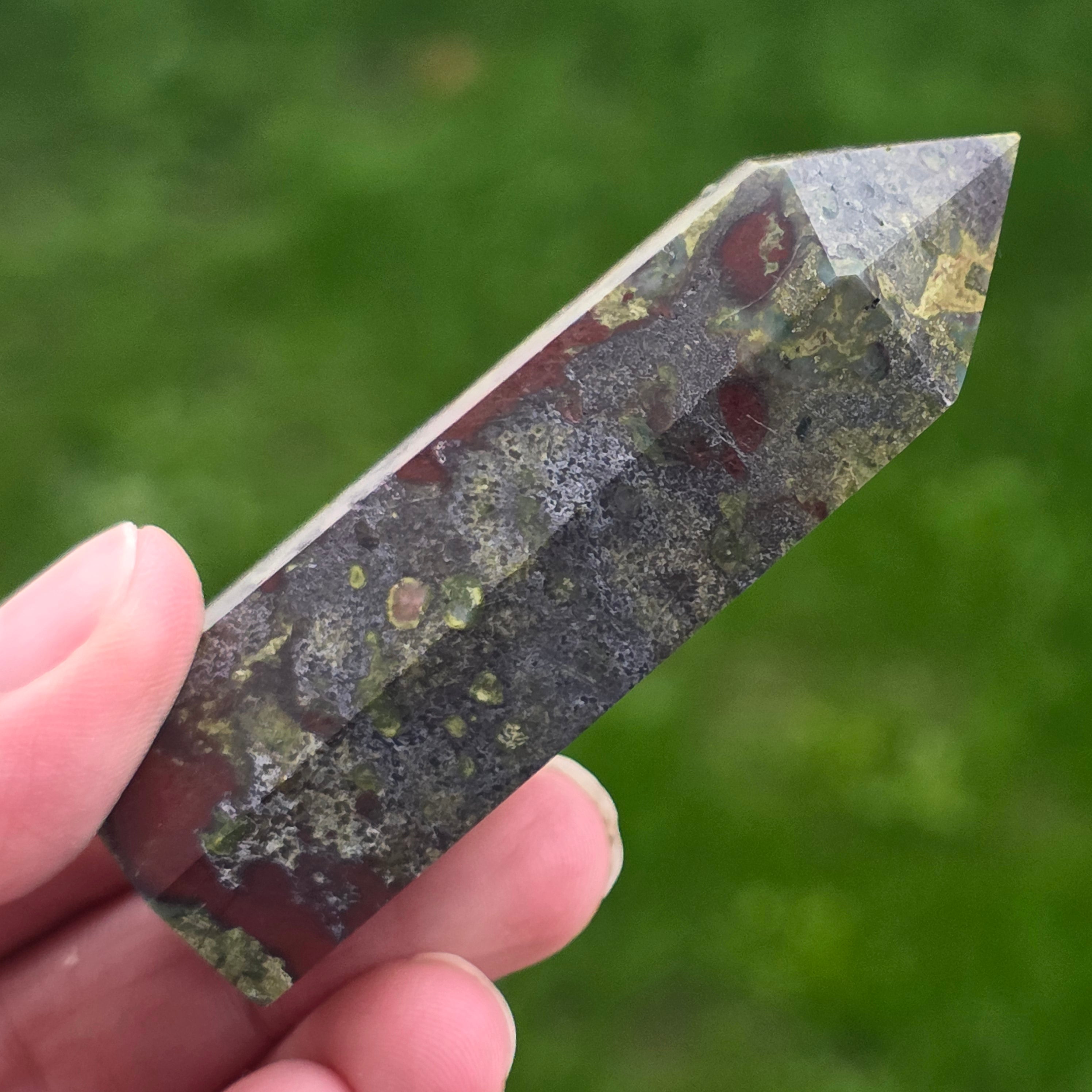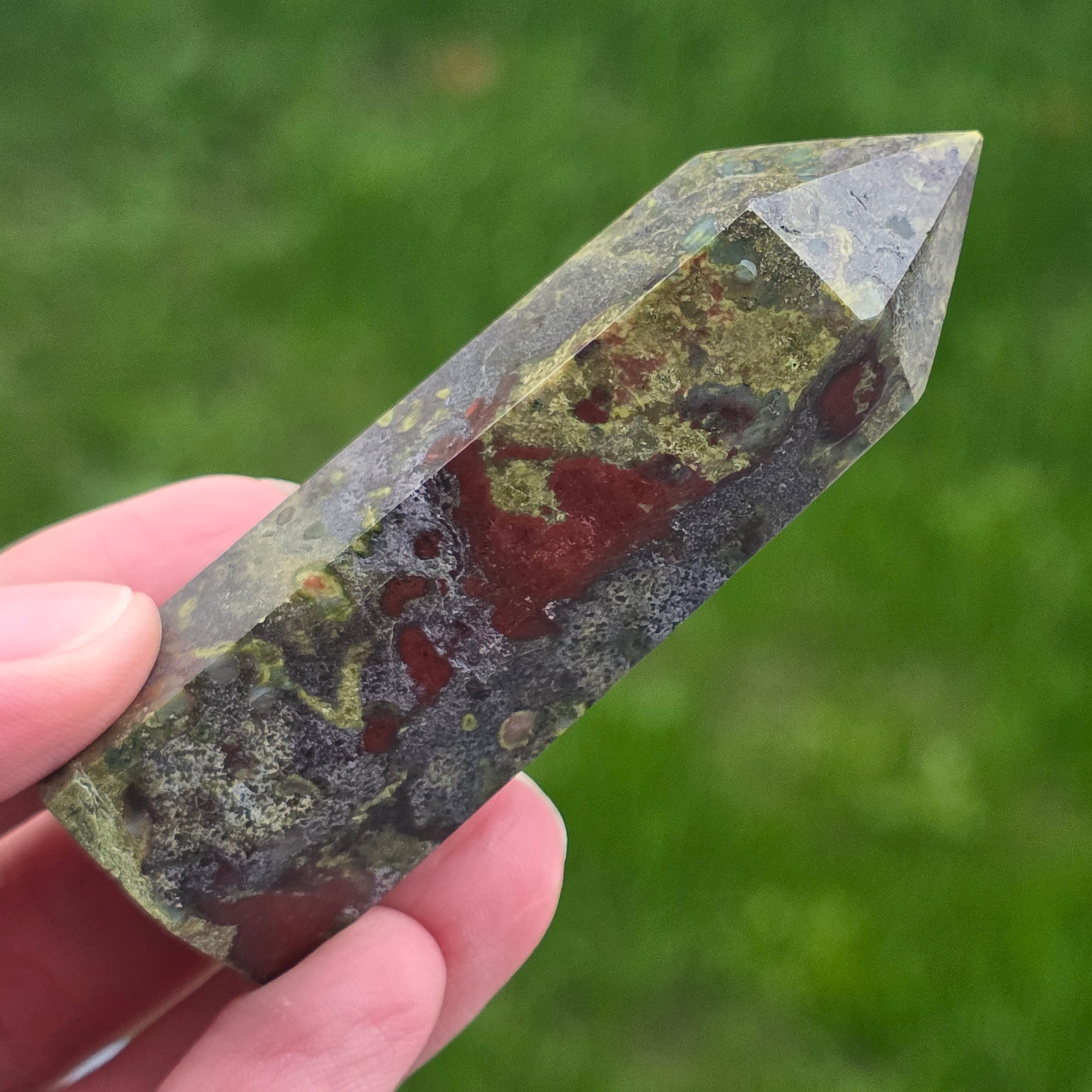 Obelisc mini piatra sangele dragonului (epidot&piedmontit) | Model 11